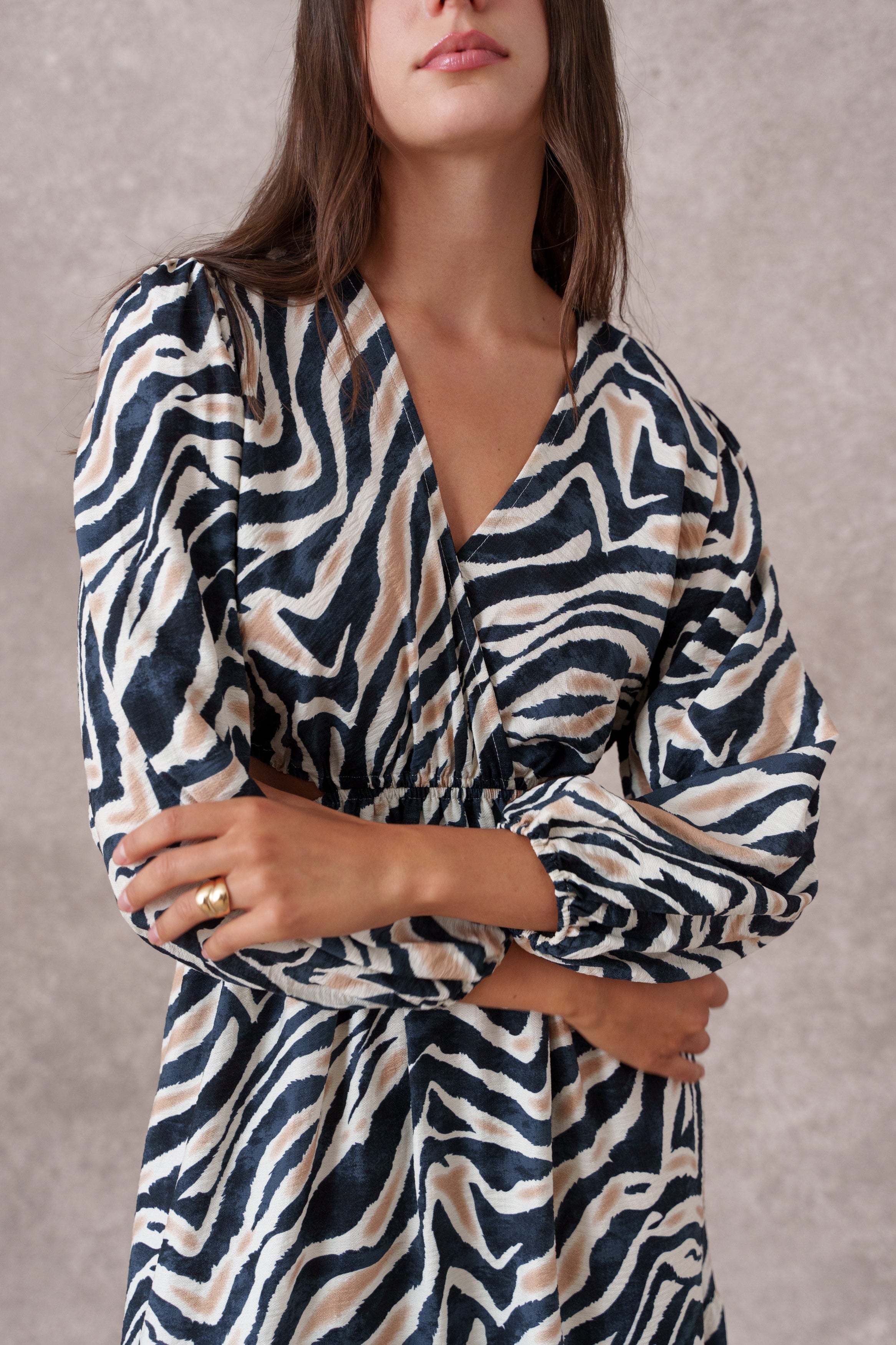 Ornée de motifs abstraits, la robe Cassie est une pièce parfaite pour cette sausin. Ce que l'on aime particulièrement, ce sont ses petites ouvertures glamour sur les côtés, qui lui donnent une allure encore plus séduisante et moderne. Parfaite à porté en journée, la robe Cassie incarne le style moderne classique. Idéale à porter avec des bottes hautes pour un look encore plus moderne.