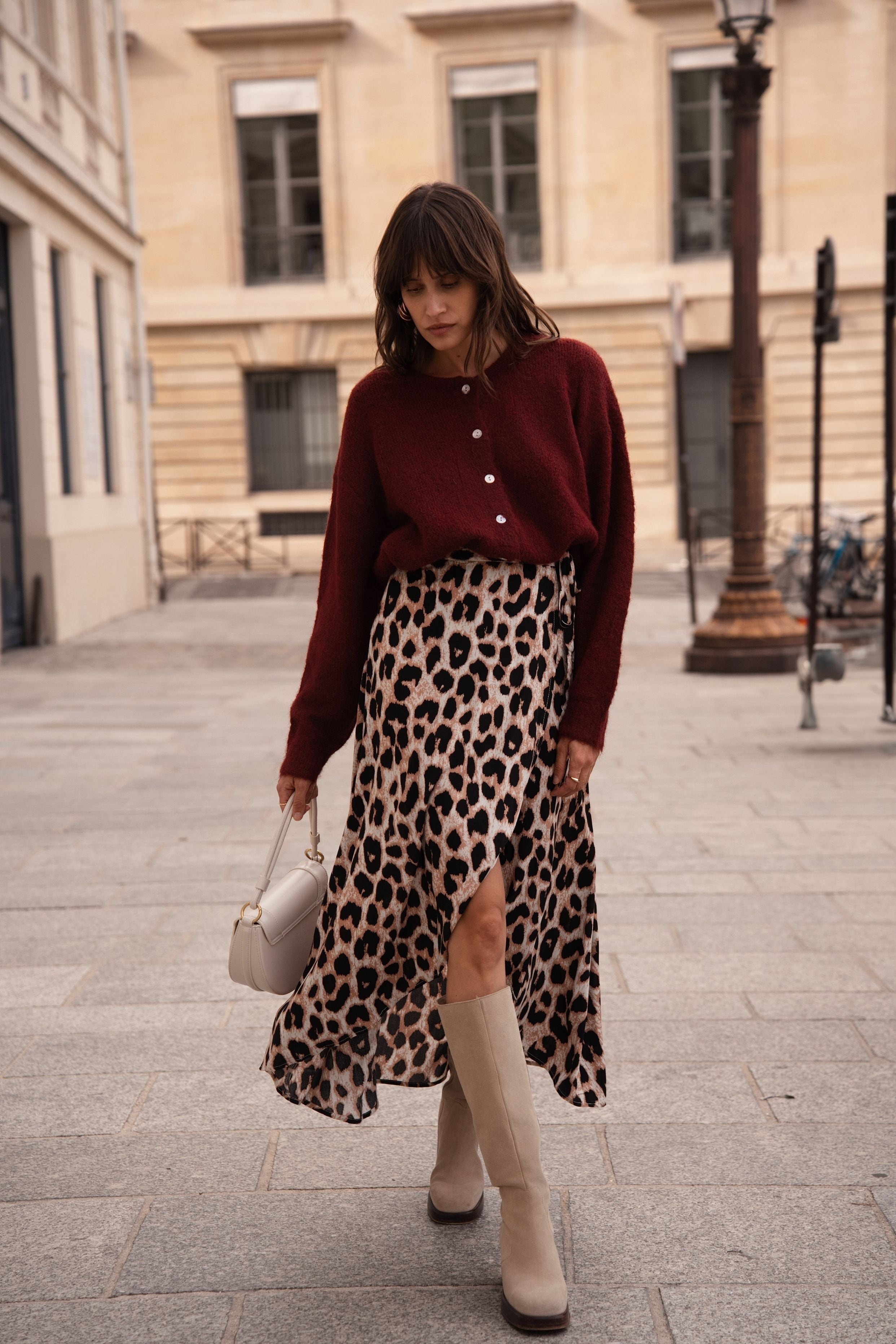 On la porte volontiers avec un pull moelleux et des bottes hautes pour un look automnal affirmé, ou avec un caraco et des sandales lors des journées plus douces.