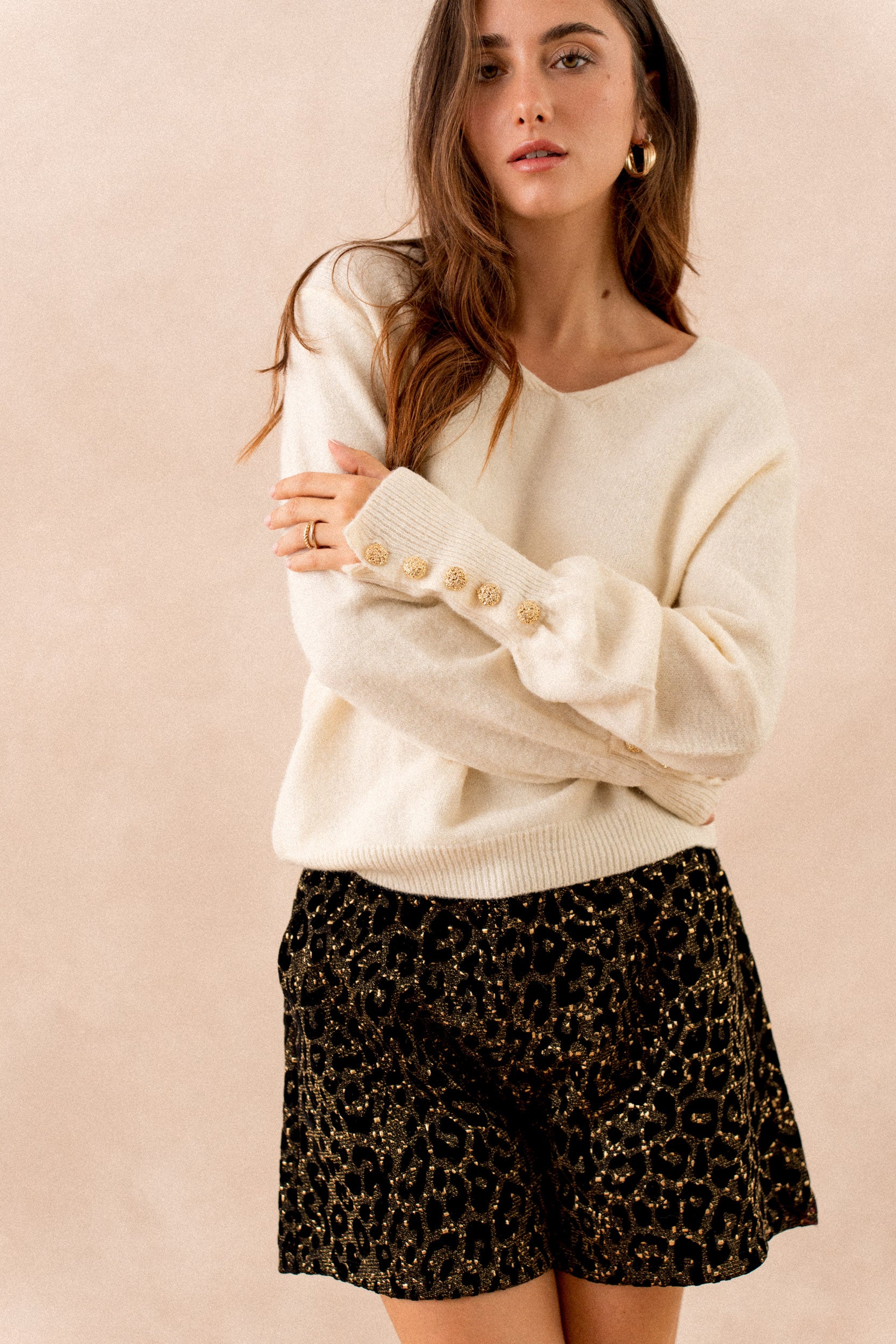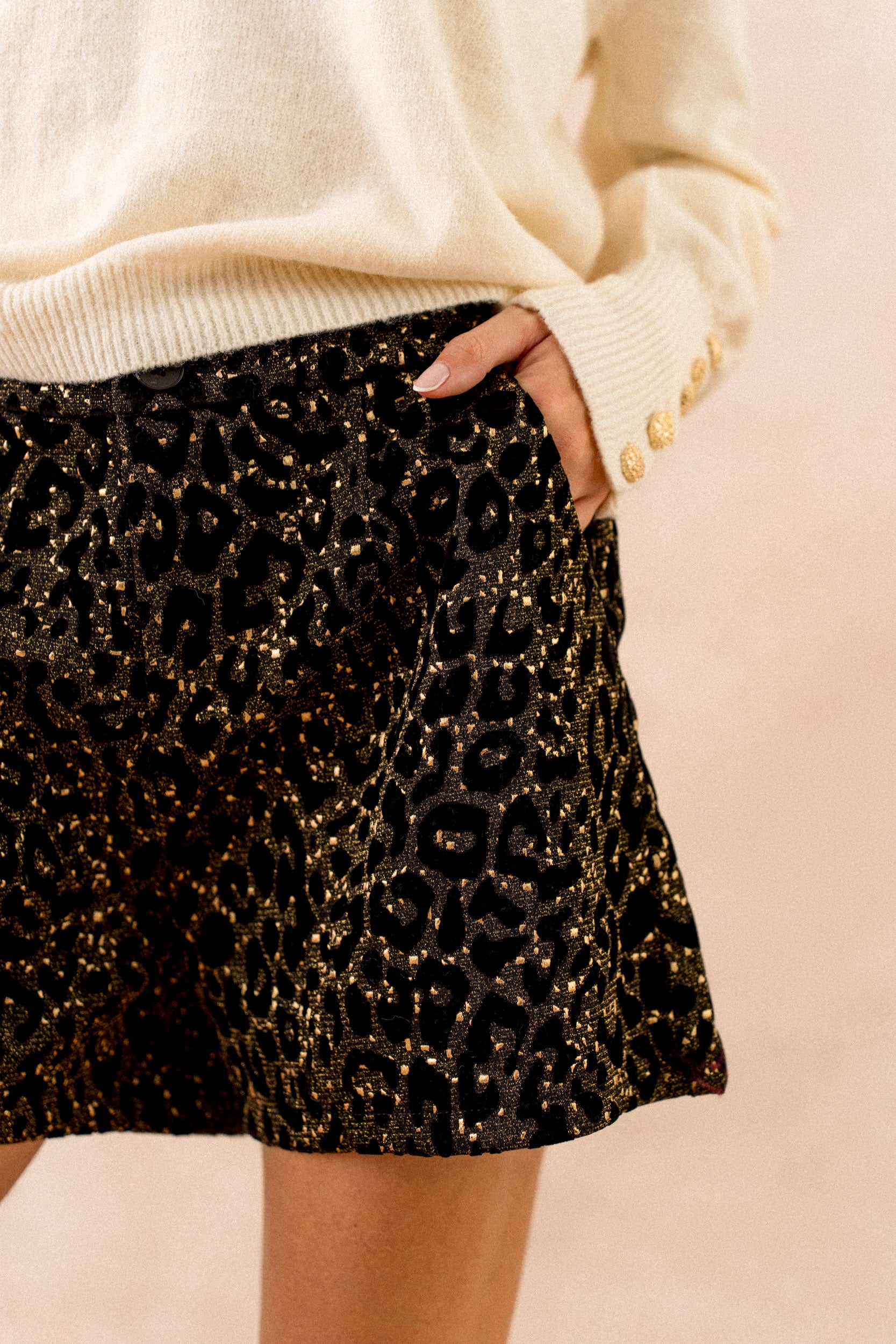 Le short Myriam est une pièce chic et raffinée, parfaite pour un style élégant en toute simplicité. Sa coupe droite assure une silhouette flatteuse, tandis que les petits détails dorés ajoutent une touche précieuse et sophistiquée. Ce modèle est idéal pour les jours de fête.