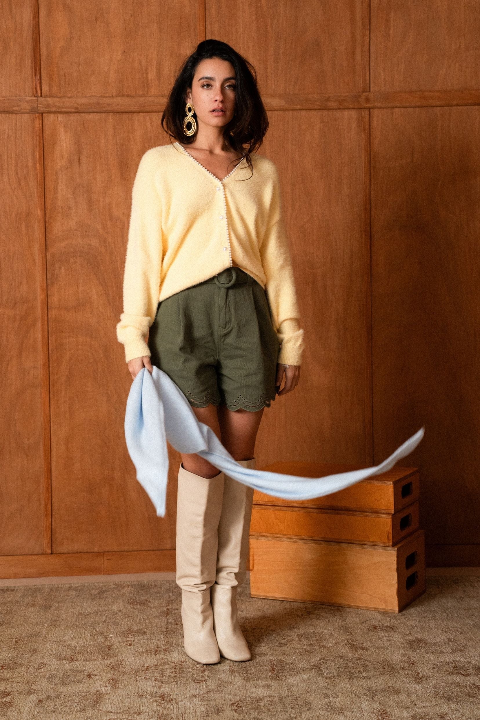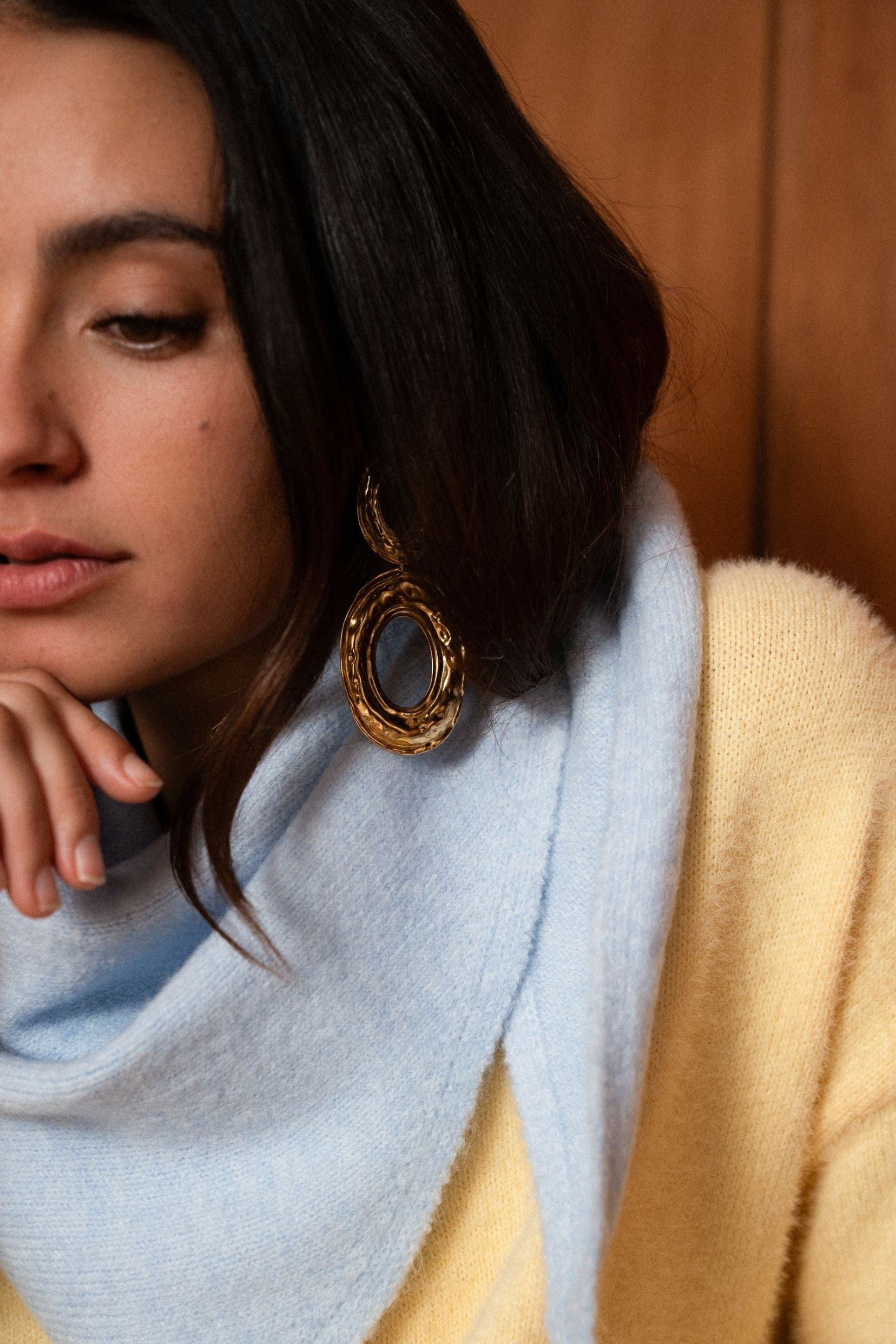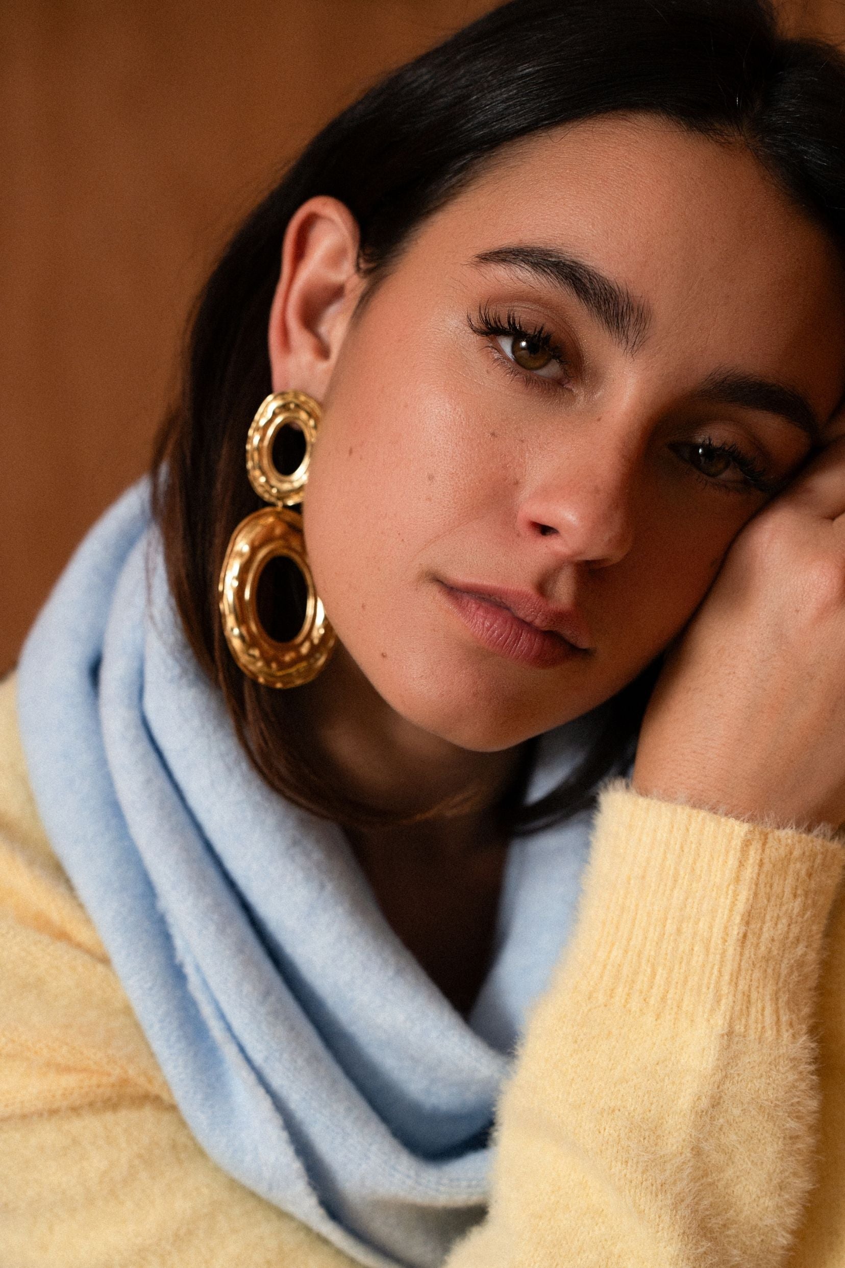 Sa maille légère se pose naturellement autour du cou et accompagne les mouvements sans jamais contraindre. Noué simplement ou porté plus lâche, Élio ciel apporte cette note lumineuse qui change tout, comme un souffle clair dans le vestiaire. Un essentiel discret, pensé pour les jours où l’on a envie de douceur.