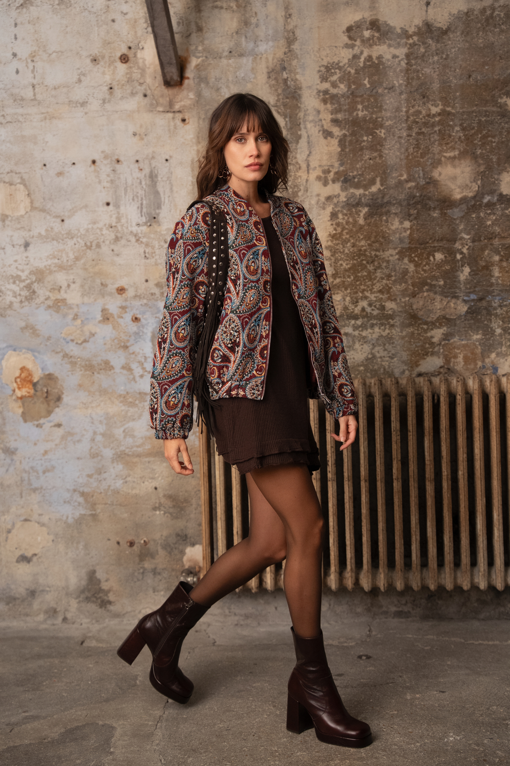 Ses motifs paisley aux accents bohèmes se mêlent à la profondeur du Café pour une allure à la fois vintage et pleine de caractère.