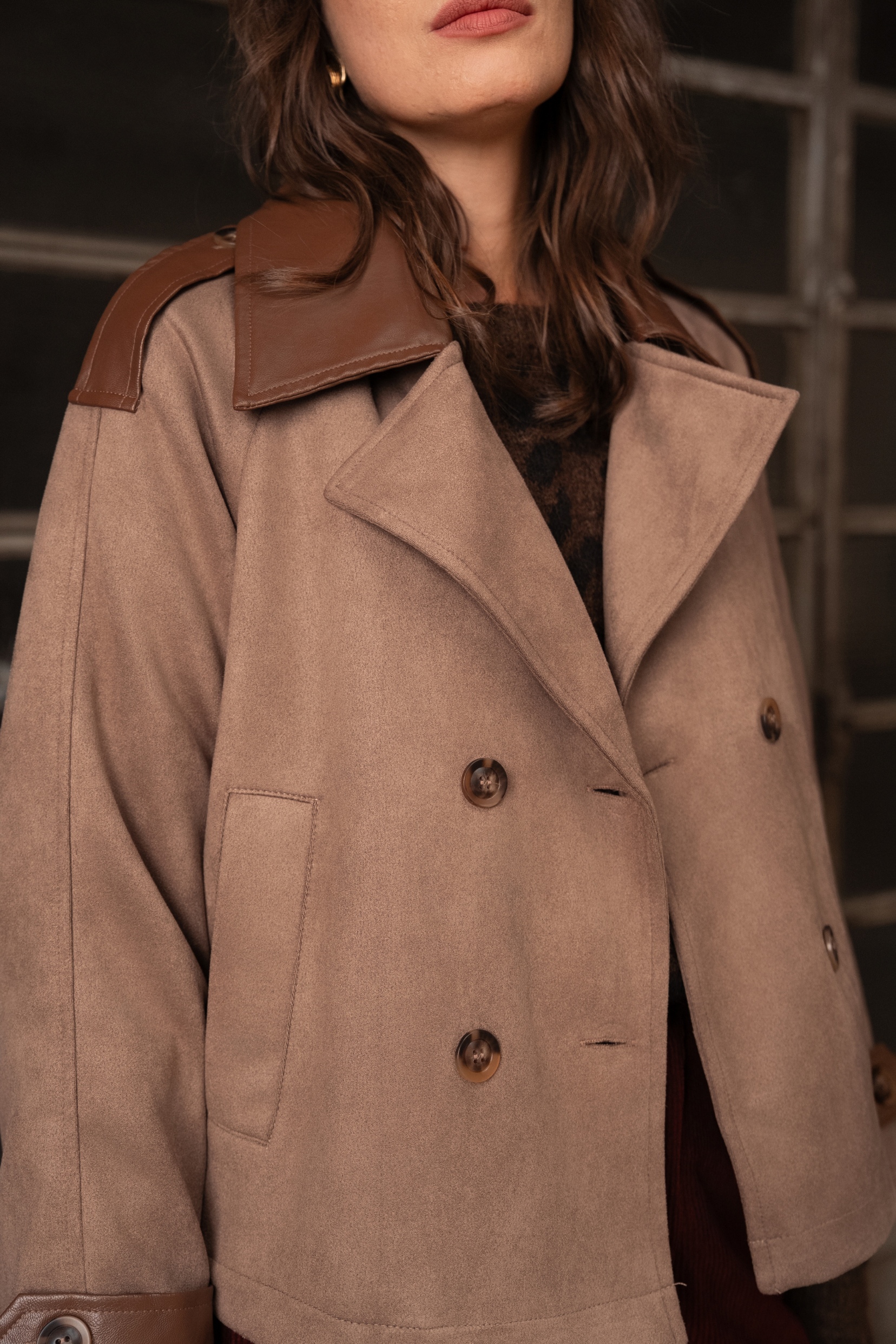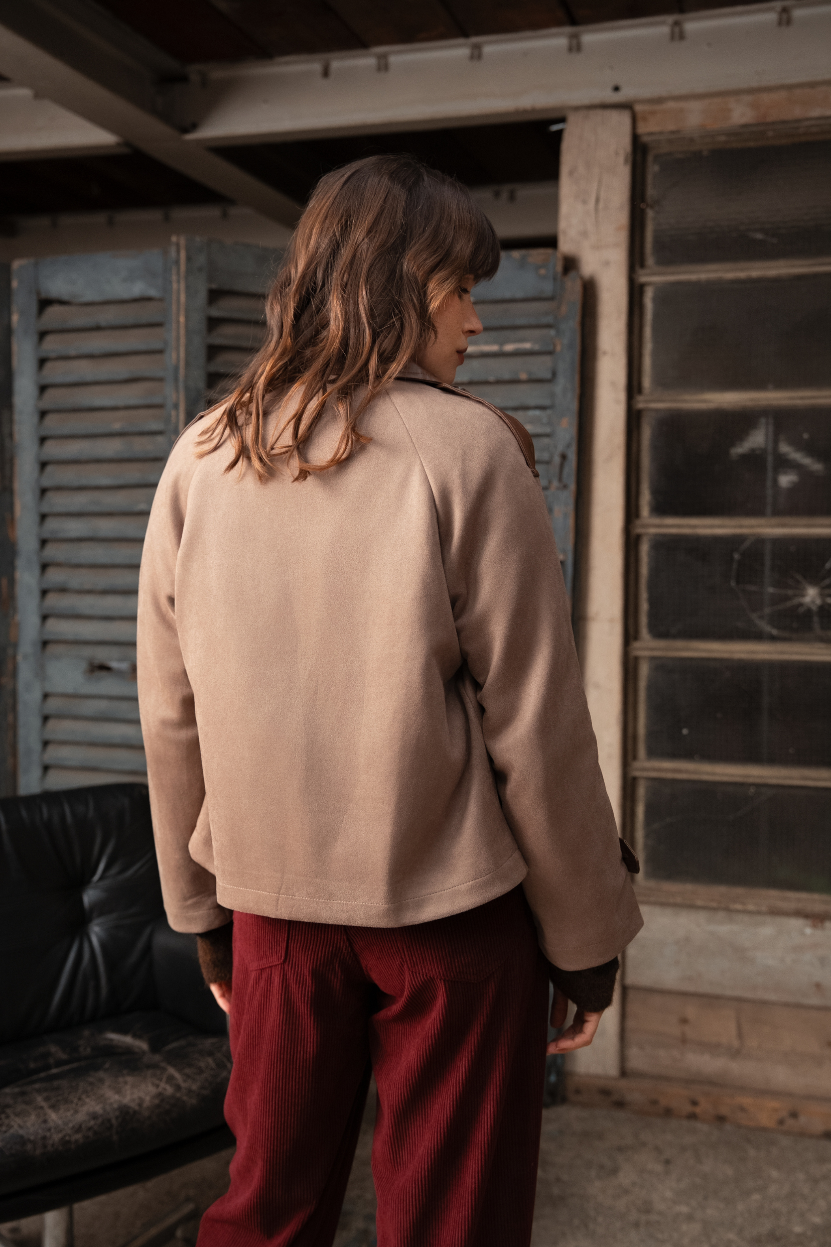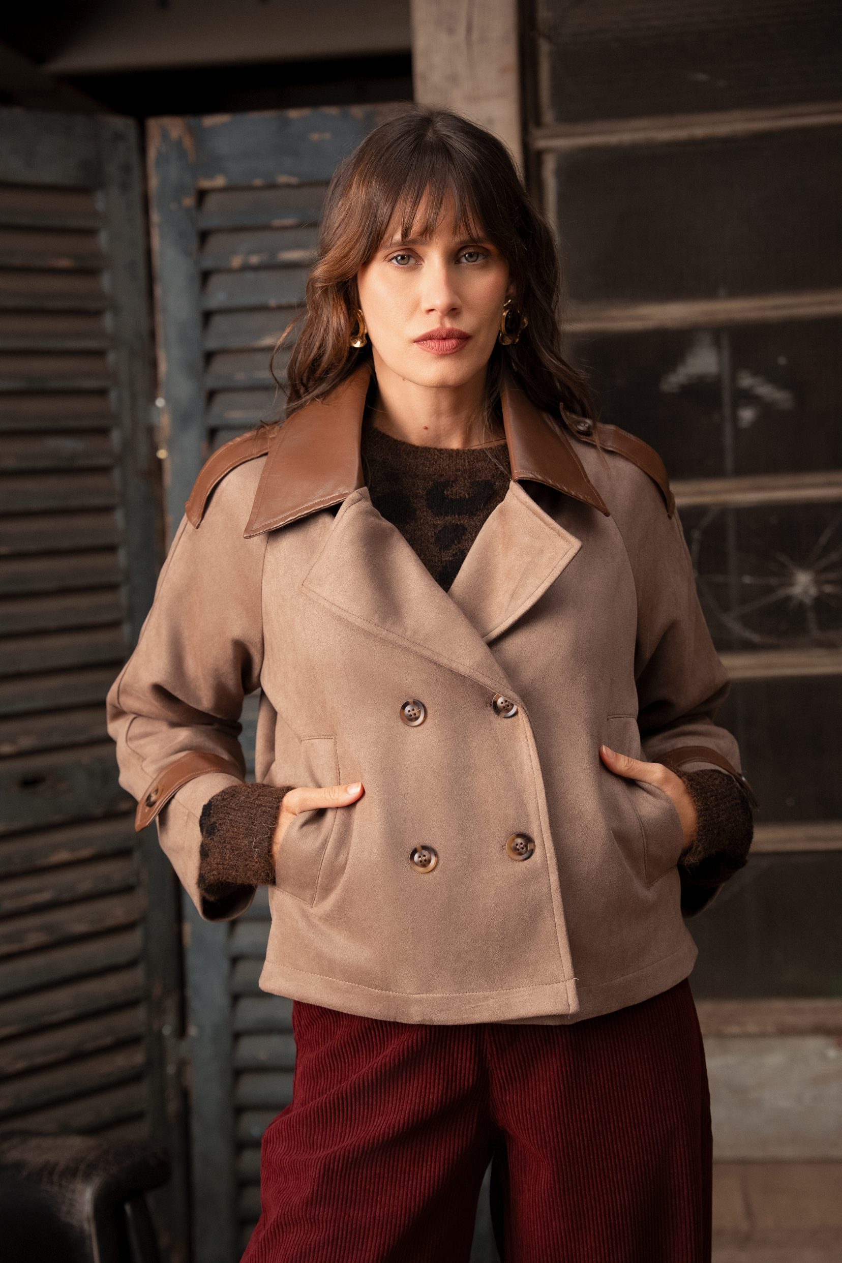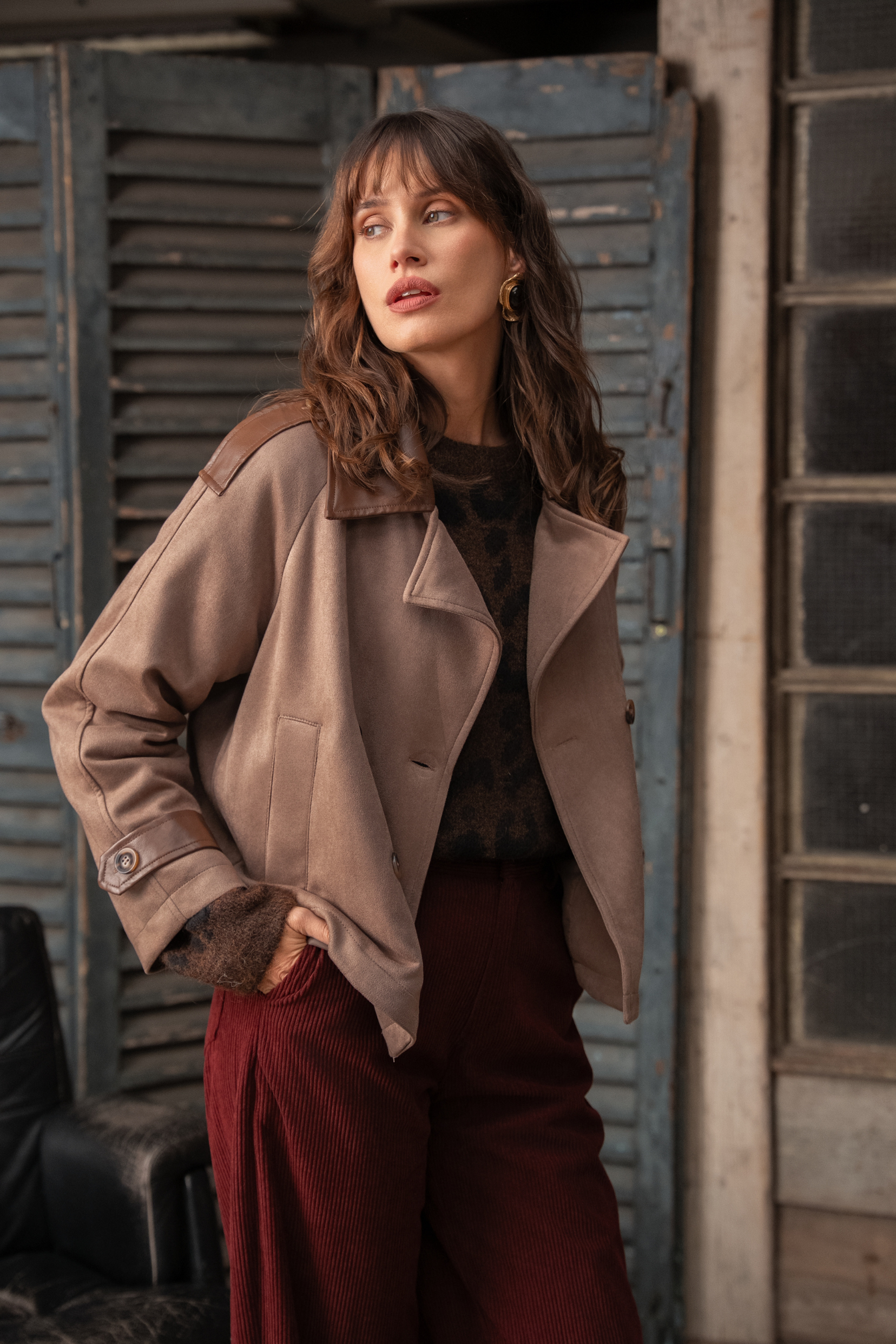 Sa matière douce au toucher suédé, relevée par de subtiles finitions effet cuir, lui donne une allure à la fois affirmée et féminine.