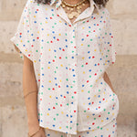 La chemise Talina charme par sa douceur et son esprit espiègle. Manches courtes, col classique et patte de boutonnage lui offrent une allure structurée, tandis que ses motifs cœur insufflent une note joyeuse et féminine. Légère et facile à porter, elle apporte une touche de fantaisie maîtrisée à vos tenues du quotidien. À associer avec un jean clair pour un look frais ou une jupe pour une silhouette plus romantique.