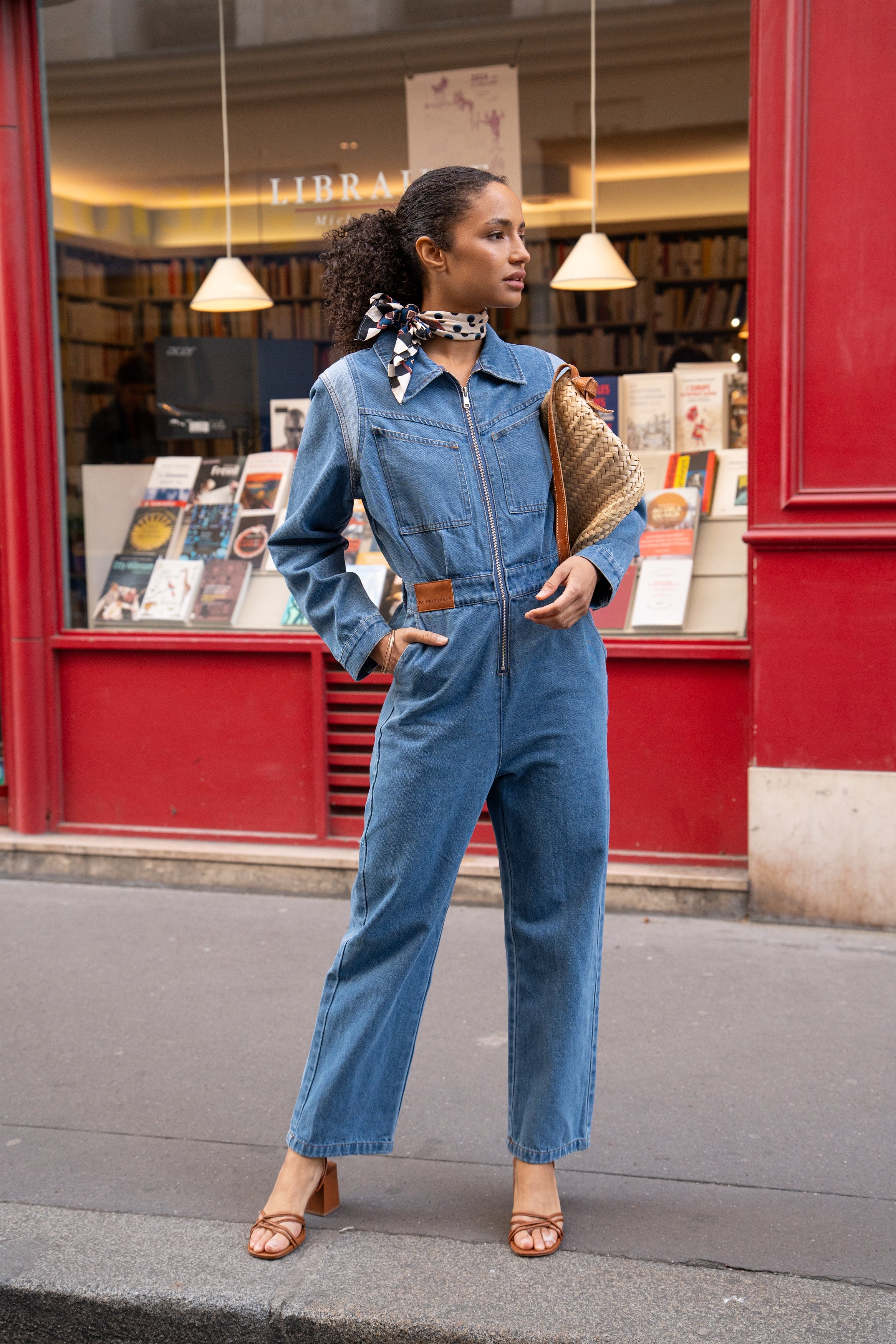 La combinaison Téa puise son inspiration dans le vestiaire utilitaire pour en révéler toute la modernité.Confectionnée en denim, elle dessine une silhouette structurée grâce à sa fermeture zippée et son col à revers. Ses manches longues et ses poches sur les côtés renforcent son allure fonctionnelle, tandis que sa coupe ajustée équilibre confort et féminité. Une pièce tout-terrain, à porter avec des talons pour un look affirmé ou des baskets pour une allure plus décontractée.