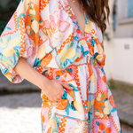 La Combishort Sophia, une pièce lumineuse et joyeuse. Son imprimé fruité mêlant citrons, pêches et oranges évoque les journées ensoleillées et les escapades sous le ciel bleu. Confectionnée dans un tissu doux en coton majoritaire, elle allie confort et style avec brio.