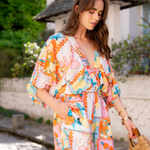 Avec son col en V délicat, ses manches 3/4 bouffantes et son short fluide, Sophia est la combinaison parfaite pour un look pétillant et féminin.