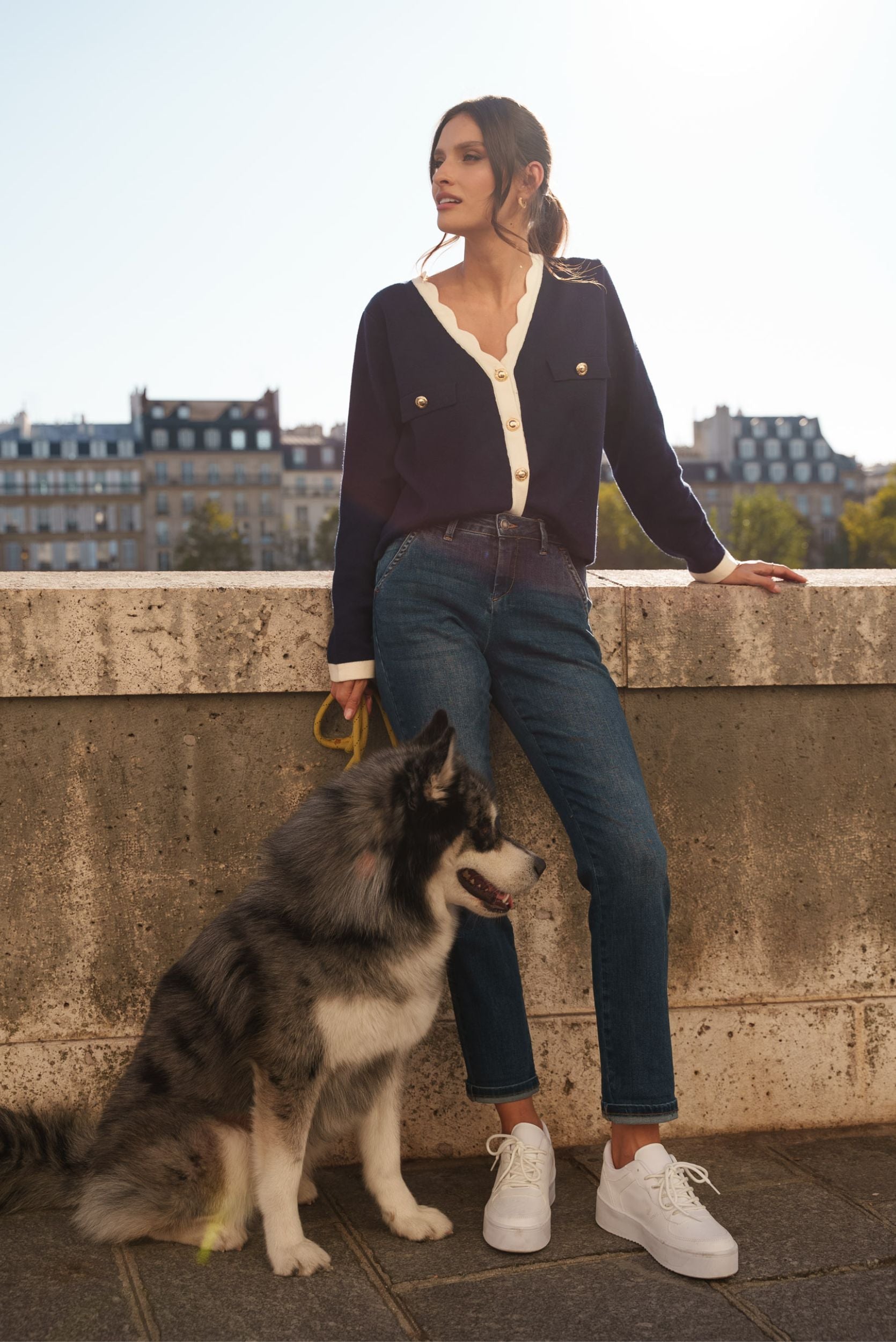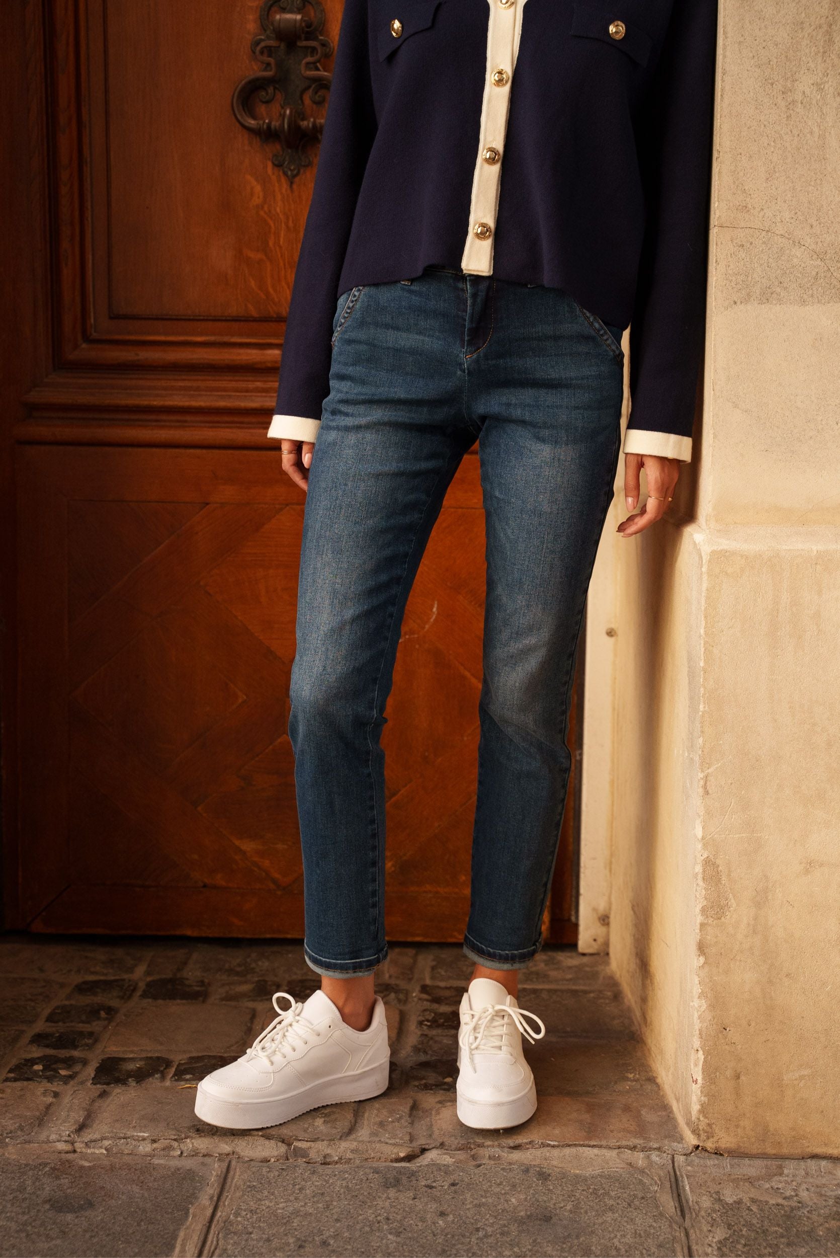 Un t-shirt blanc, un pull ou encore un gilet associé à une paire de sneakers avec notre jean Paméla, forment le combo parfait pour une tenue tendance et décontractée ! C'est un ensemble idéal pour une tenue tendance et décontractée.