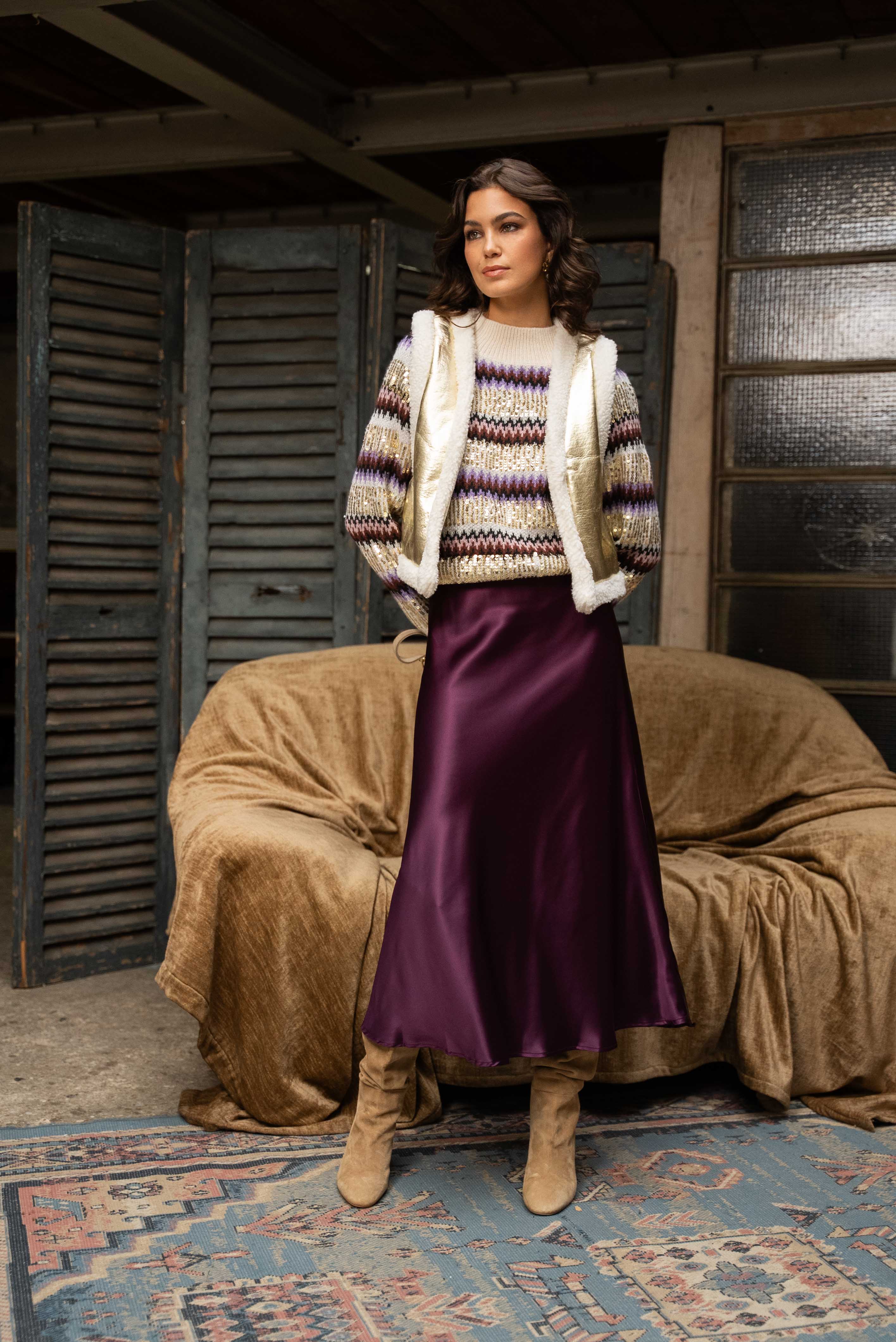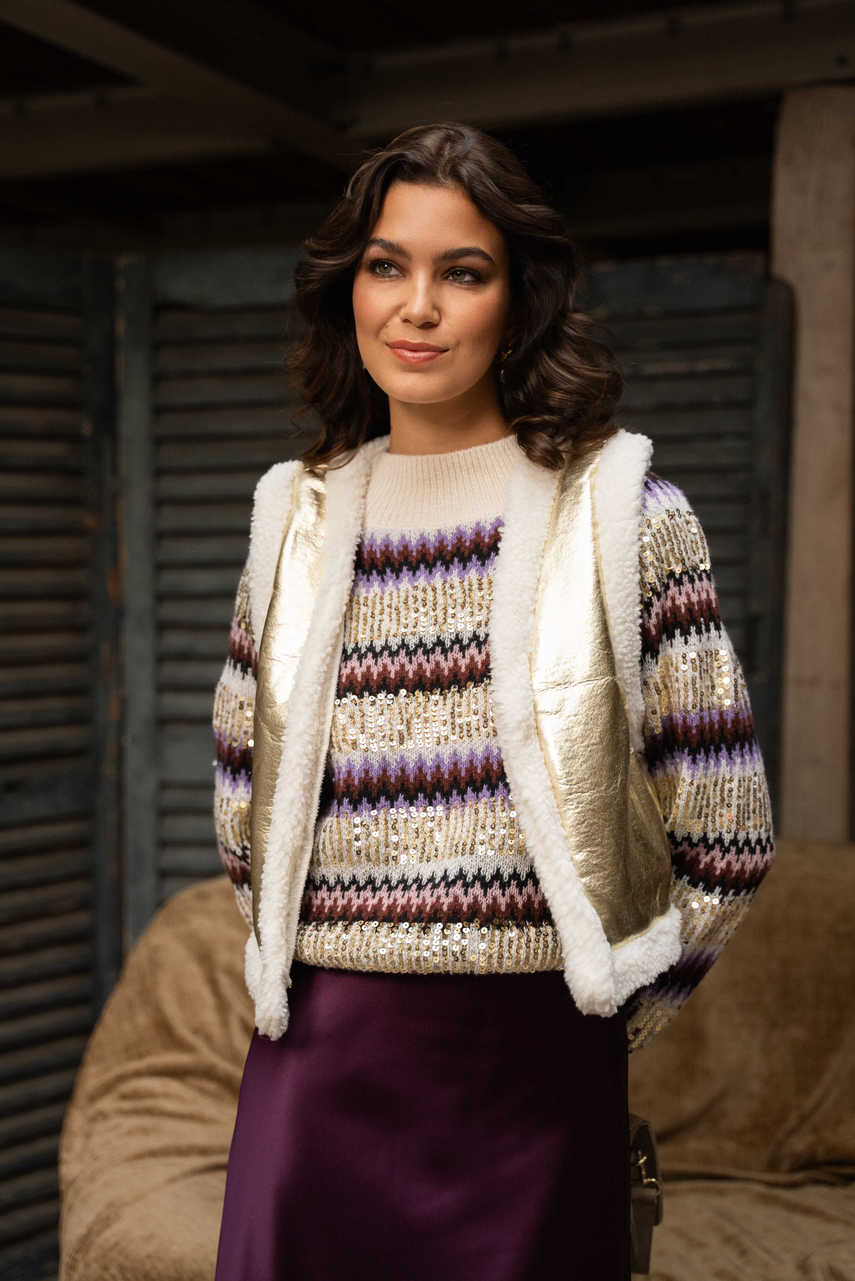 Le manteau Nelly, court et sans manches, procure une douceur inégalée à l'intérieur. Disponible en doré et argenté, il incarne la modernité. Sa coupe courte ajoute une touche contemporaine, tandis que l'intérieur doux assure une sensation de confort.