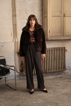 Sa coupe droite et fluide allonge la silhouette, tandis que sa taille haute souligne la ligne avec justesse. Dans sa teinte gris foncé, il devient une pièce intemporelle, à mixer aussi bien avec une maille moelleuse qu’une chemise blanche.