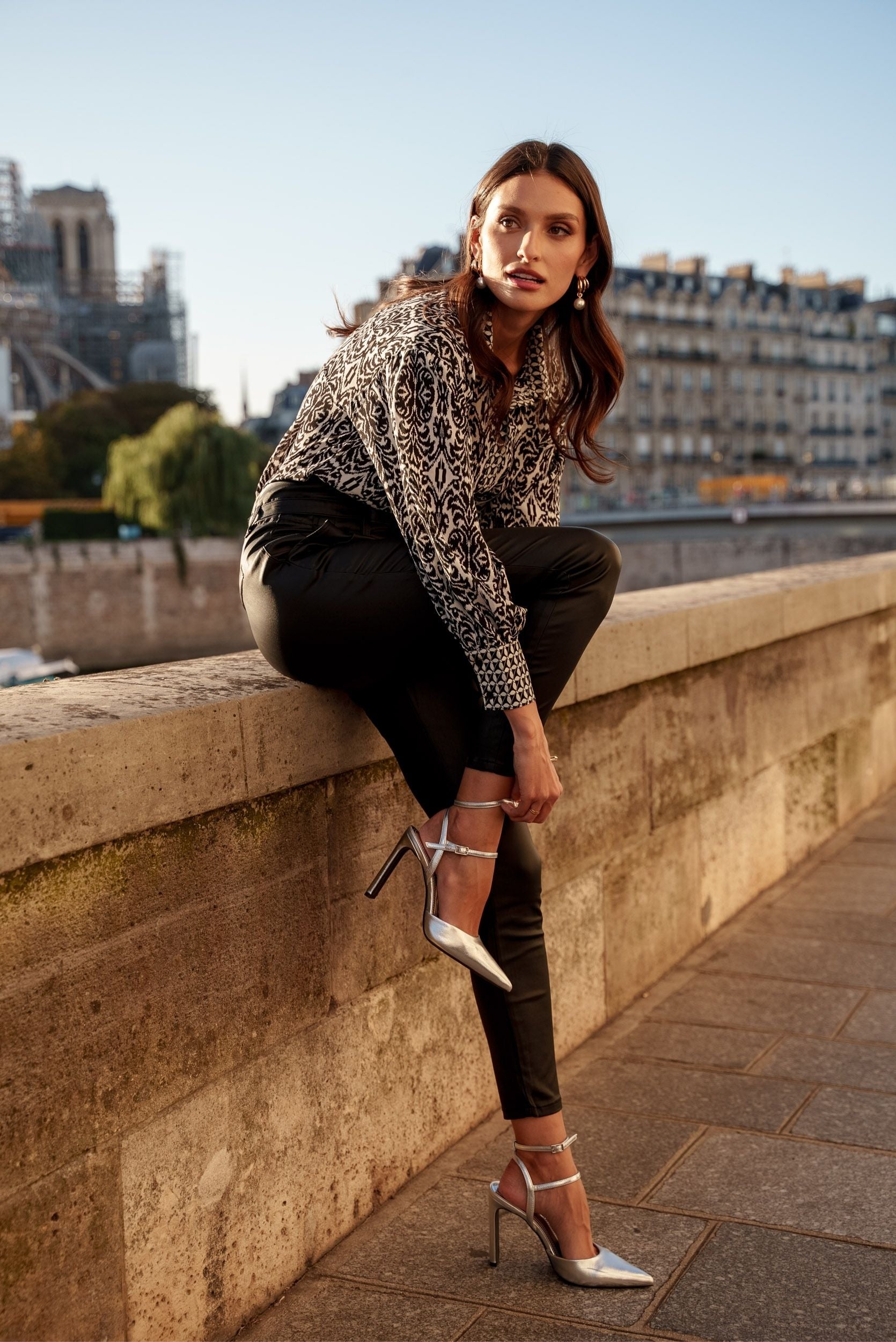 Le pantalon Vickie est un véritable coup de cœur, sa coupe slim et sa couleur noire en font un choix parfait, surtout pour celles qui recherchent un style moderne et tendance, tout en restant intemporel.