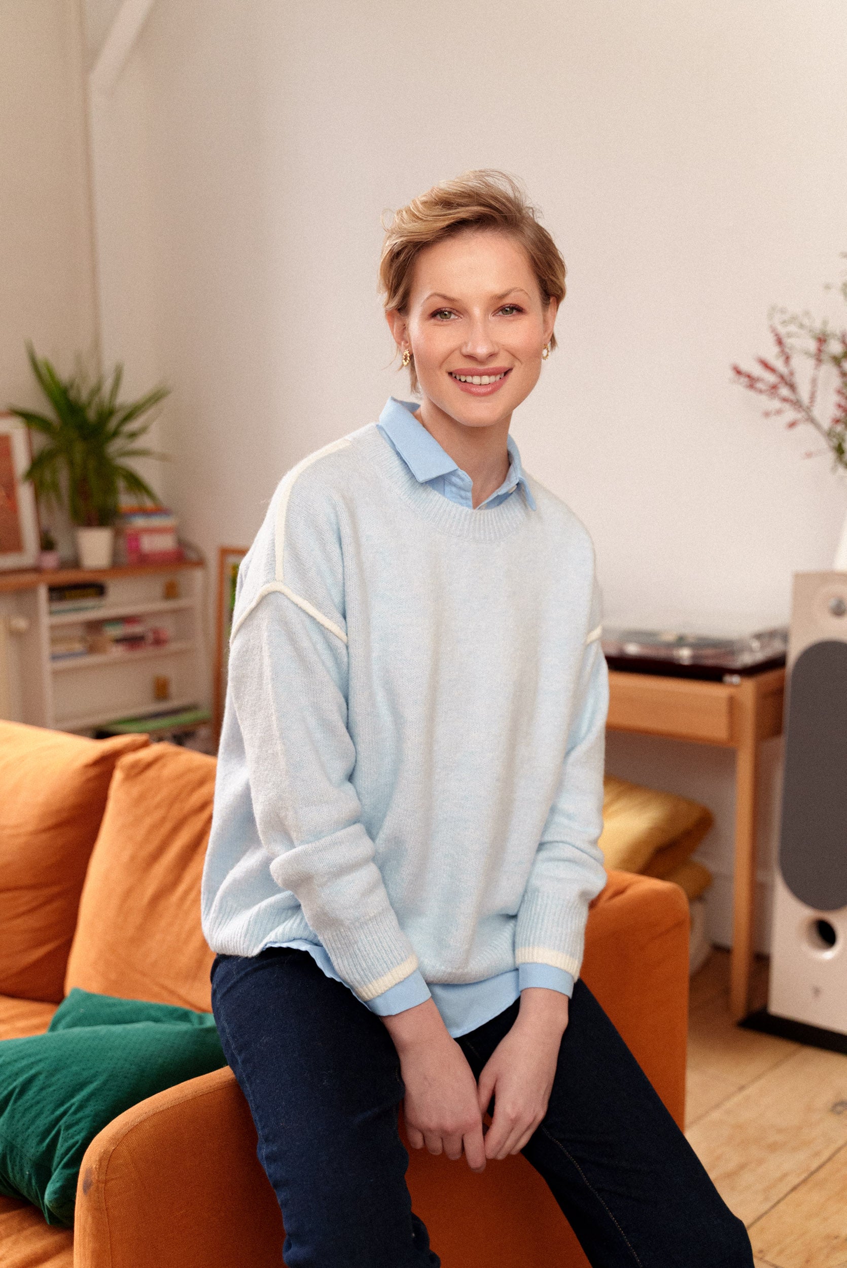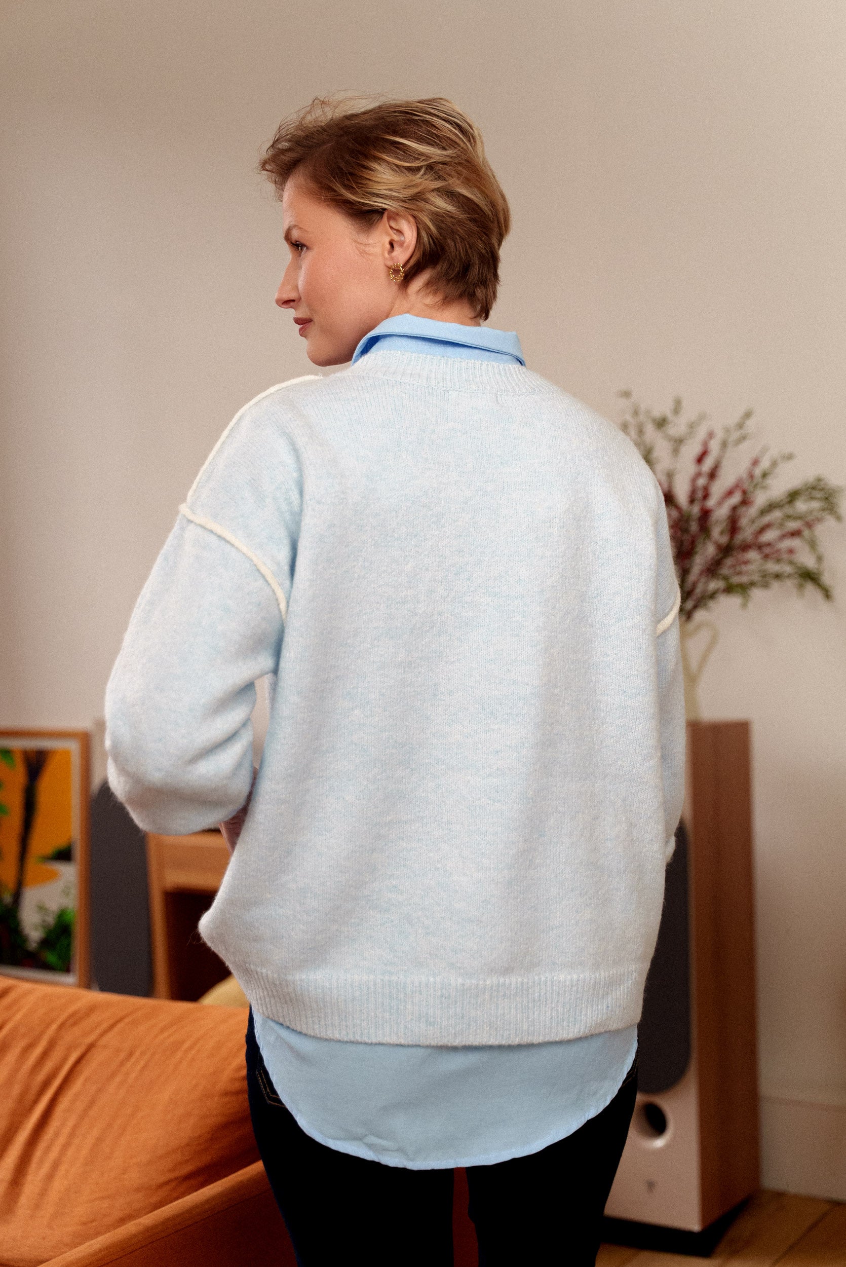 Adoptez une touche de légèreté avec notre pull bleu ciel Anélia. Sa teinte douce et apaisante en fait un choix simple et rafraîchissant. Confortable et facile à assortir, ce pull deviendra rapidement votre allié pour des looks décontractés et charmants. Parfait pour ajouter une note de douceur à votre garde-robe, ce pull bleu ciel incarne la simplicité et l'élégance.