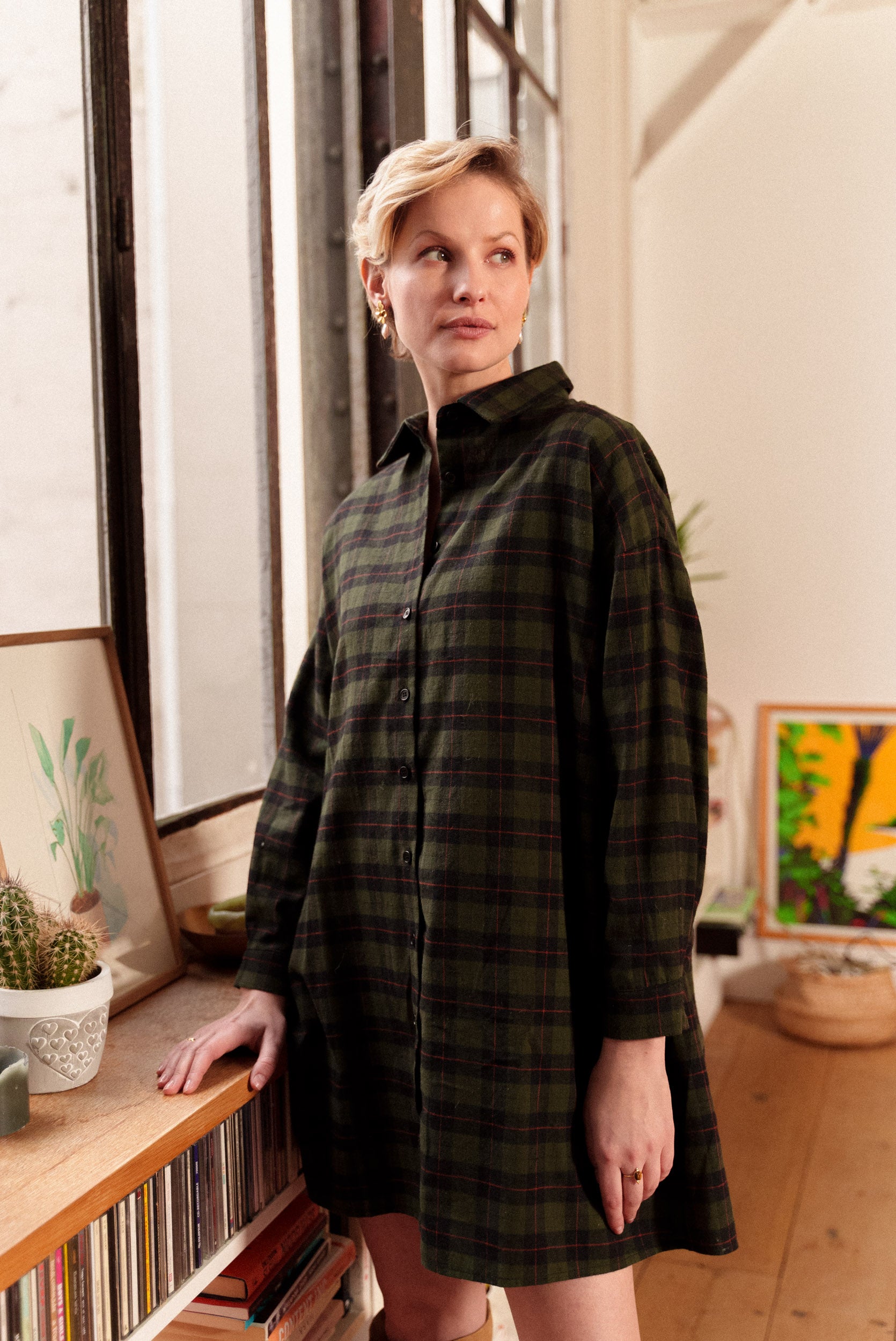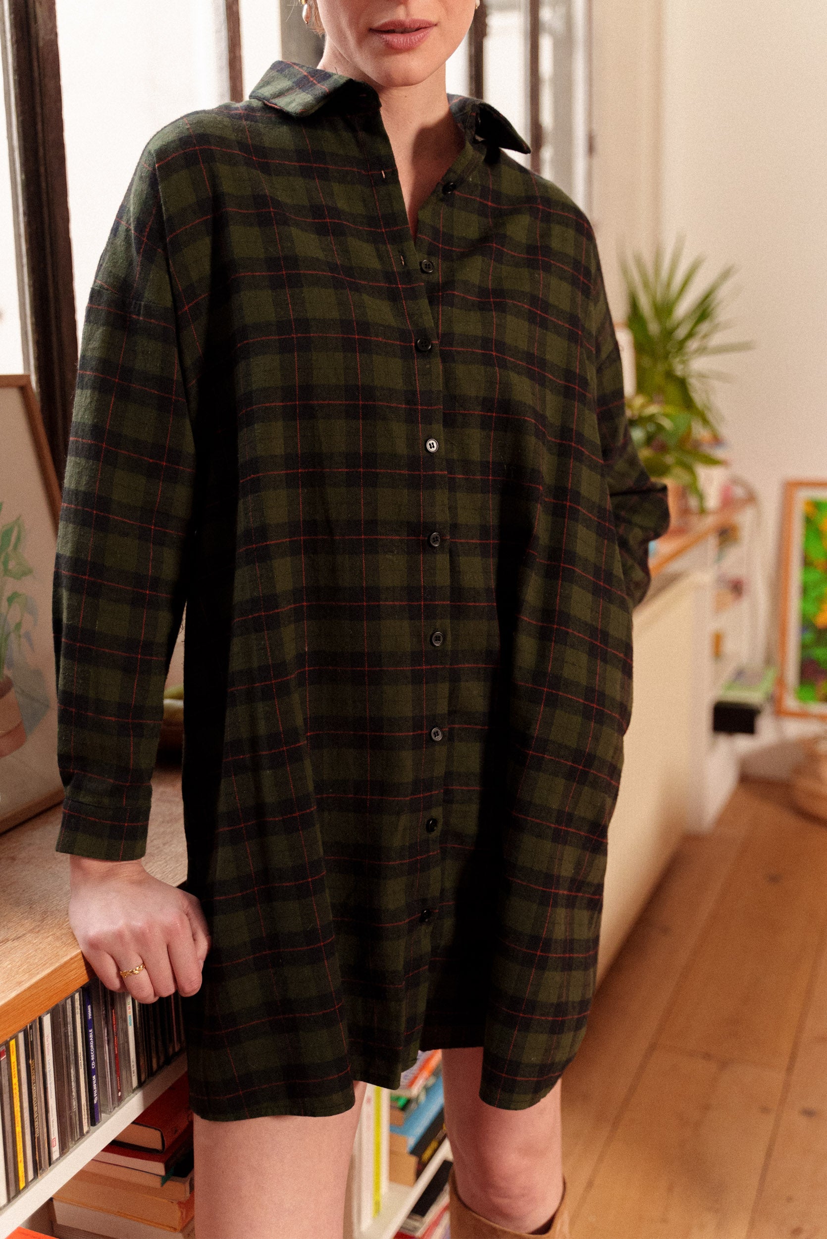 Notre robe chemise à carreaux Eirlys, avec ses motifs écossais intemporel est une pièce qui peut être styliser de plusieurs façon. Agrémenter d'une ceinture cintrée à la taille vous pourrez également donner naissance à une robe à la fois élégante et polyvalente.