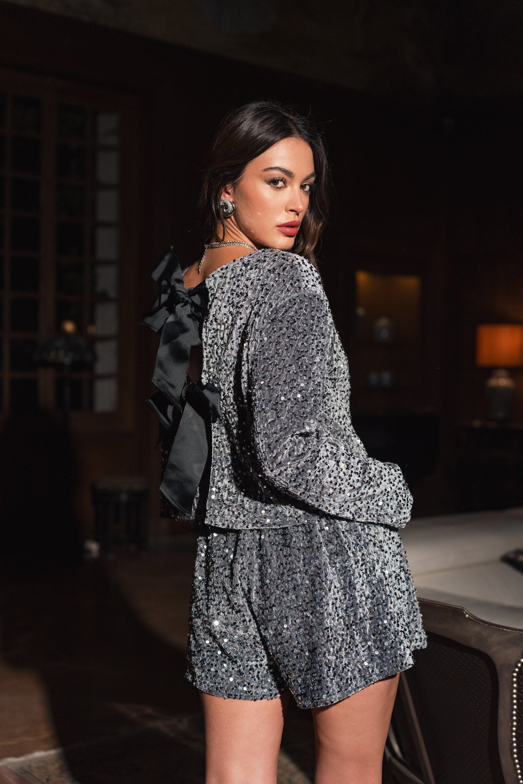 Associez-le à un top simple ou une blouse fluide pour équilibrer le côté brillant du short. Complétez votre tenue avec des talons ou des sandales à paillettes pour un look glamour et chic, ou optez pour des baskets pour un contraste décontracté mais stylé.