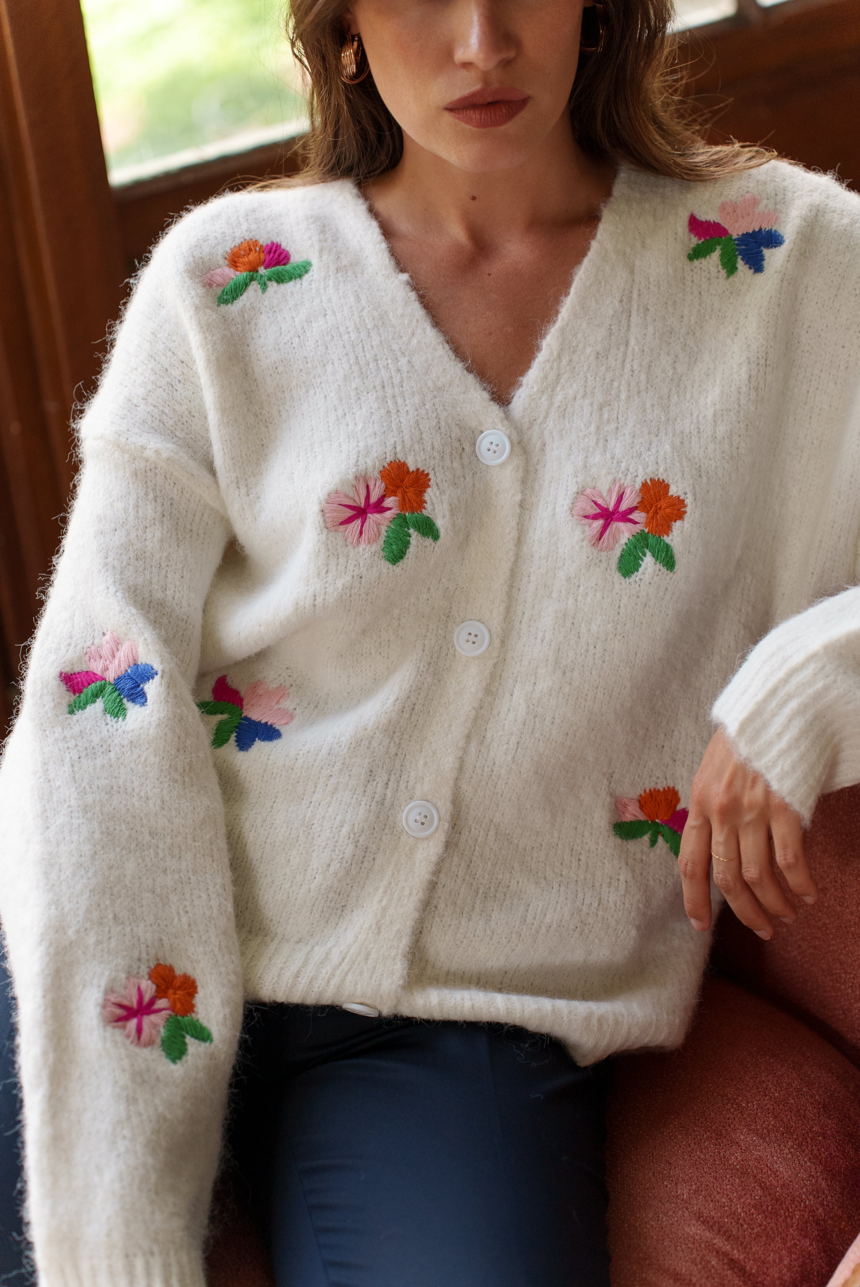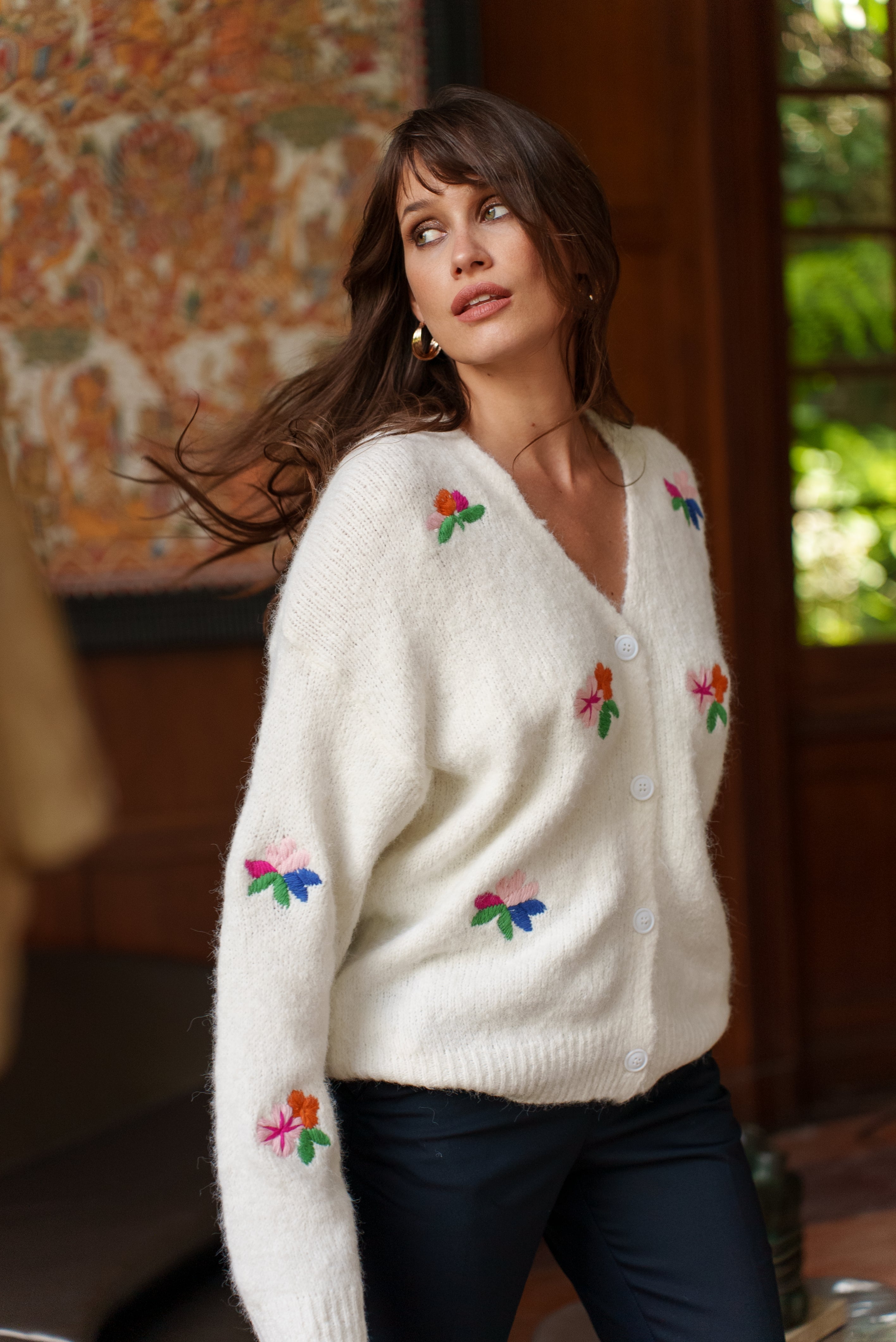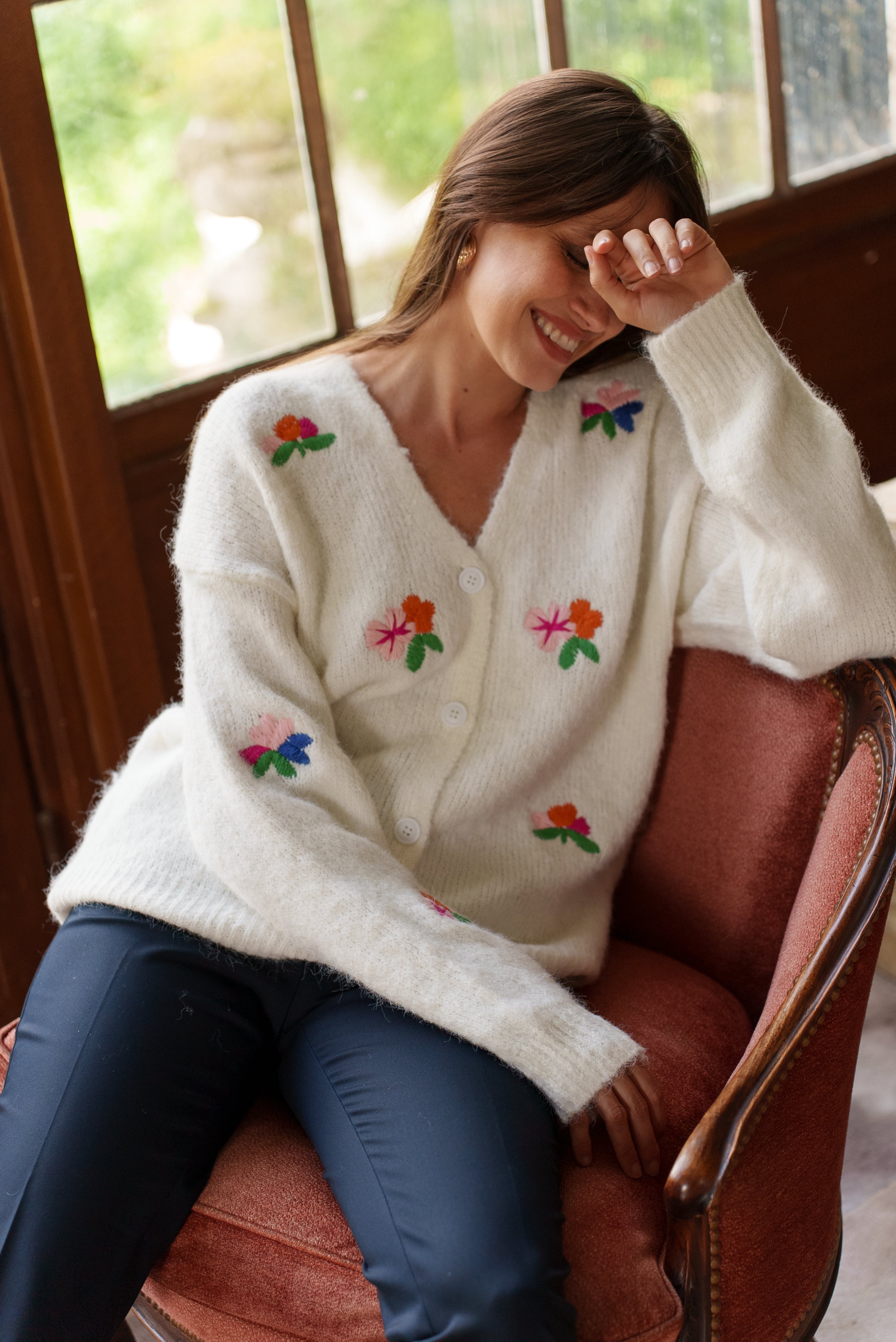 Optez pour le chic girly avec notre cardigan Maddy à motifs colorés fleuris. Ce cardigan vient ajouter à vos looks une touche de légèreté tout en douceur. Associez-le à un jean pour un look casual chic, ou avec une jupe pour un côté plus sophistiqué.