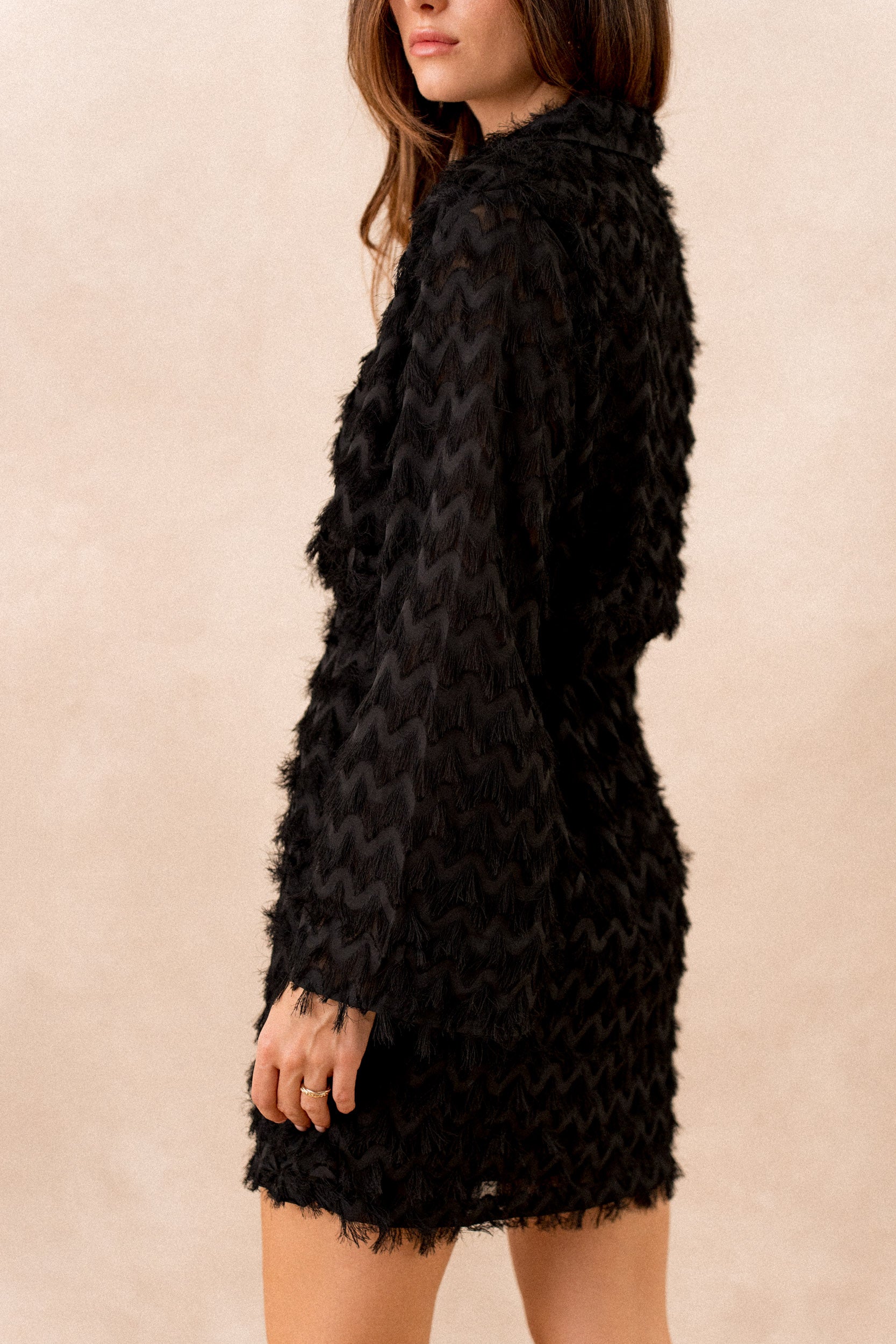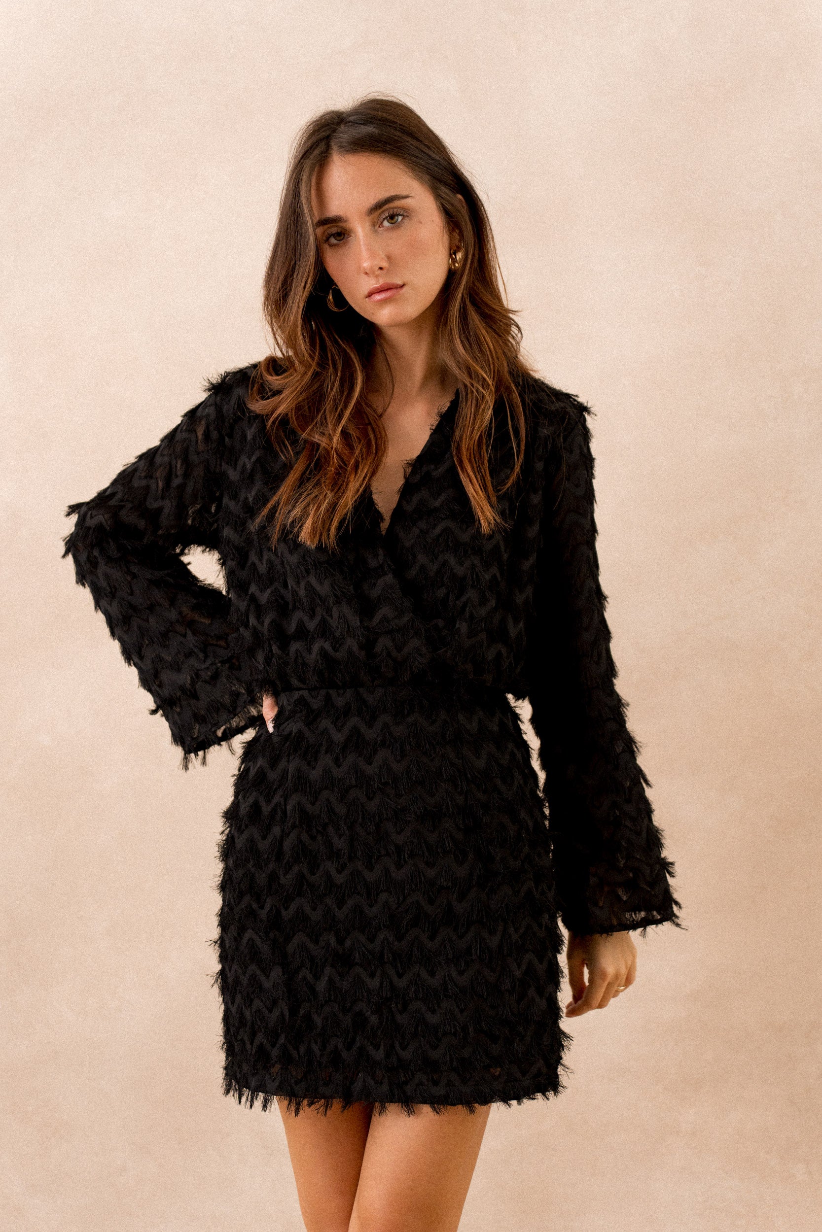La robe Ellie incarne un style rétro revisité avec une touche moderne. Cette robe courte et élégante, agrémentée de détails froufrous, rappelle l'esprit chic et festif des années folles. Idéale pour les occasions spéciales, elle vous assure une allure féminine et glamour, parfaite pour faire revivre le charme intemporel du style Charleston.