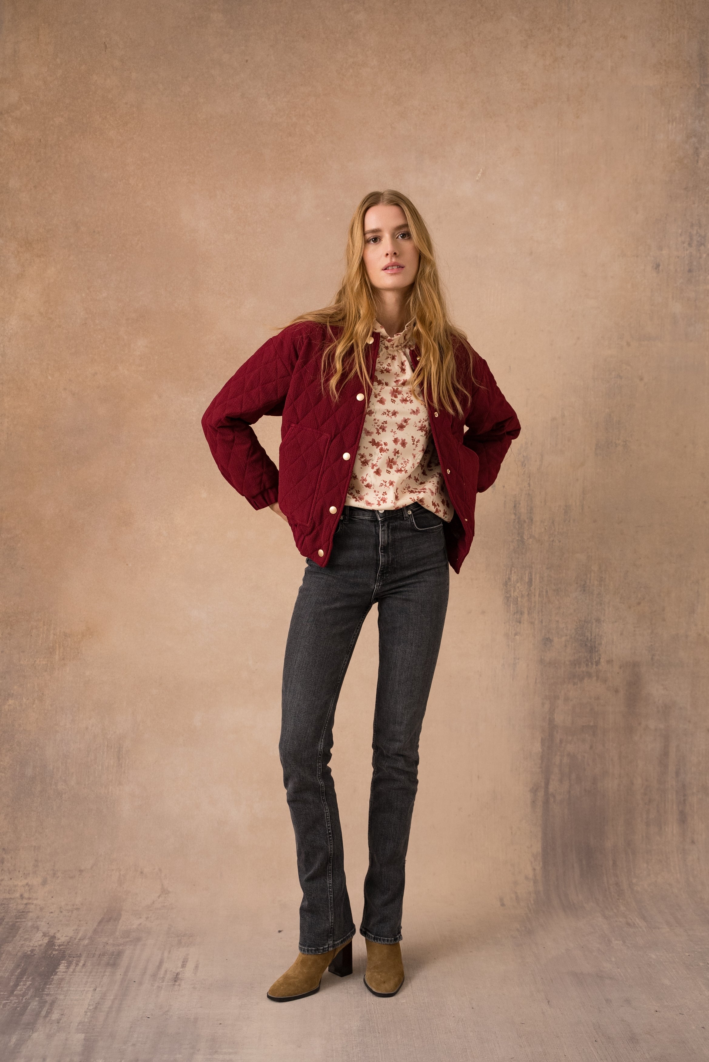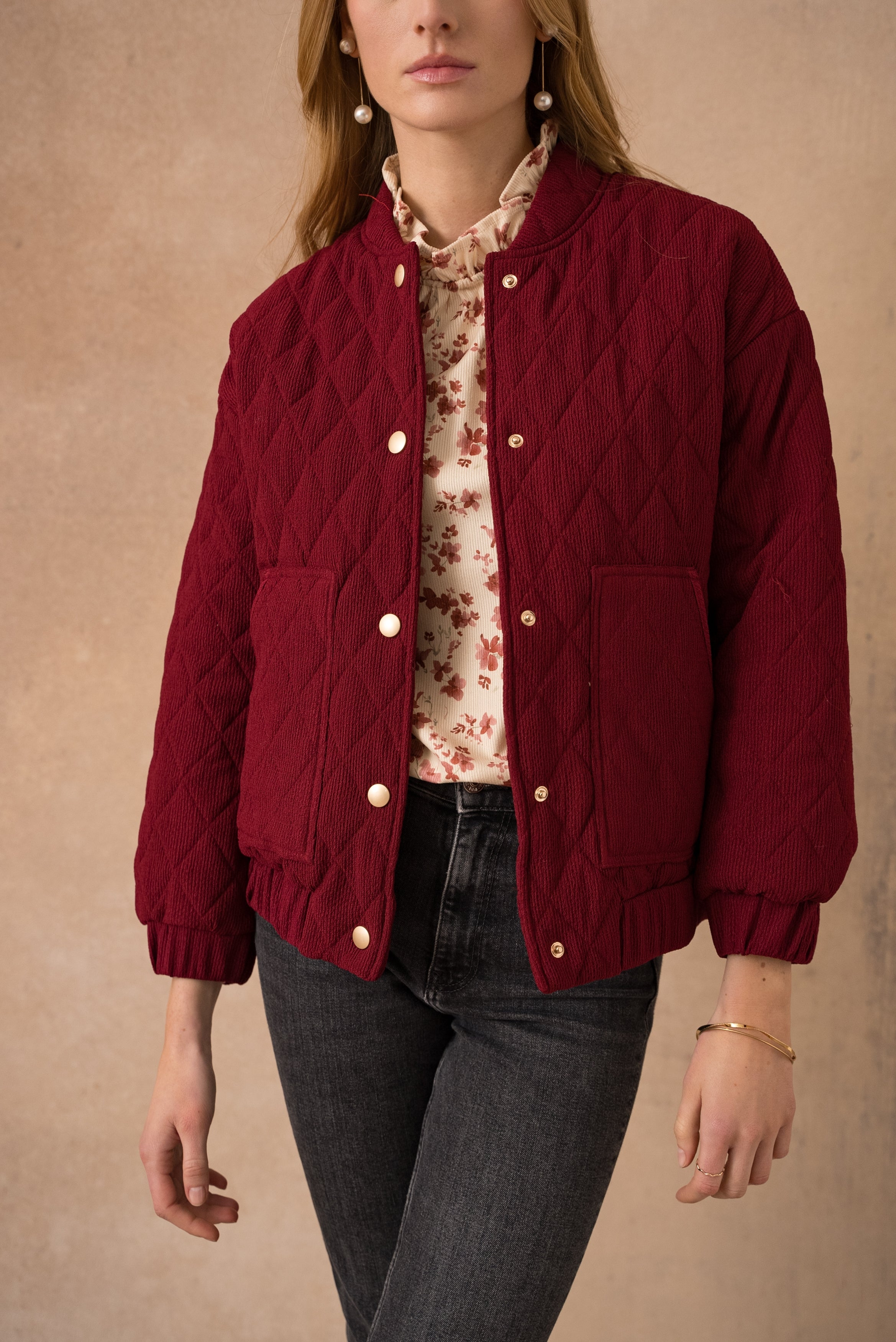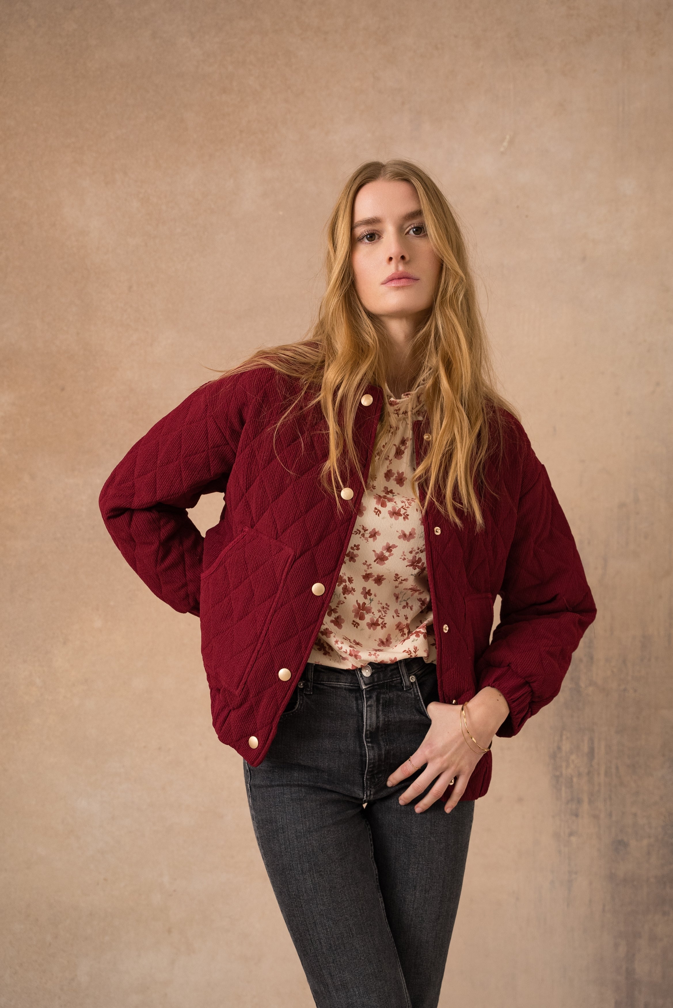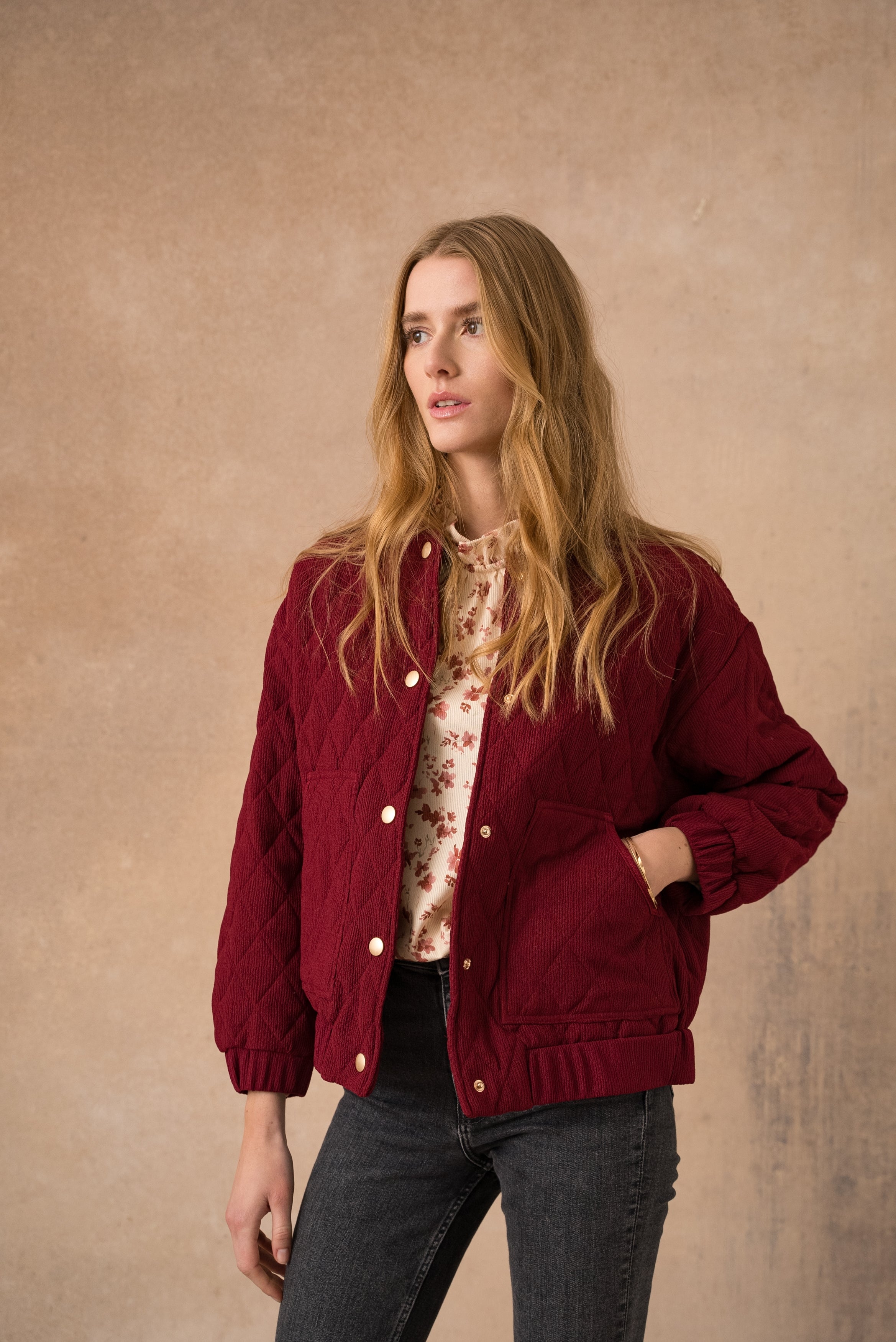 The Oscar teddy-style jacket offers a perfect balance between comfort and modernity. Featuring side pockets, it combines practicality with a relaxed aesthetic. Its button-down closure, both functional and elegant, gives the piece a vintage feel. The quilted pattern, subtle yet refined, adds a touch of texture and warmth while maintaining a stylish look. This jacket is ideal for a trendy and comfortable silhouette, perfect for cool days when you want to combine style and well-being.