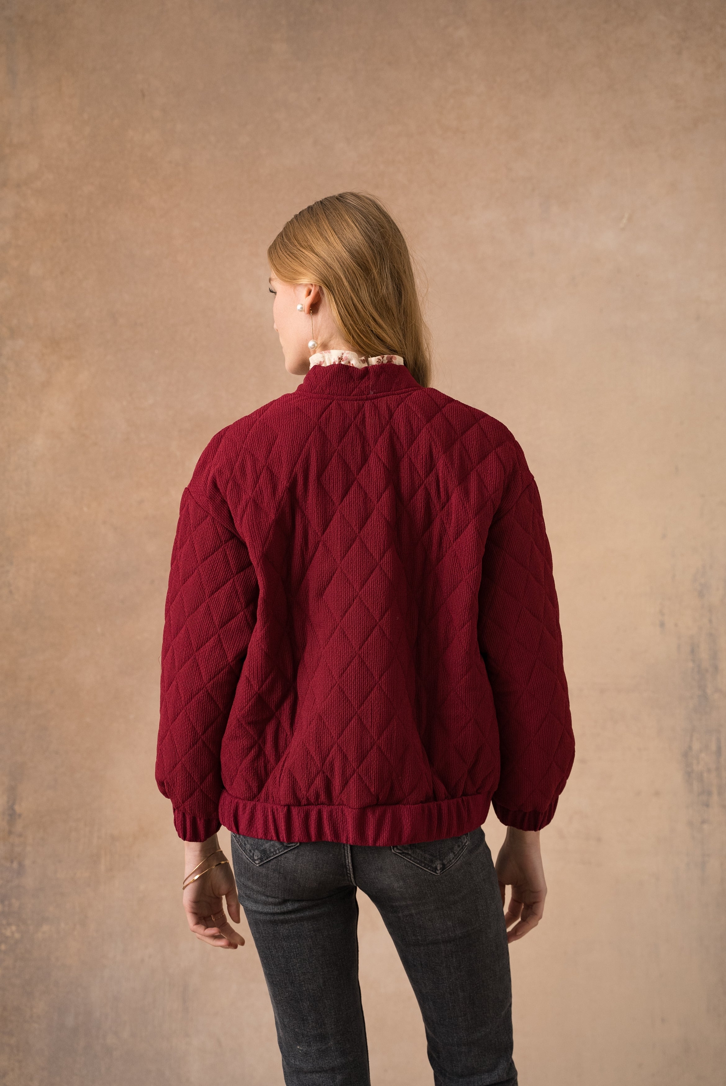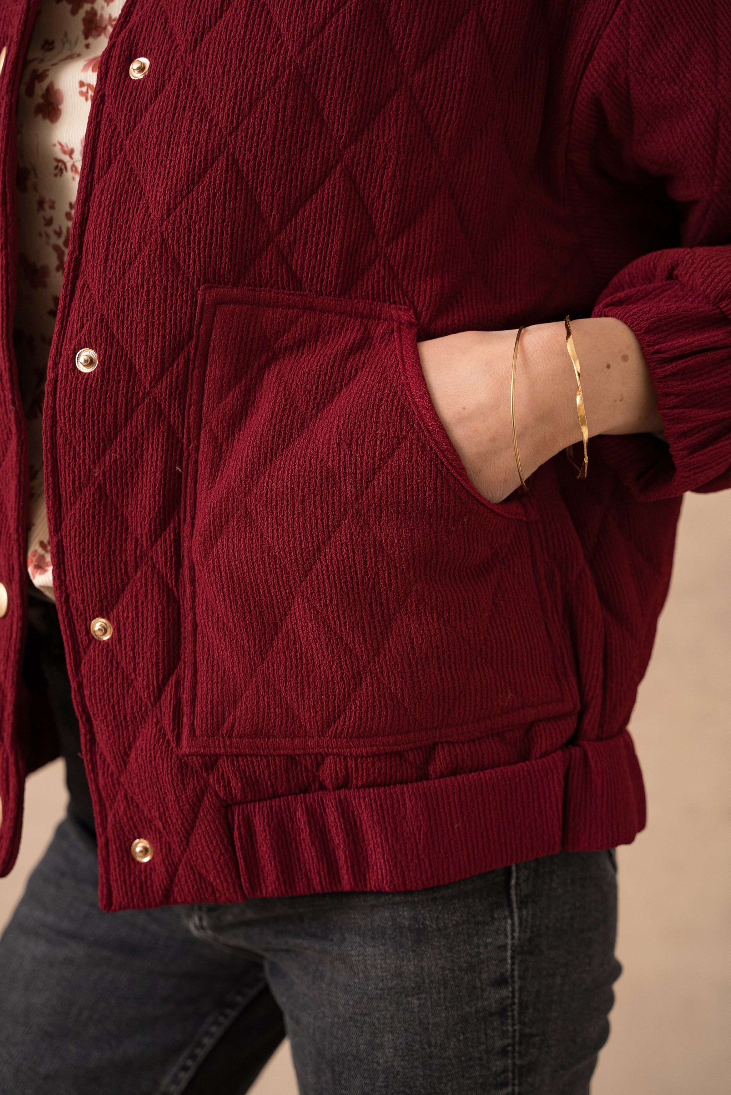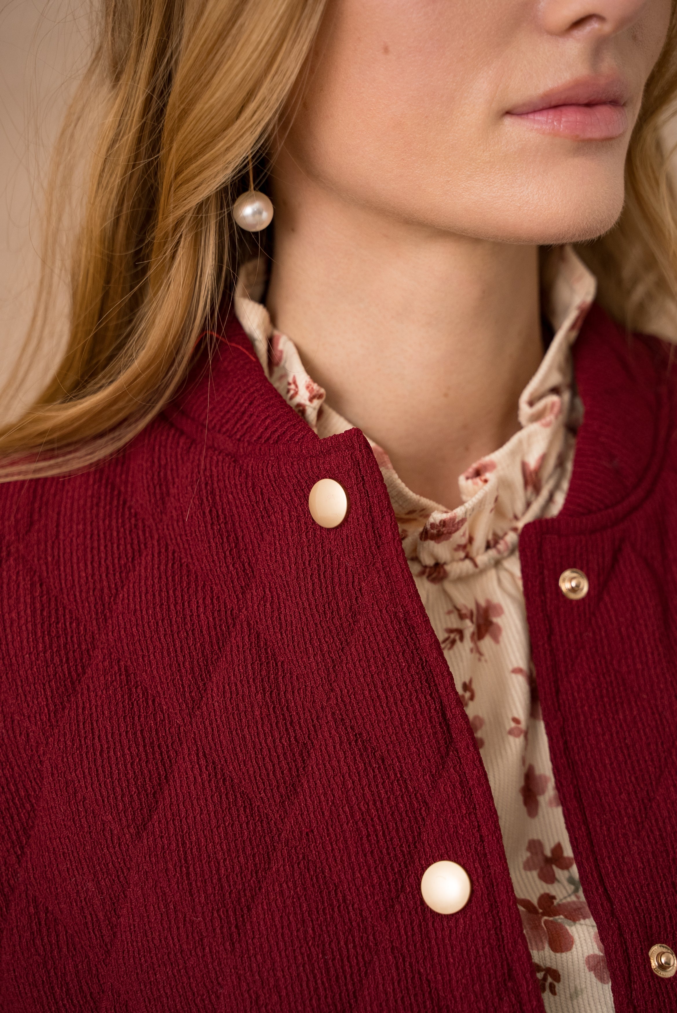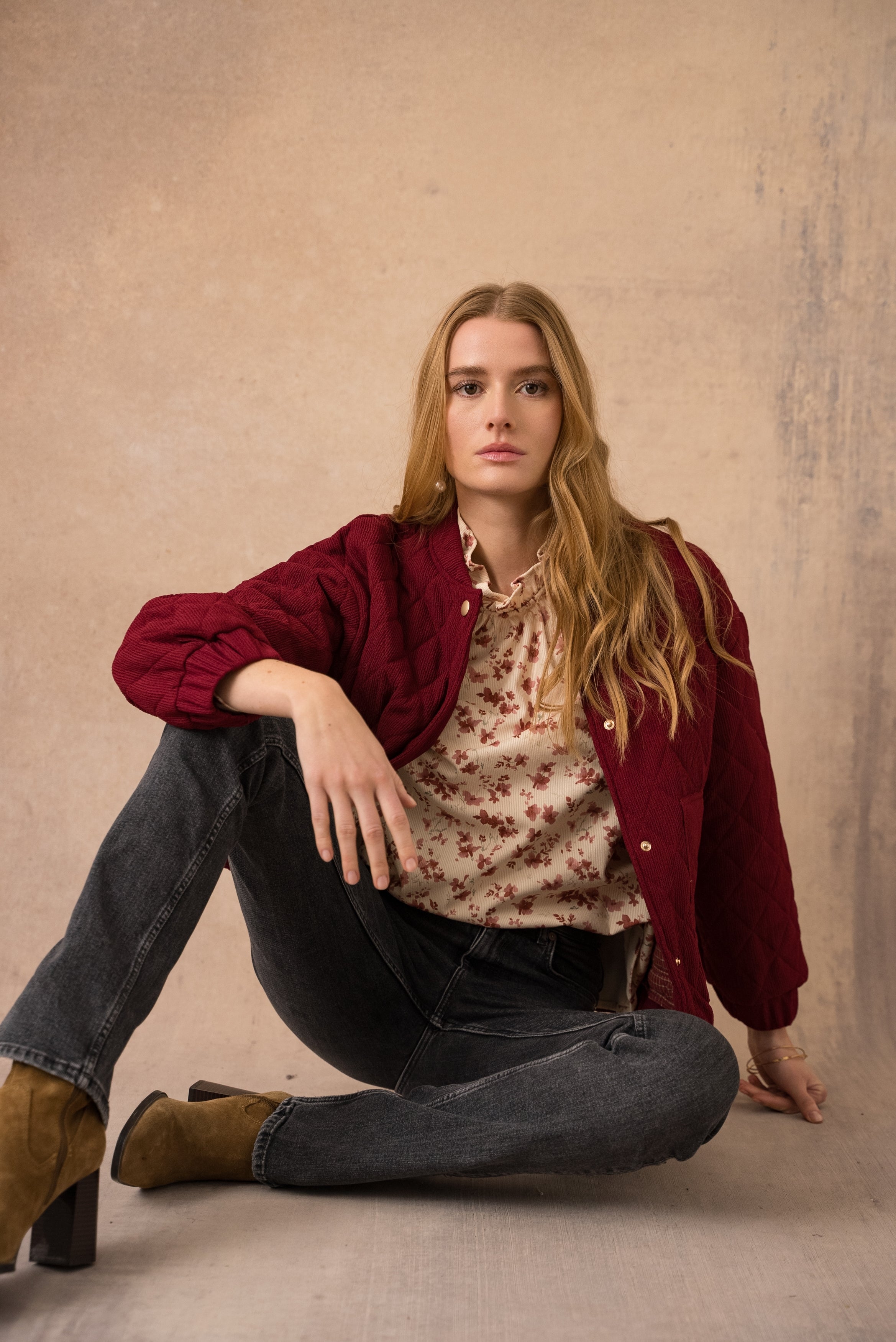 The Oscar teddy-style jacket offers a perfect balance between comfort and modernity. Featuring side pockets, it combines practicality with a relaxed aesthetic. Its button-down closure, both functional and elegant, gives the piece a vintage feel. The quilted pattern, subtle yet refined, adds a touch of texture and warmth while maintaining a stylish look. This jacket is ideal for a trendy and comfortable silhouette, perfect for cool days when you want to combine style and well-being.