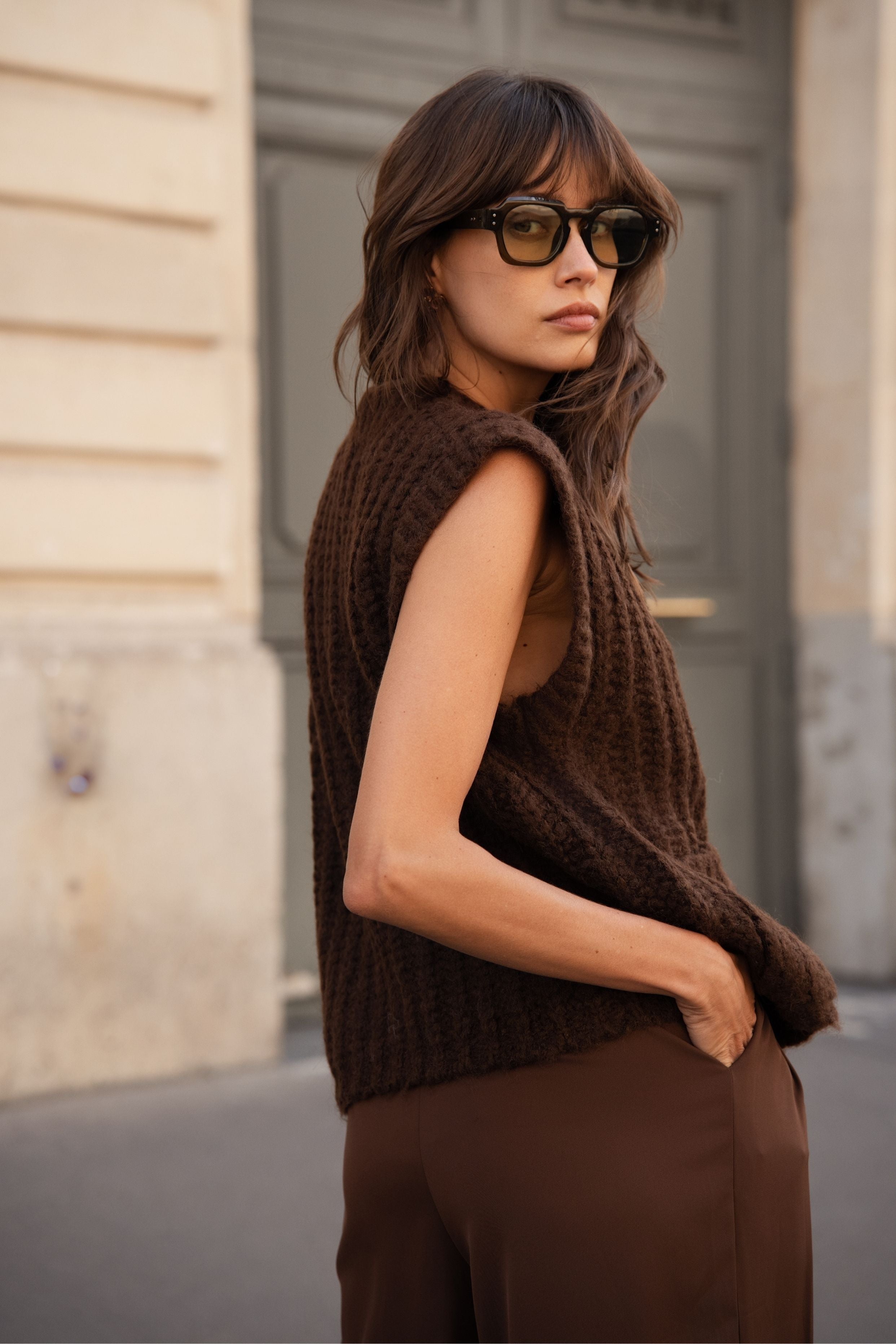 Sienna embodies the perfect blend between the softness of the first days of autumn and the sunny brilliance of late summer. Its soft knit fabric delicately envelops you, offering irresistible comfort. We love it in a casual version with mom-fit jeans, or more sophisticated, paired with pleated trousers.