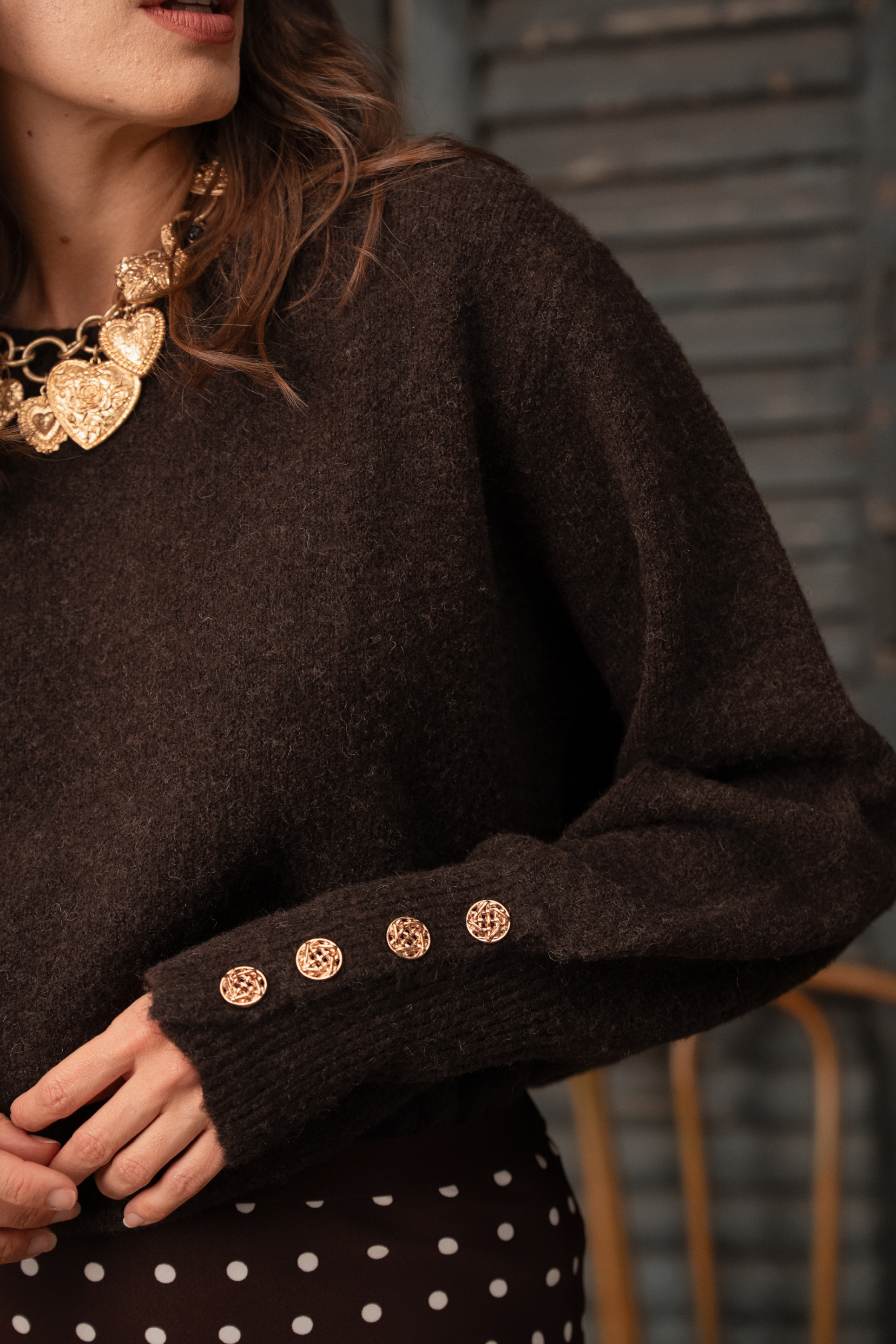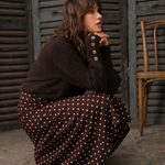 It can be worn tucked into high-waisted jeans for a casual and confident look, or with a flowing skirt to soften its graphic energy. Lucile is the sweater that plays with colors and makes each look unique.