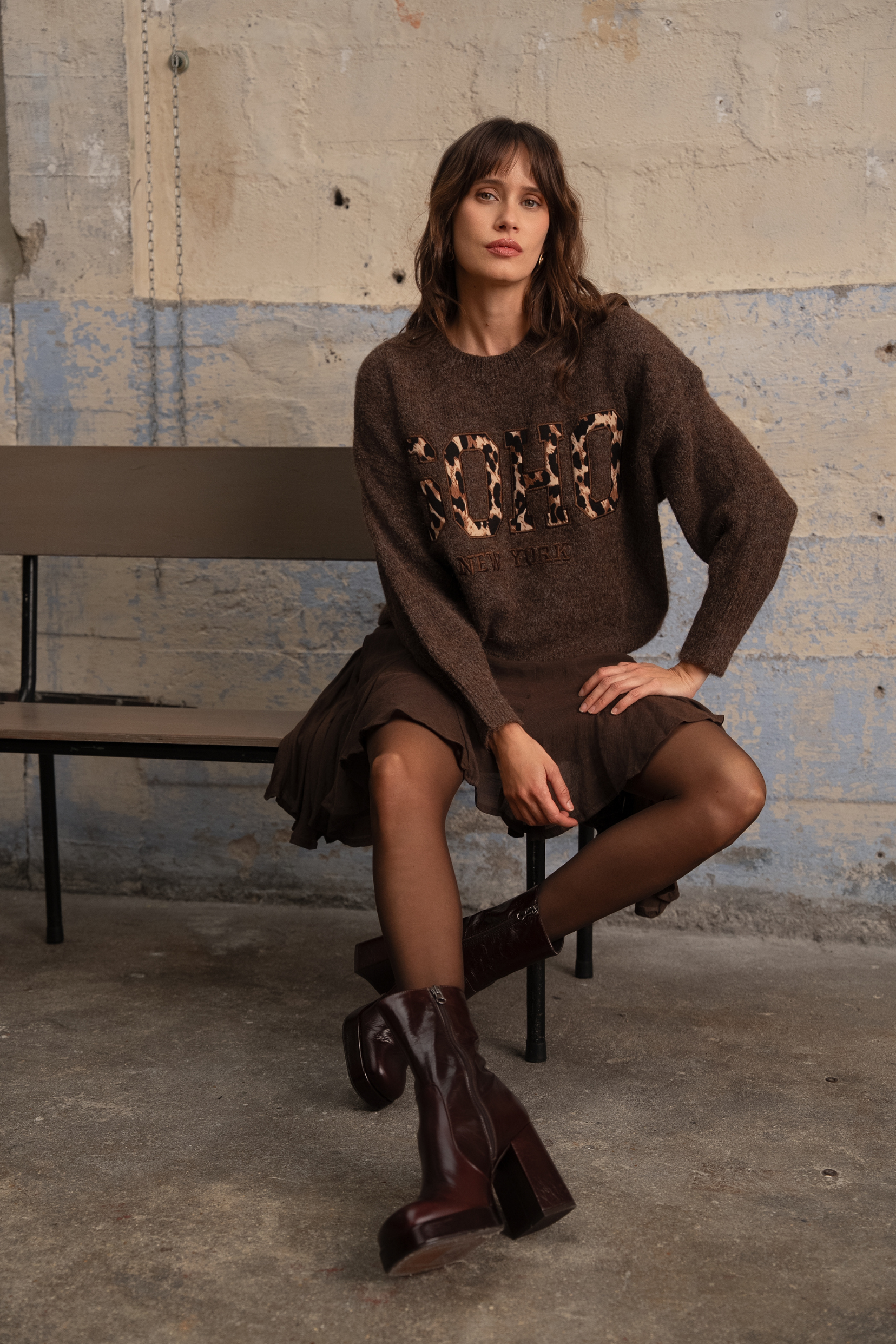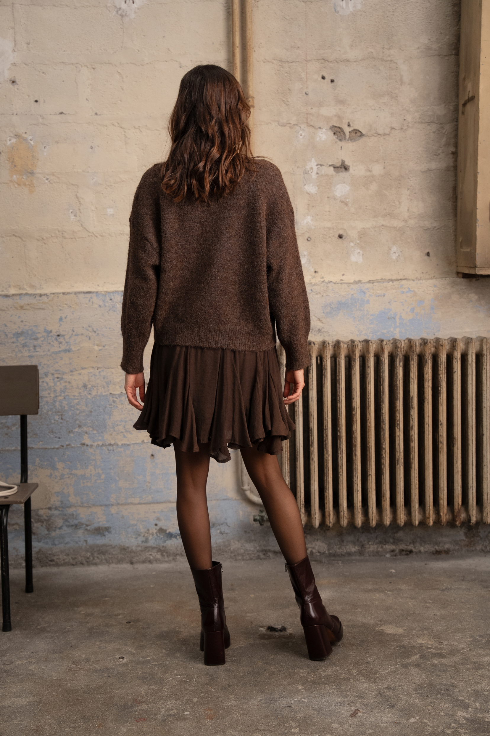 It can be worn tucked into high-waisted jeans for a casual and confident look, or with a flowing skirt to soften its graphic energy. Lucile is the sweater that plays with colors and makes each look unique.