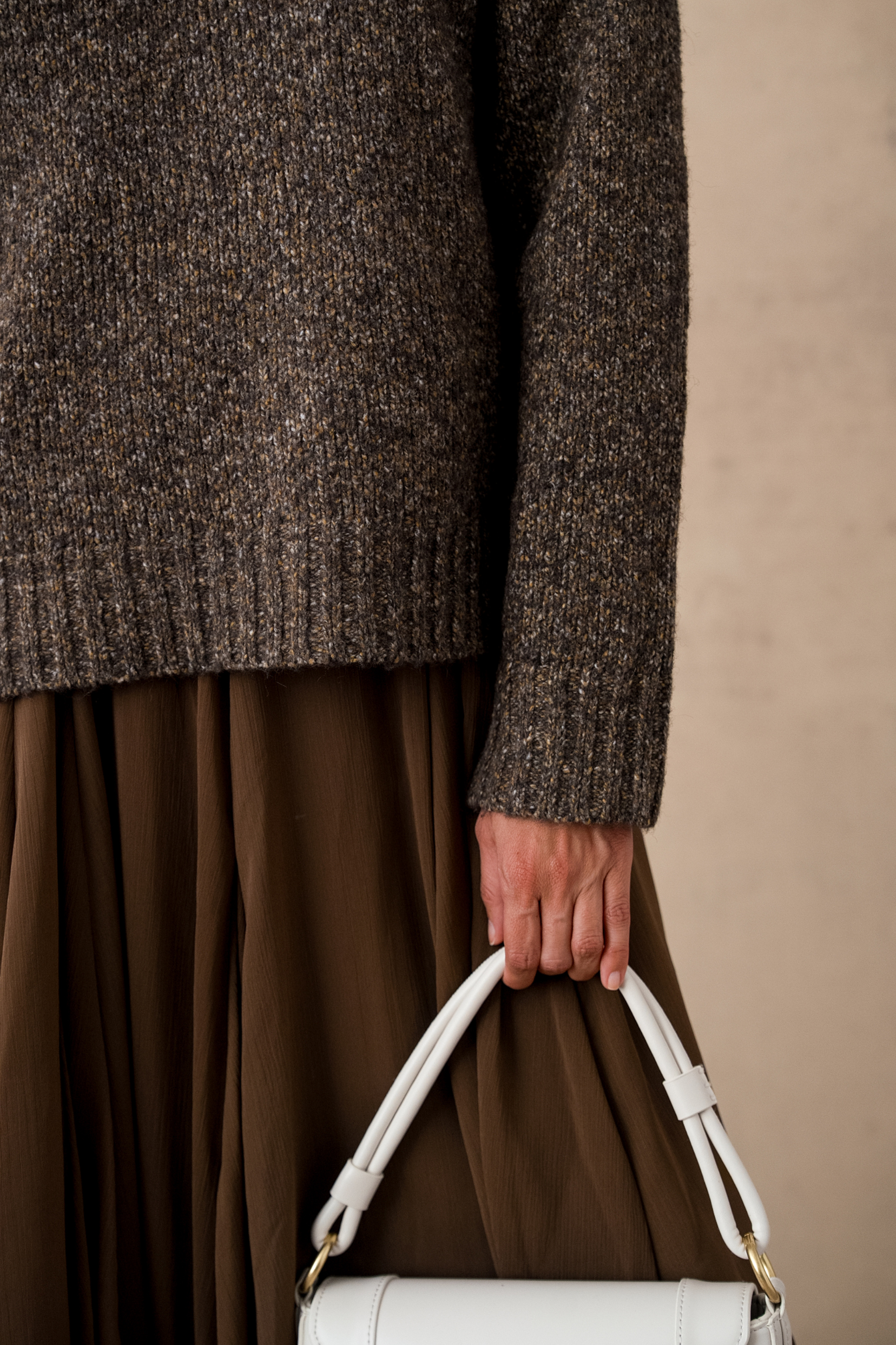 Made from a blend of 13% wool, 30% recycled polyester and 57% polyester, it combines warmth, softness and a more responsible approach. A cocooning piece, designed to accompany your autumn days while staying chic and feminine.