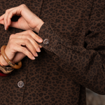 Its straight cut and V-neck give it a relaxed look, while its chocolate pattern warms up the look with an irresistible retro touch.