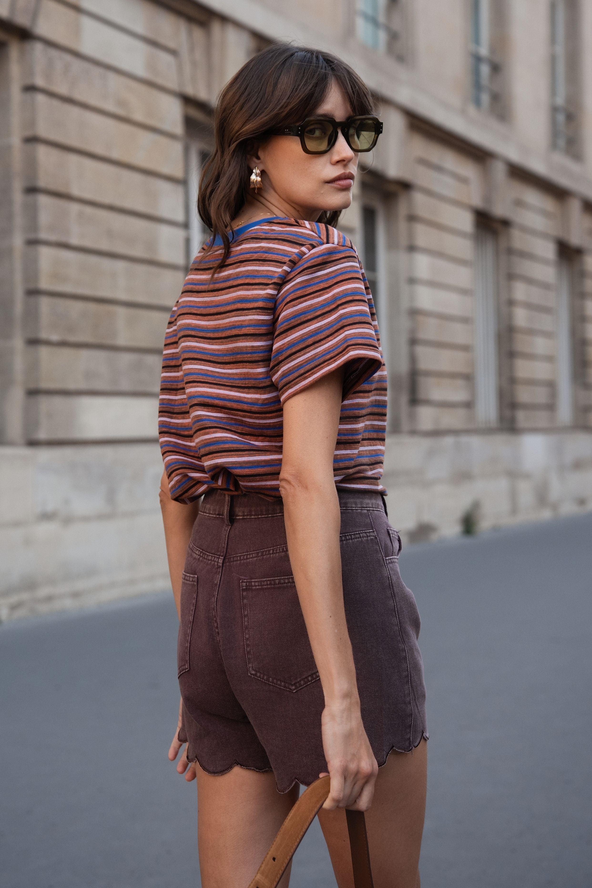 Our Paloma T-shirt is appealing because of its vibrant stripes and its easy-to-wear straight cut.