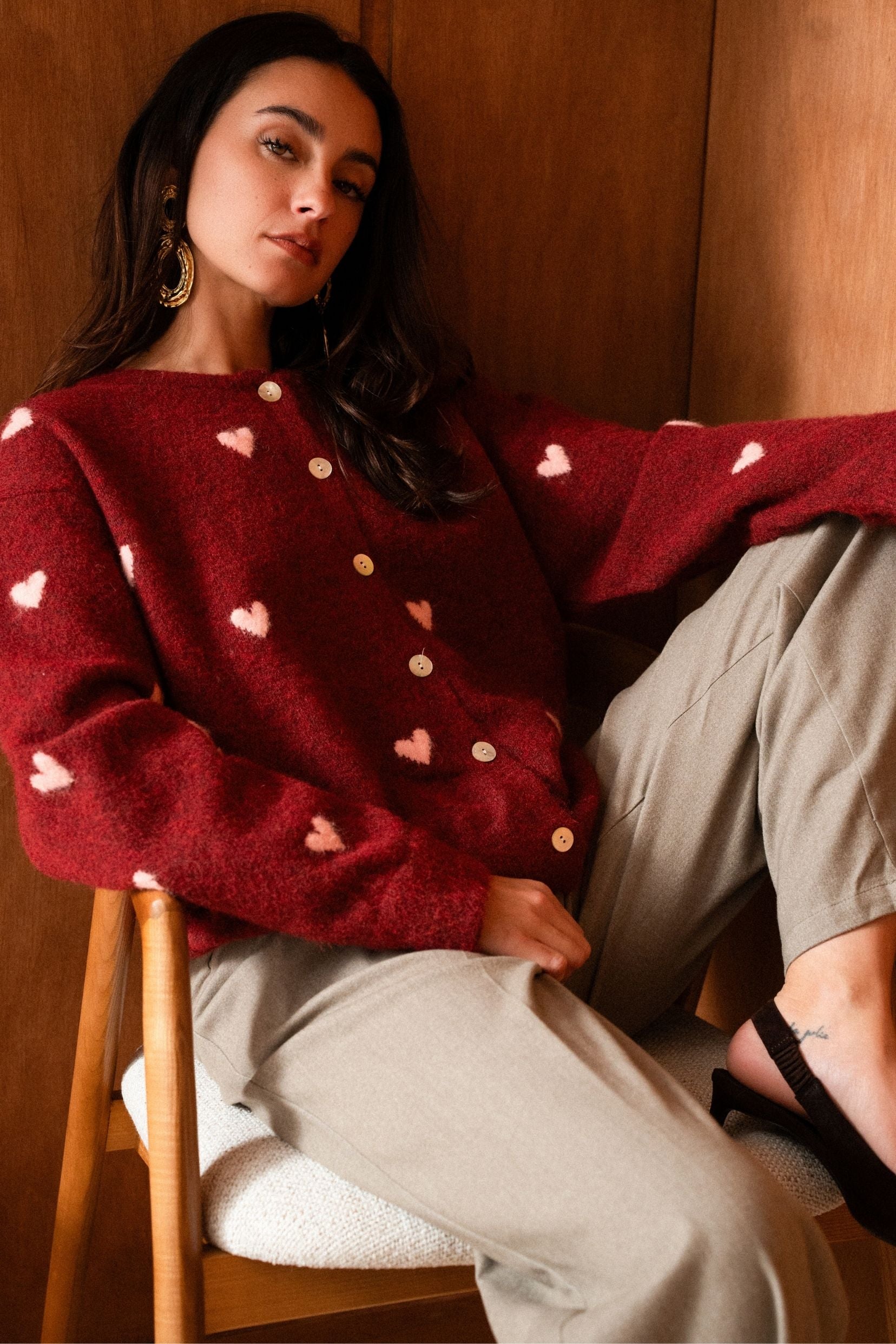 It can be worn tucked into high-waisted jeans for a casual and confident look, or with a flowing skirt to soften its graphic energy. Lucile is the sweater that plays with colors and makes each look unique.