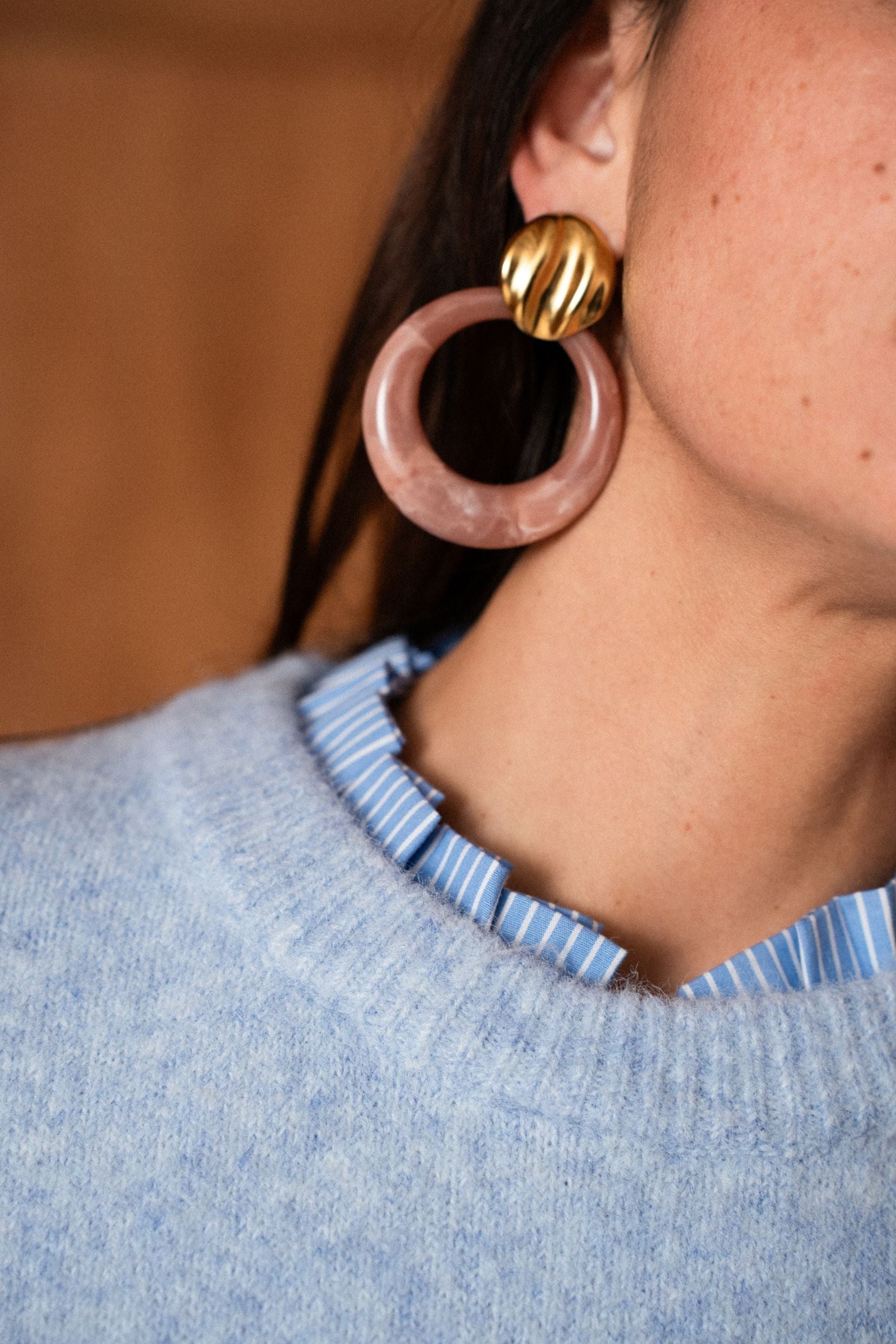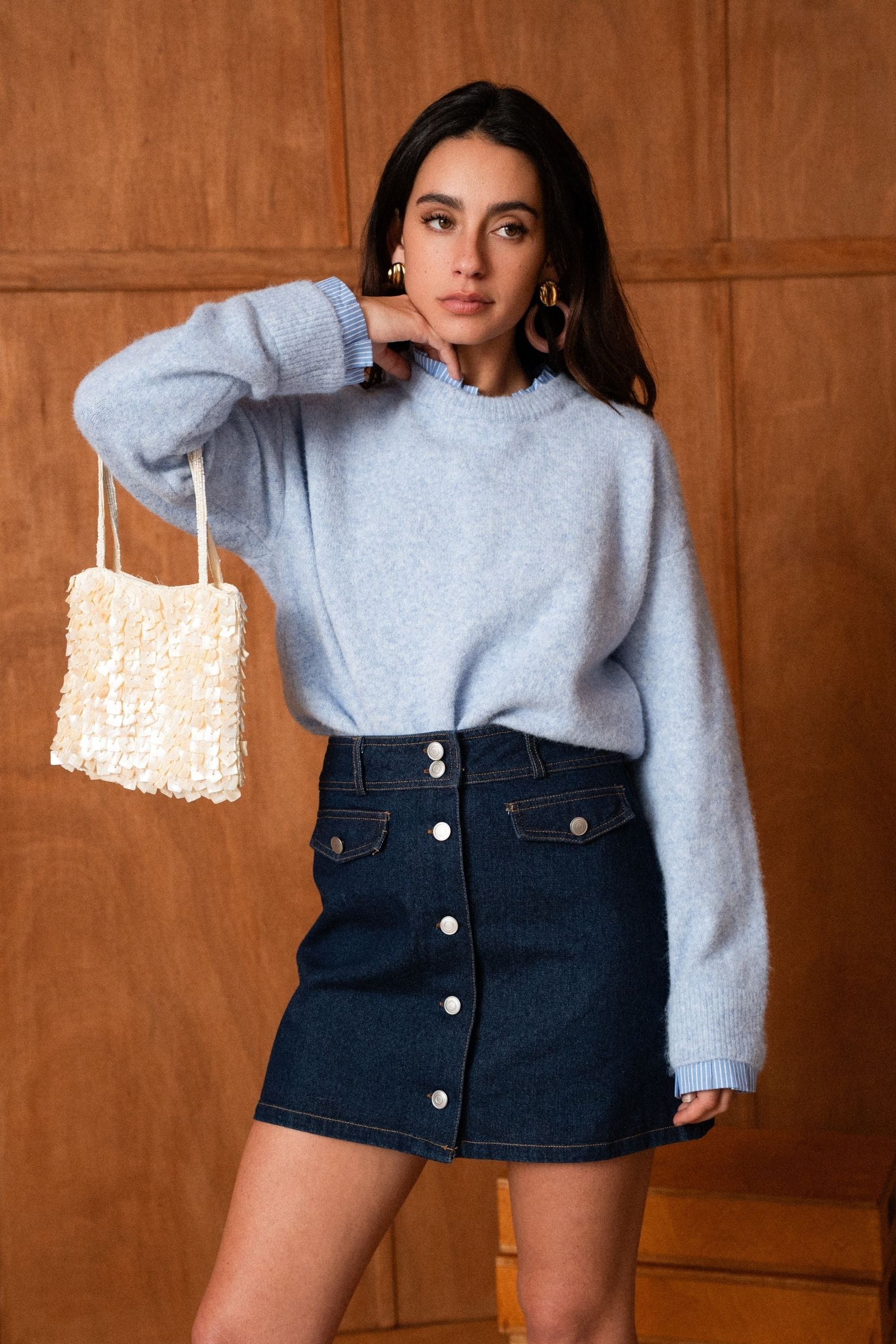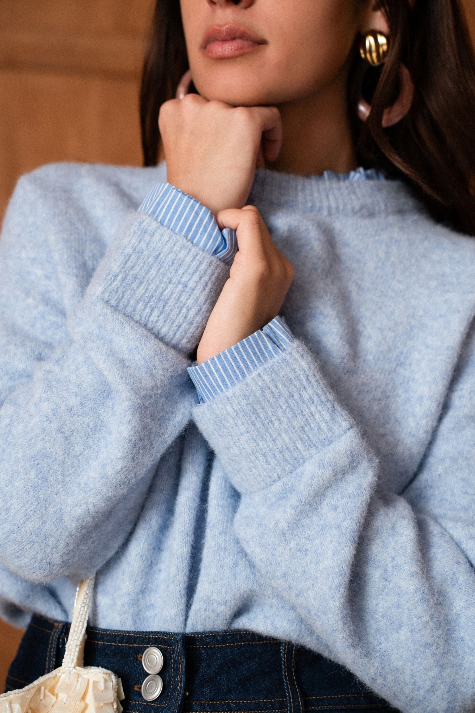 It can be worn tucked into high-waisted jeans for a casual and confident look, or with a flowing skirt to soften its graphic energy. Lucile is the sweater that plays with colors and makes each look unique.