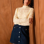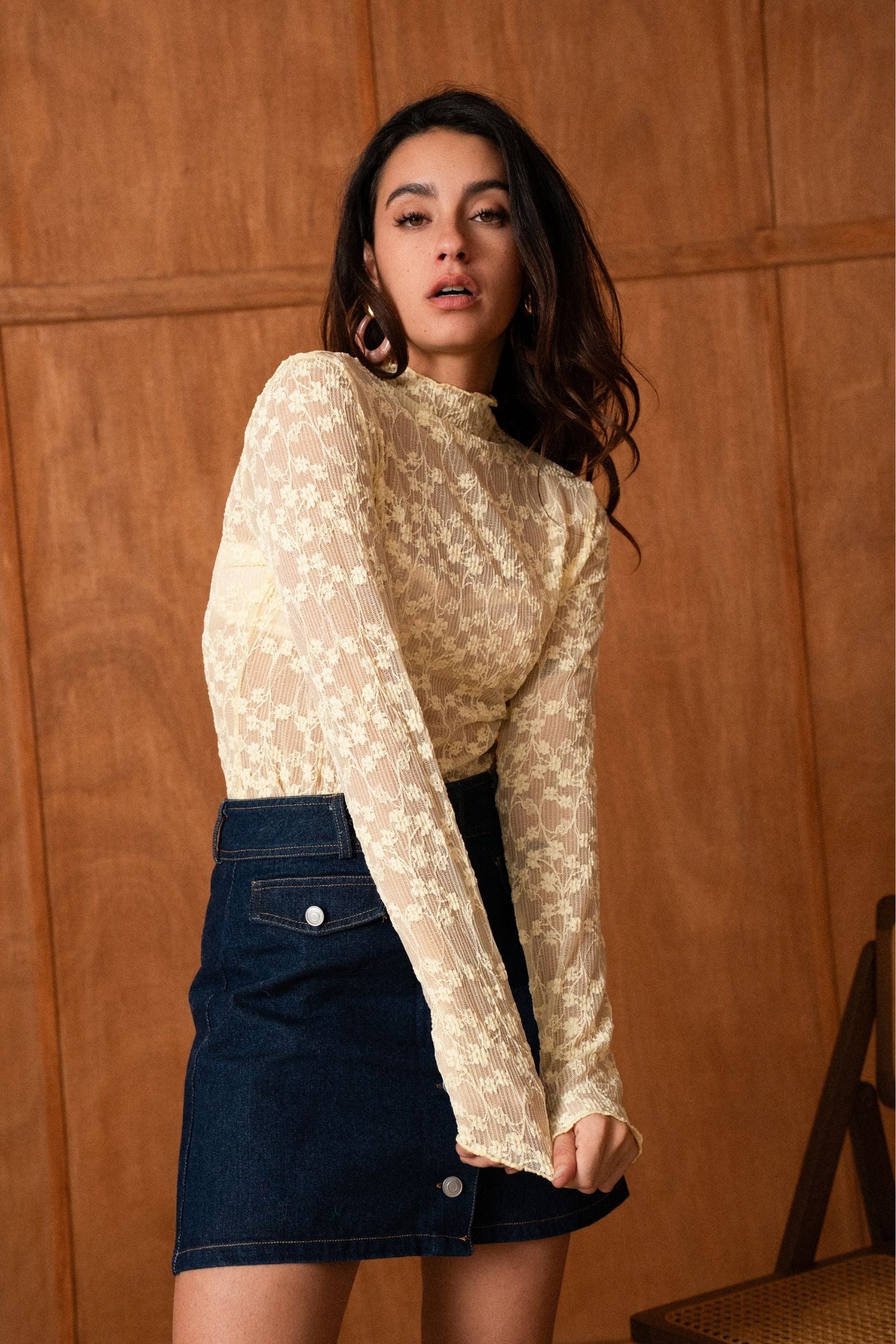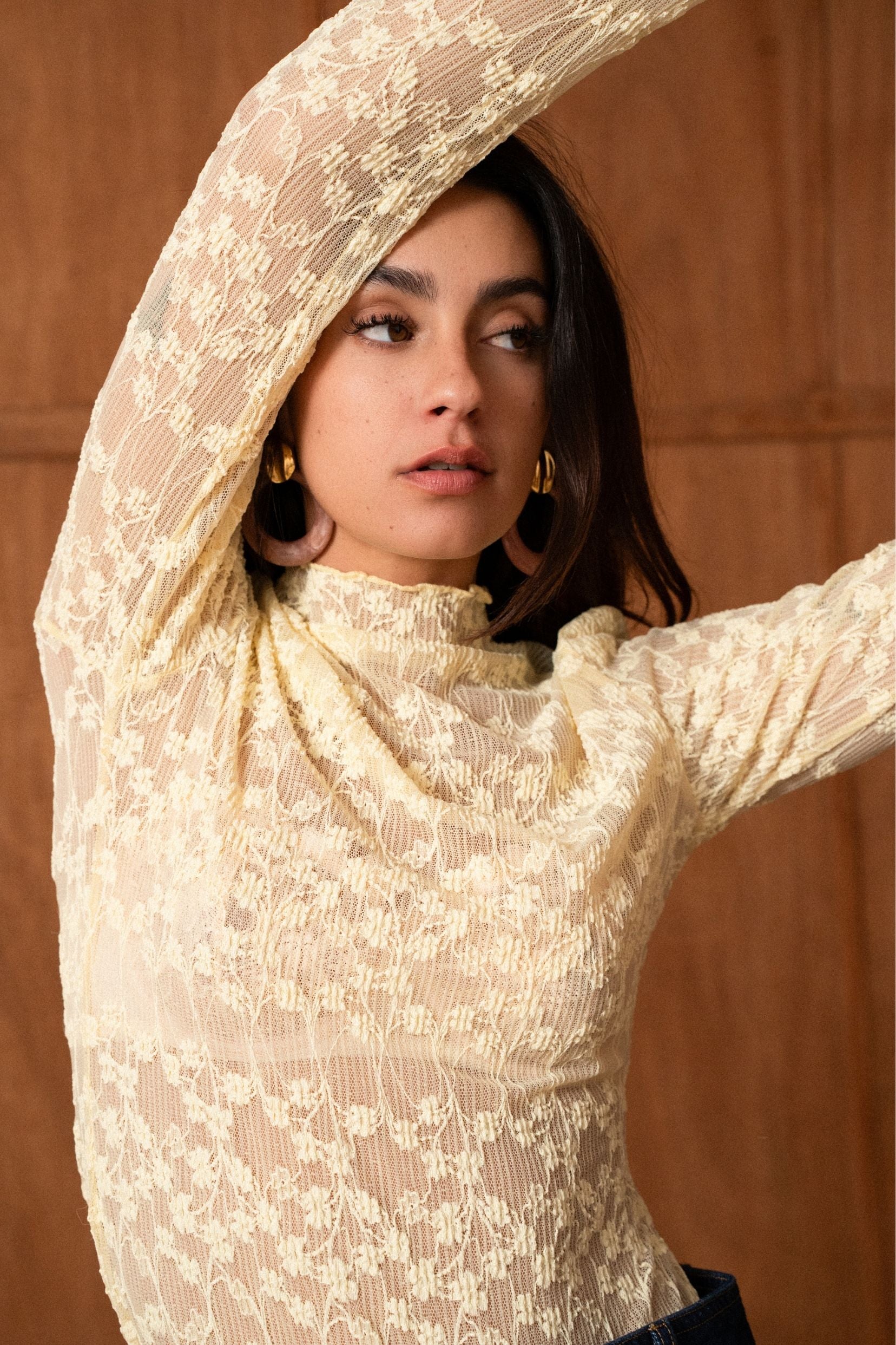 Its ribbed knit slims the silhouette while its turtleneck gently envelops, making it the ideal ally for cool days. In its deep chocolate color, it can be worn under a structured jacket for a city look, or worn alone with jeans for a minimalist and chic look.