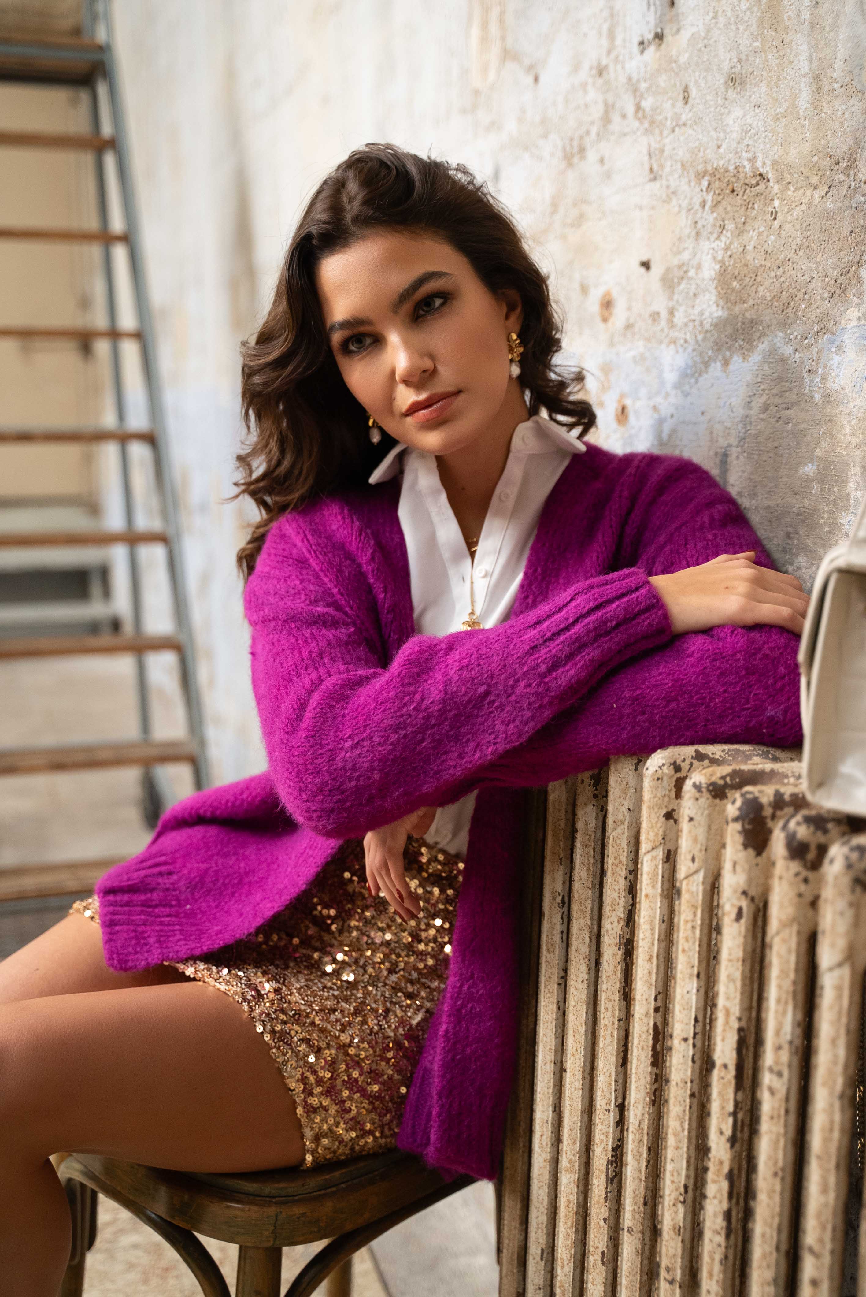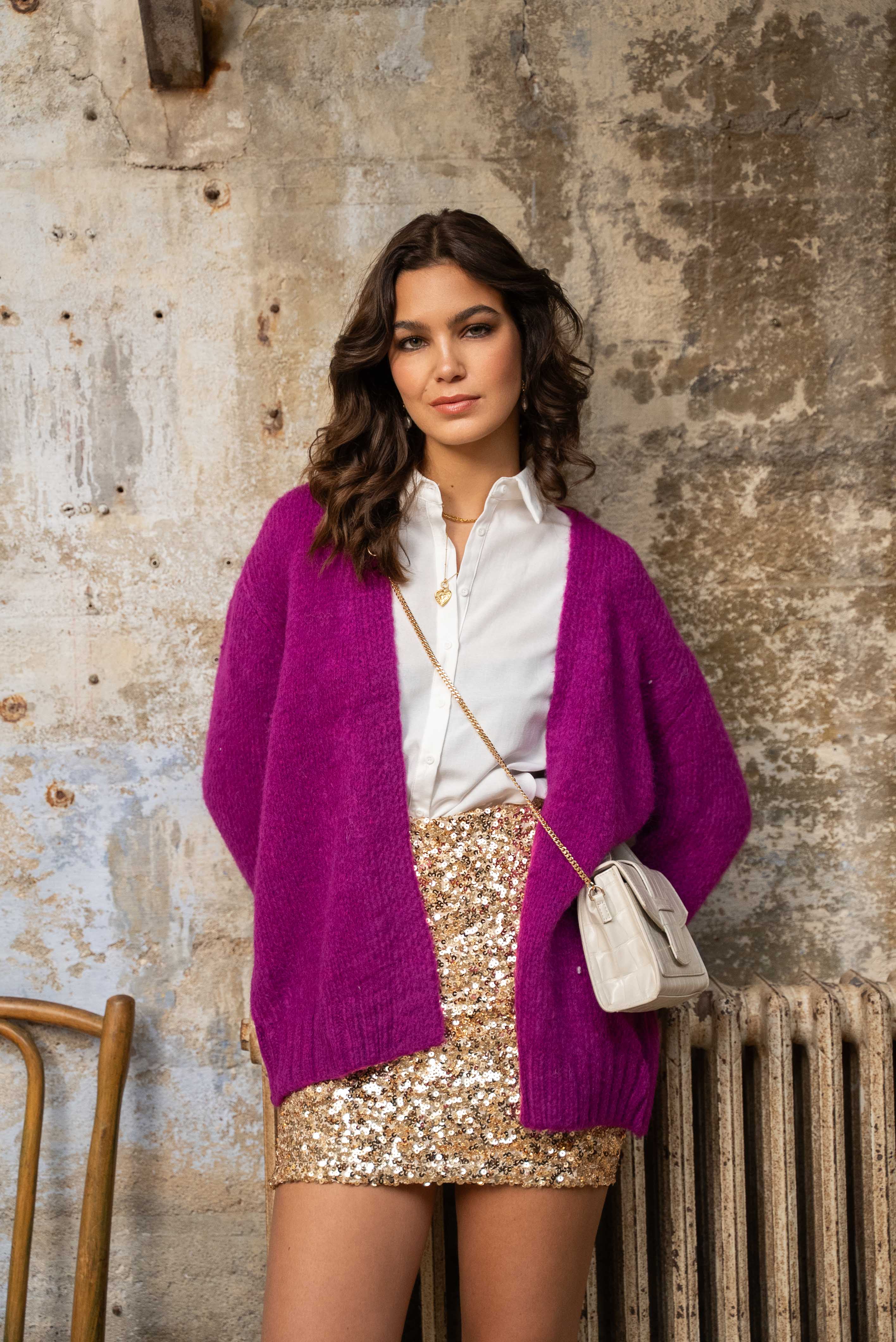 The Ondine skirt, short and glittery, combines simplicity and sparkle. Its modern cut offers a touch of subtle glamour, while the sequins add a delicate glow, perfect for brightening up your outfit. Its short length makes it ideal for a playful touch of style.