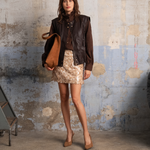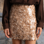 With its sparkling sequins and play of light with every movement, this skirt is a real eye-catcher. Short and full of character, it can be worn with a soft sweater to break the rules or with a light blouse to shine in the evening.