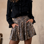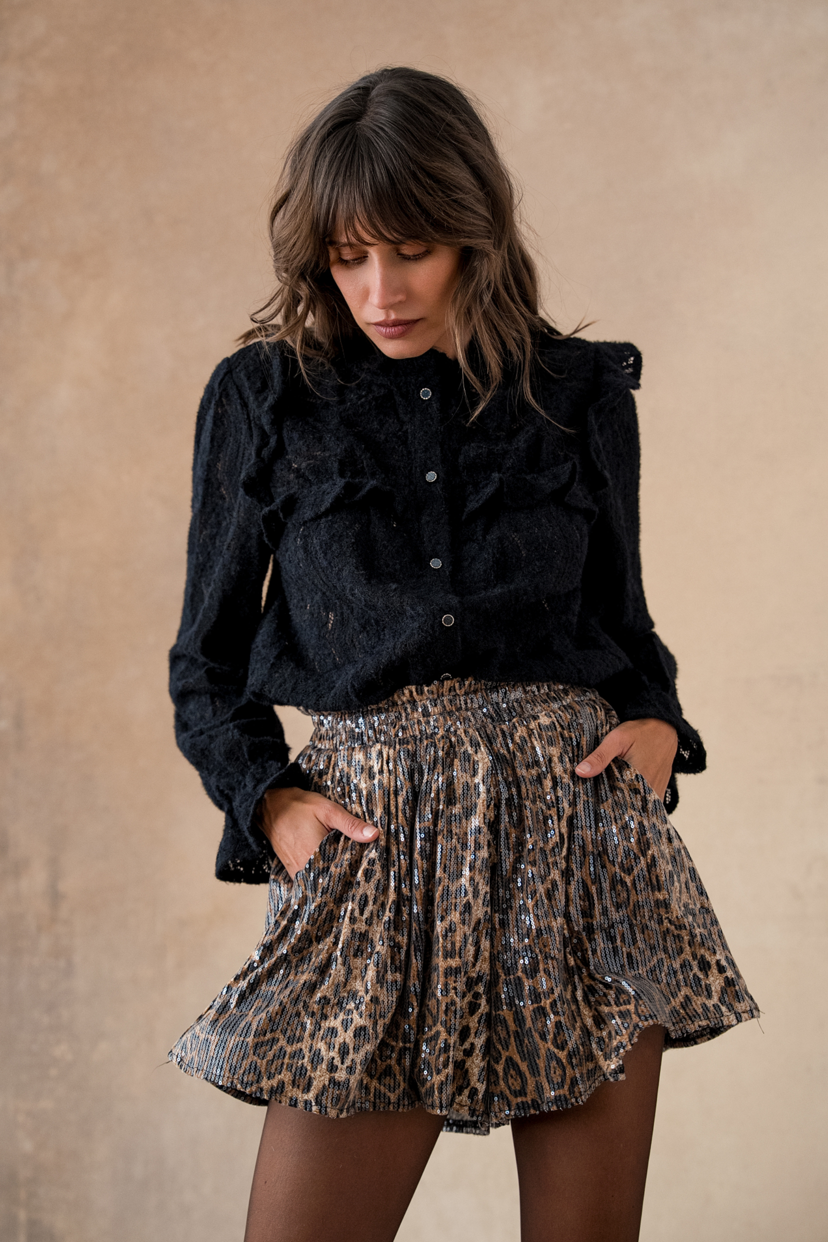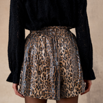 Its shimmering leopard print catches the light with every movement, for a look that is both wild and sophisticated. Elasticated waist, flowing cut and soft drape: it combines comfort and style with disconcerting ease.