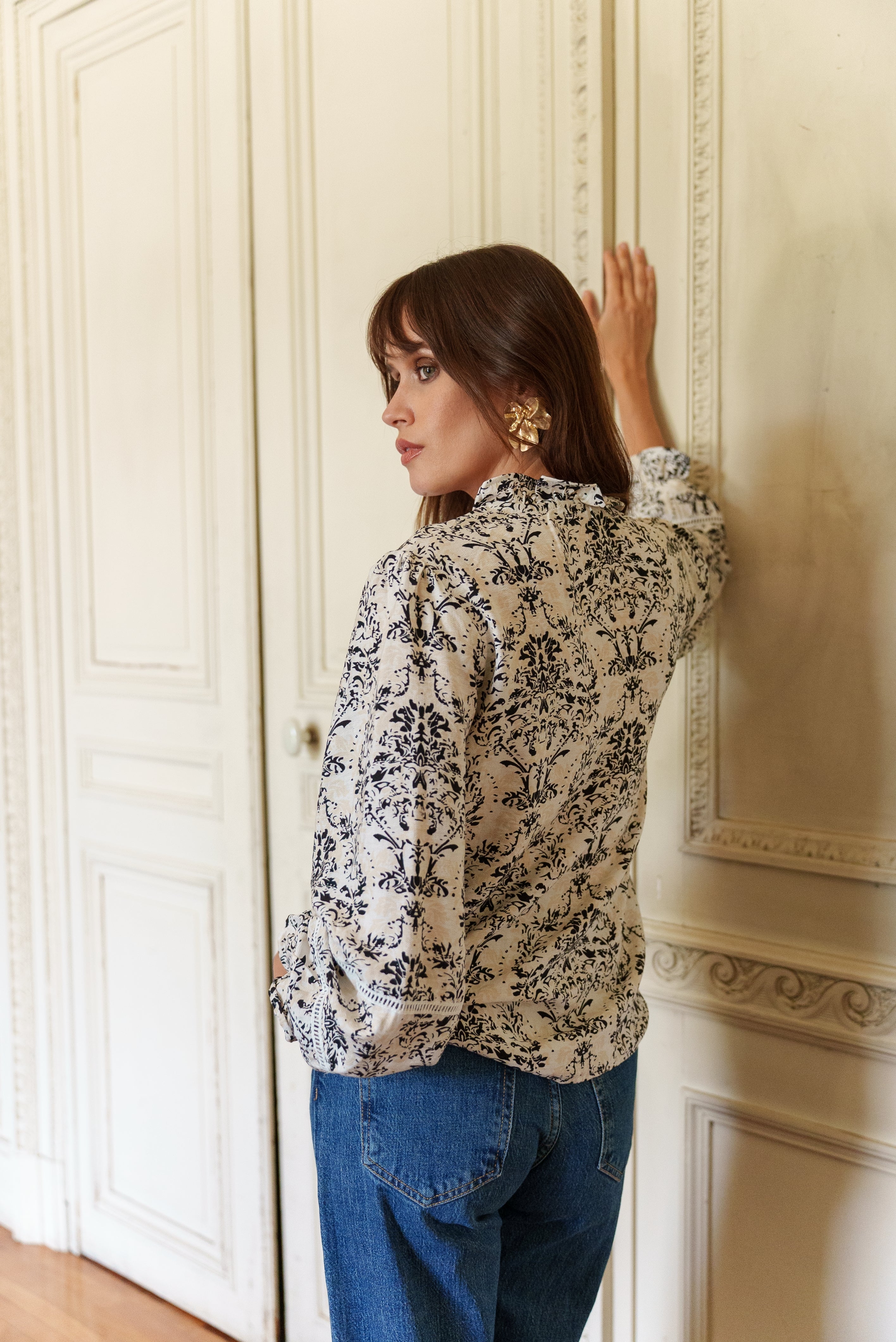 The Mathias shirt features a baroque floral print that adds a rock and trendy touch to your looks. Its high neck makes it a must-have piece for this back-to-school season.