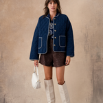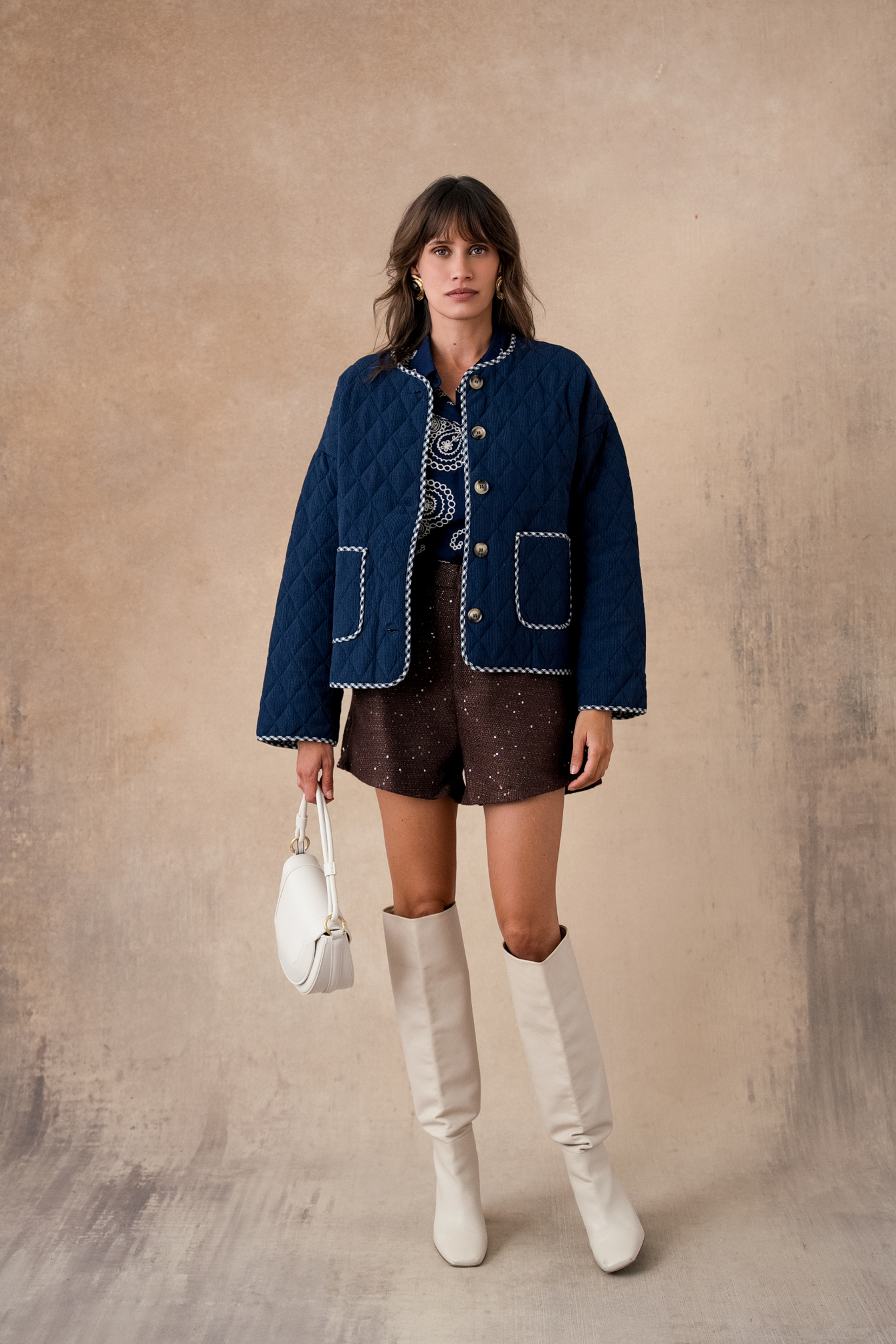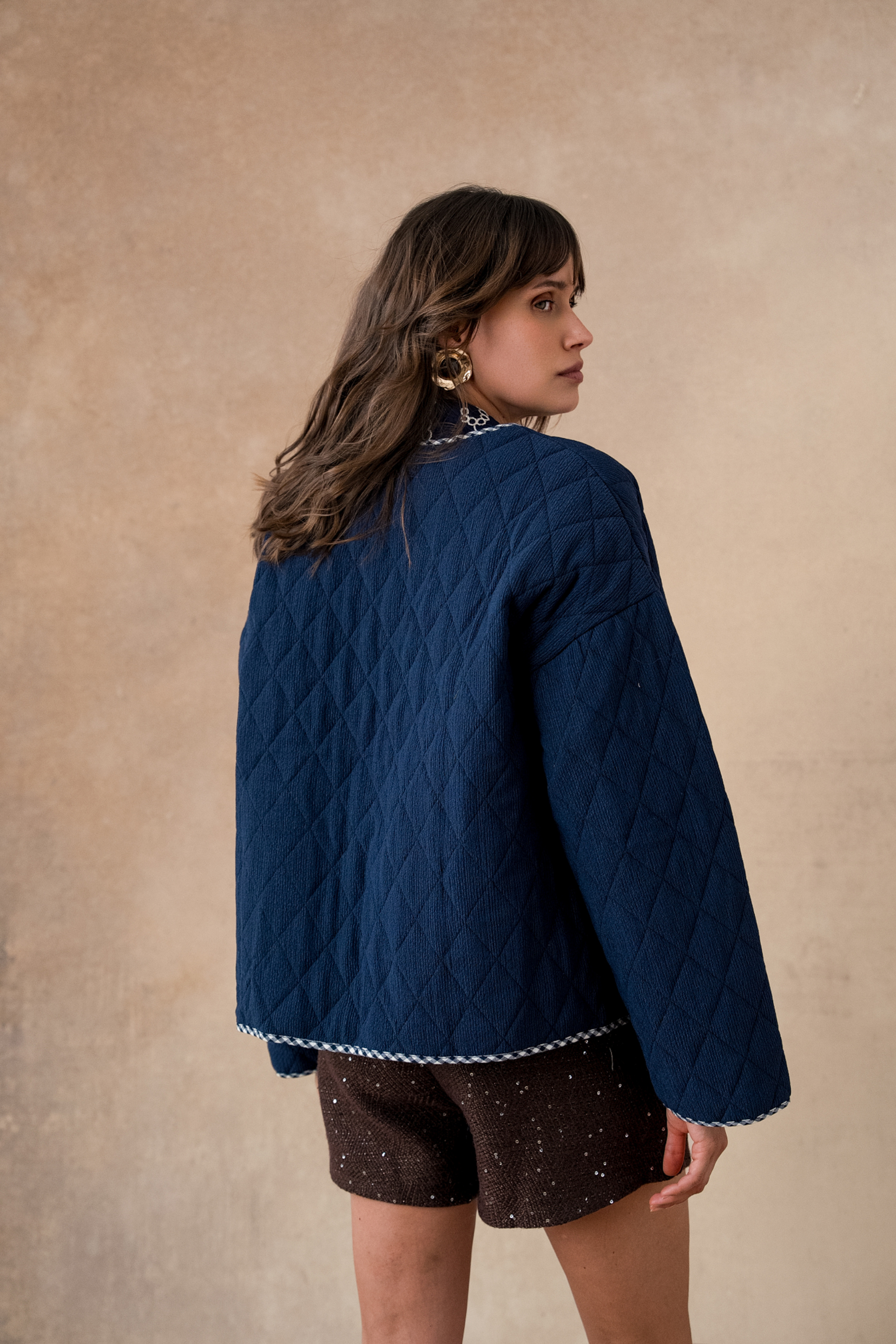Its straight cut and diamond-shaped stitching provide structure and modernity, while its contrasting checkered finishes give it a unique and refined look. Both comfortable and stylish, it's the perfect jacket to liven up everyday looks.
