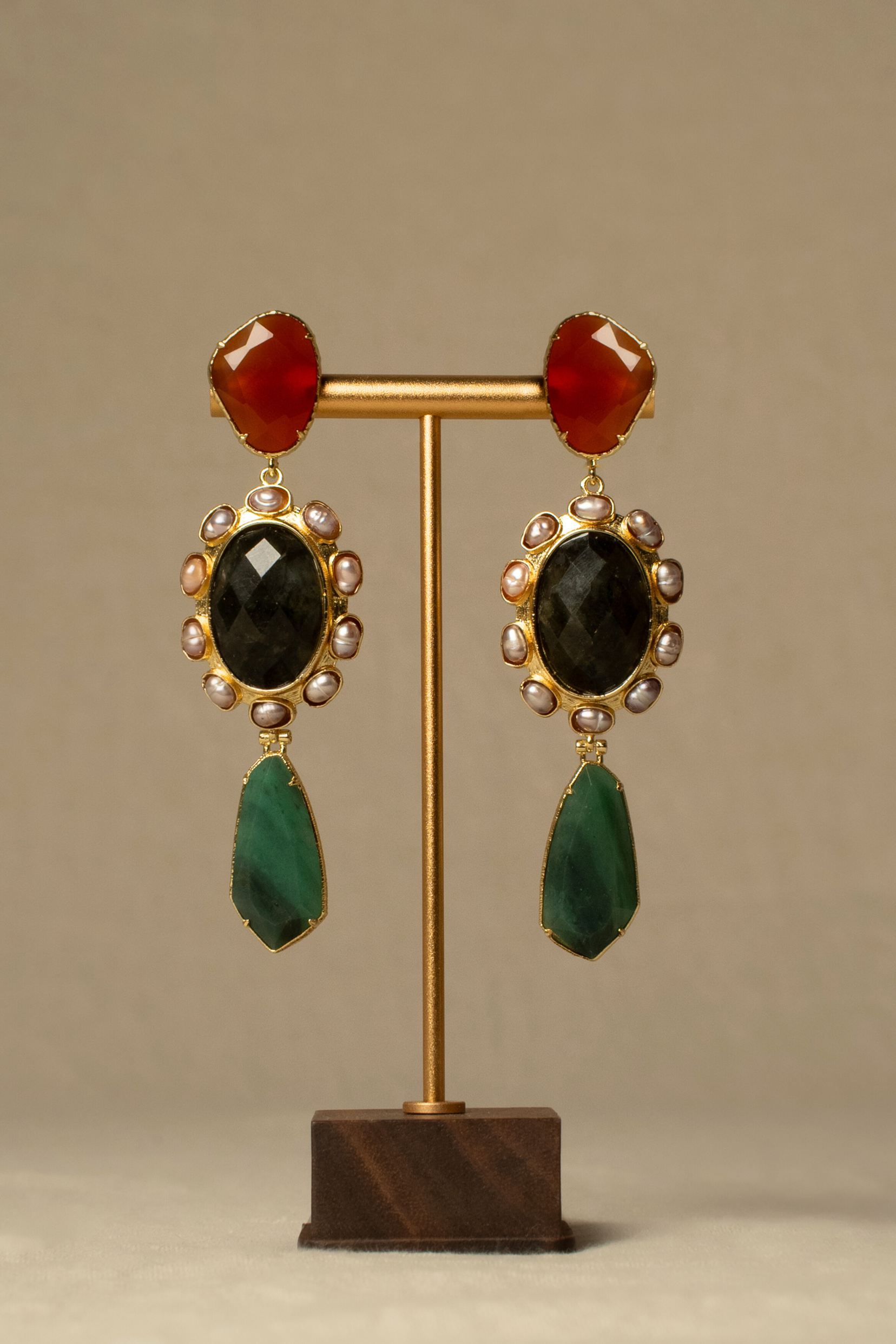 Lizo est une pièce réalisée en monture dorée et sertie de pierres naturelles :