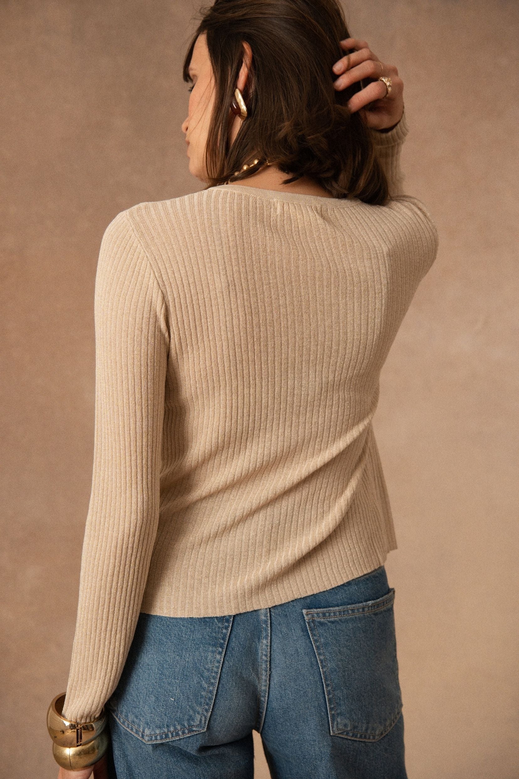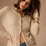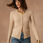 Lucienne incarne ce gilet essentiel que l’on aime garder à portée de main. Une pièce simple et intemporelle, pensée pour accompagner le vestiaire avec douceur. Sa maille côtelée et sa coupe légèrement ajustée dessinent une silhouette nette et féminine, facile à porter au quotidien. Les boutons délicats et les poches plaquées viennent ponctuer la pièce de détails discrets, qui lui donnent tout son charme sans en faire trop.