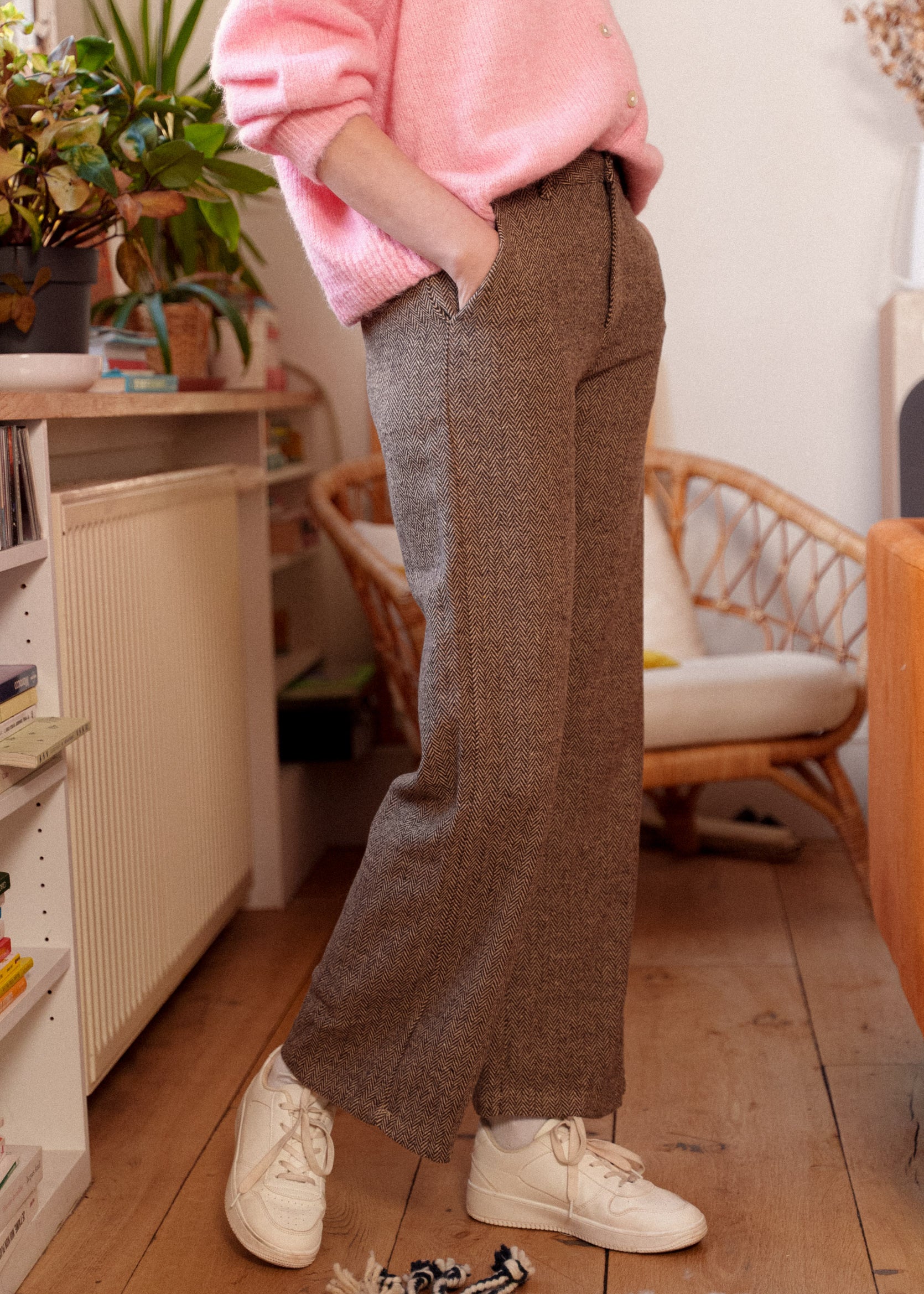 Opt for effortless elegance with our Léila pants. Its refined shade adds a touch of style to your outfit, whether for a day at work or a casual outing. Comfortable and easy to match, these brown pants will quickly become a wardrobe essential for a classic everyday look.