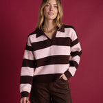 It can be worn tucked into high-waisted jeans for a casual and confident look, or with a flowing skirt to soften its graphic energy. Lucile is the sweater that plays with colors and makes each look unique.