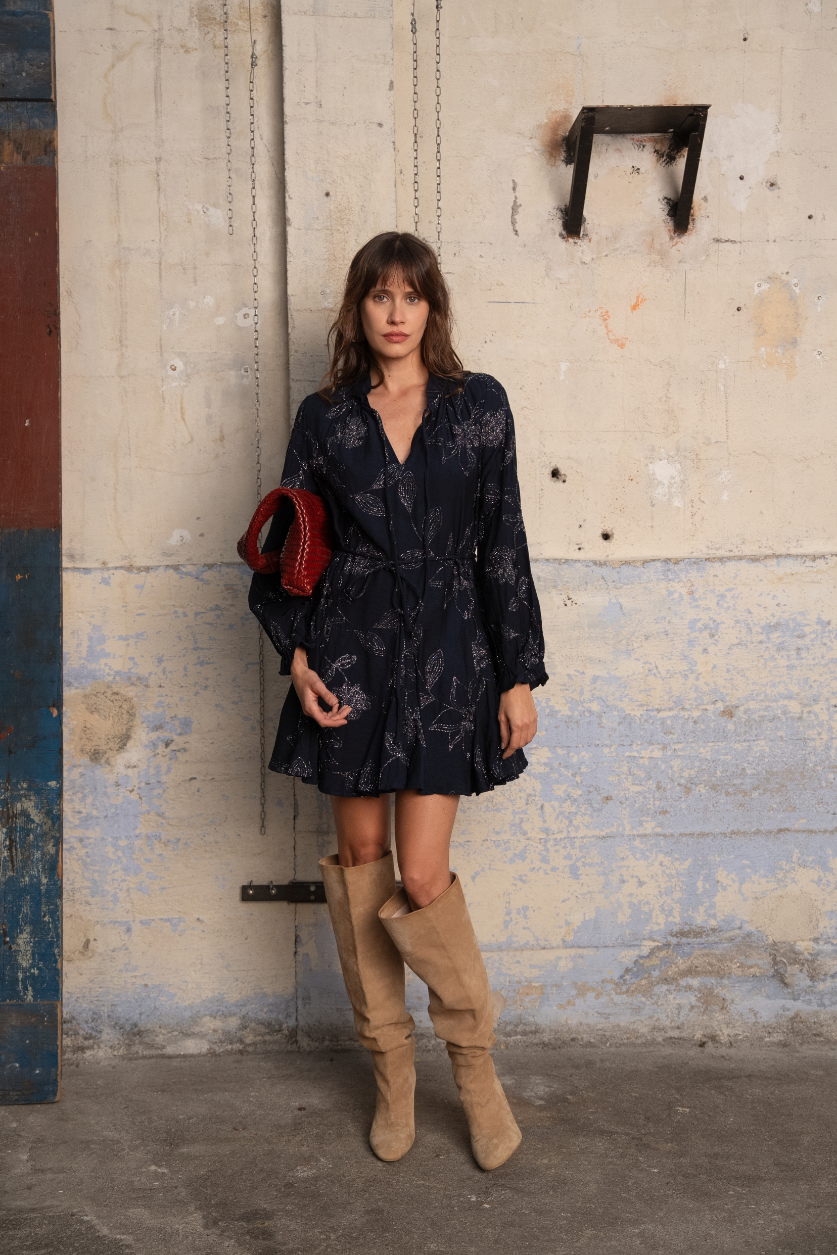 Versatile, it can be worn alone with a pair of ankle boots for a bold, casual look, or belted at the waist for a more structured silhouette. An easy-to-adopt essential that accompanies autumn days as well as evenings with friends.