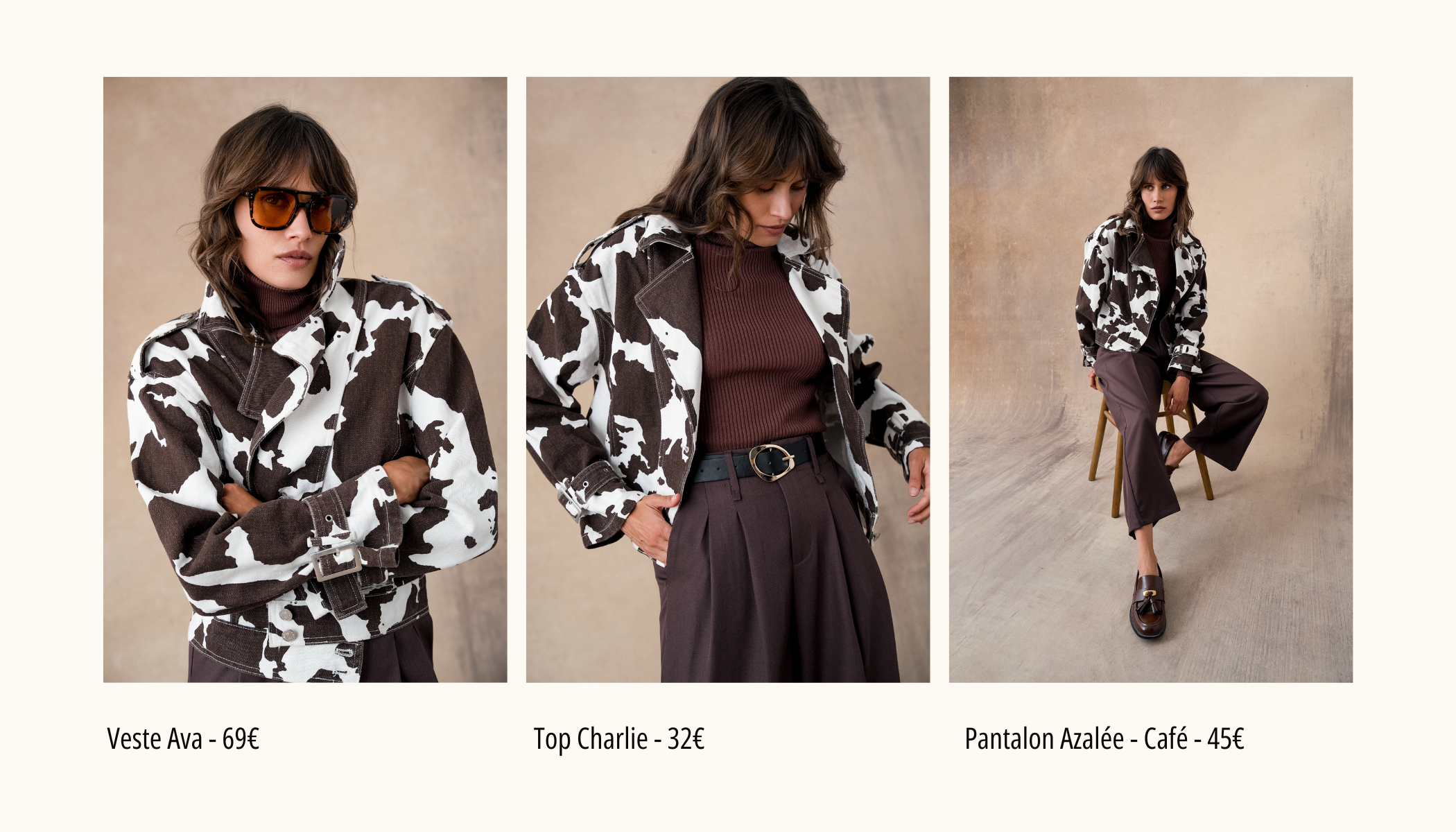 Chaque pièce raconte une histoire : celle d’un automne qui aime jouer avec la lumière, et qui fait du brun son fil rouge, son souffle chaud, son élégance intemporelle.