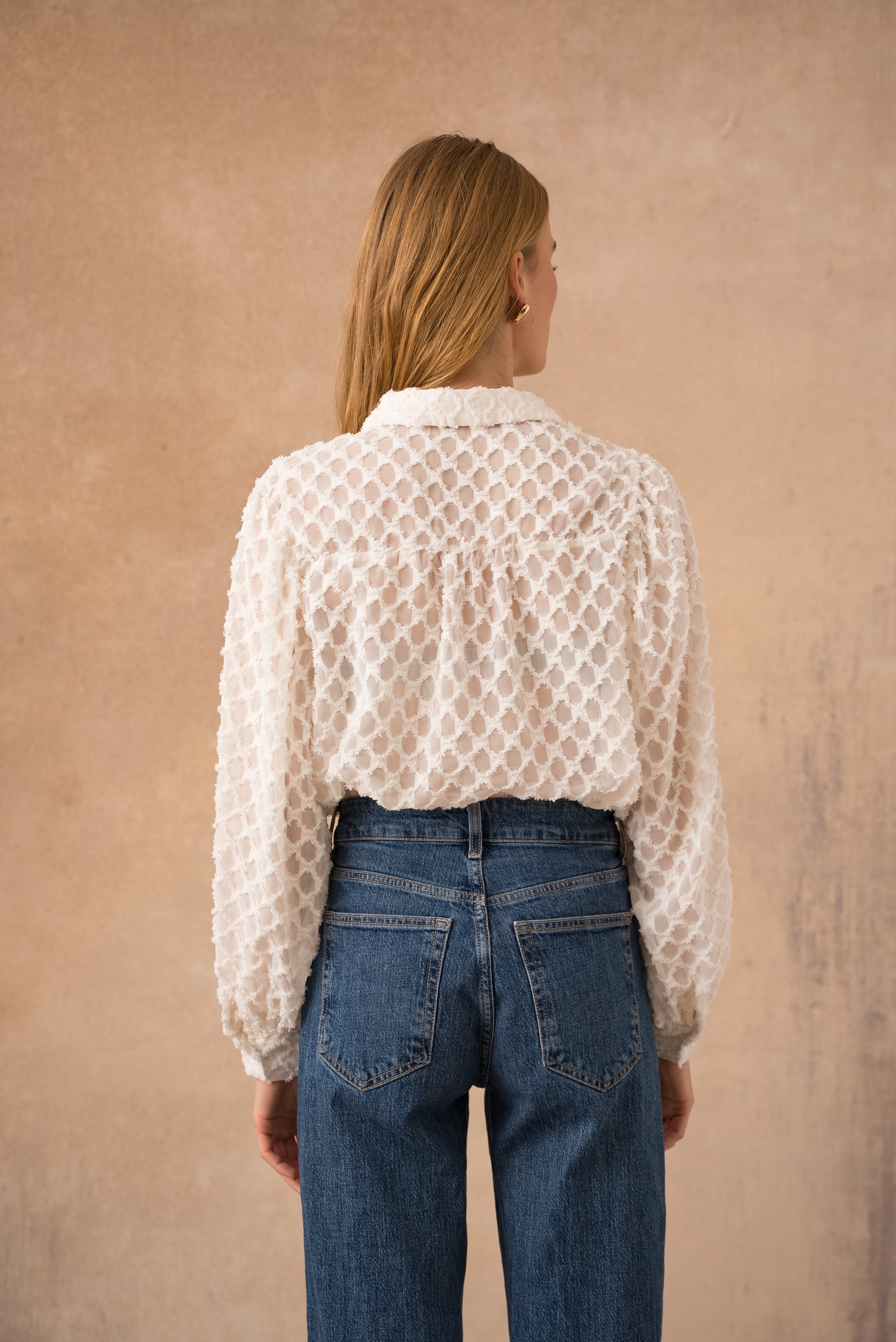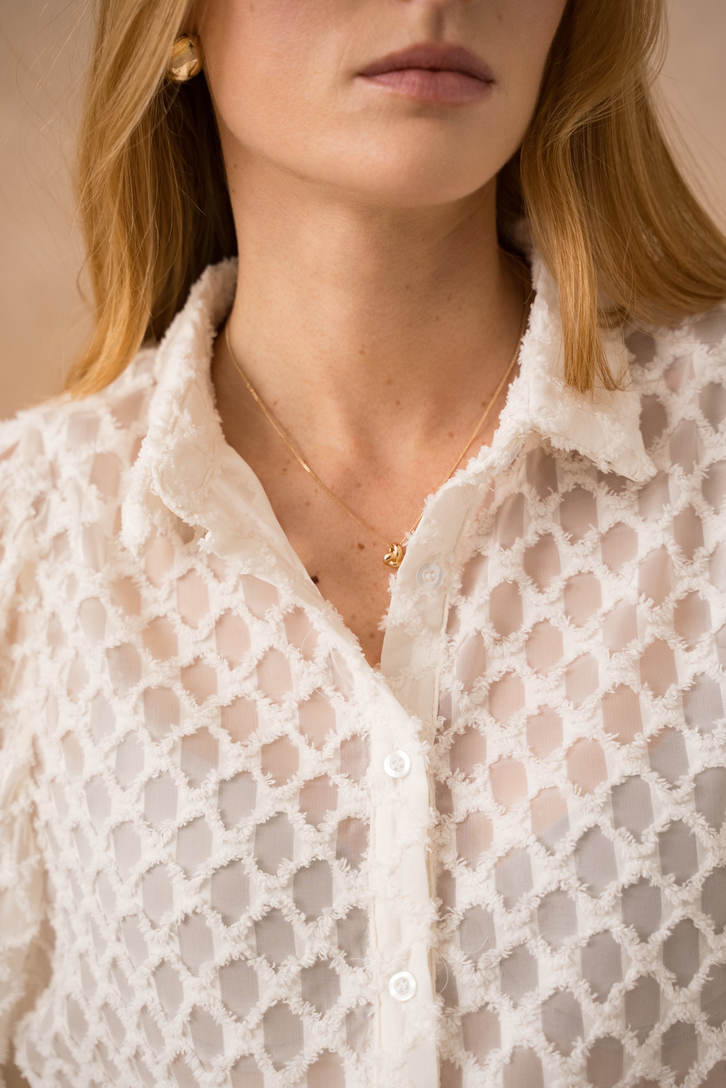 La chemise blanche Junaé incarne l'élégance discrète grâce à ses détails subtils ton sur ton. Confectionnée dans un tissu léger et fluide, elle offre une coupe impeccable qui épouse parfaitement la silhouette. Les touches délicates, telles que les finitions ton sur ton, ajoutent de la texture et du caractère tout en restant raffinées. Cette chemise versatile s’adapte à toutes les occasions, que ce soit pour un look chic ou décontracté, et devient rapidement un incontournable de votre garde-robe. Son design intemporel et ses détails raffinés en font une pièce élégante et facile à porter au quotidien.