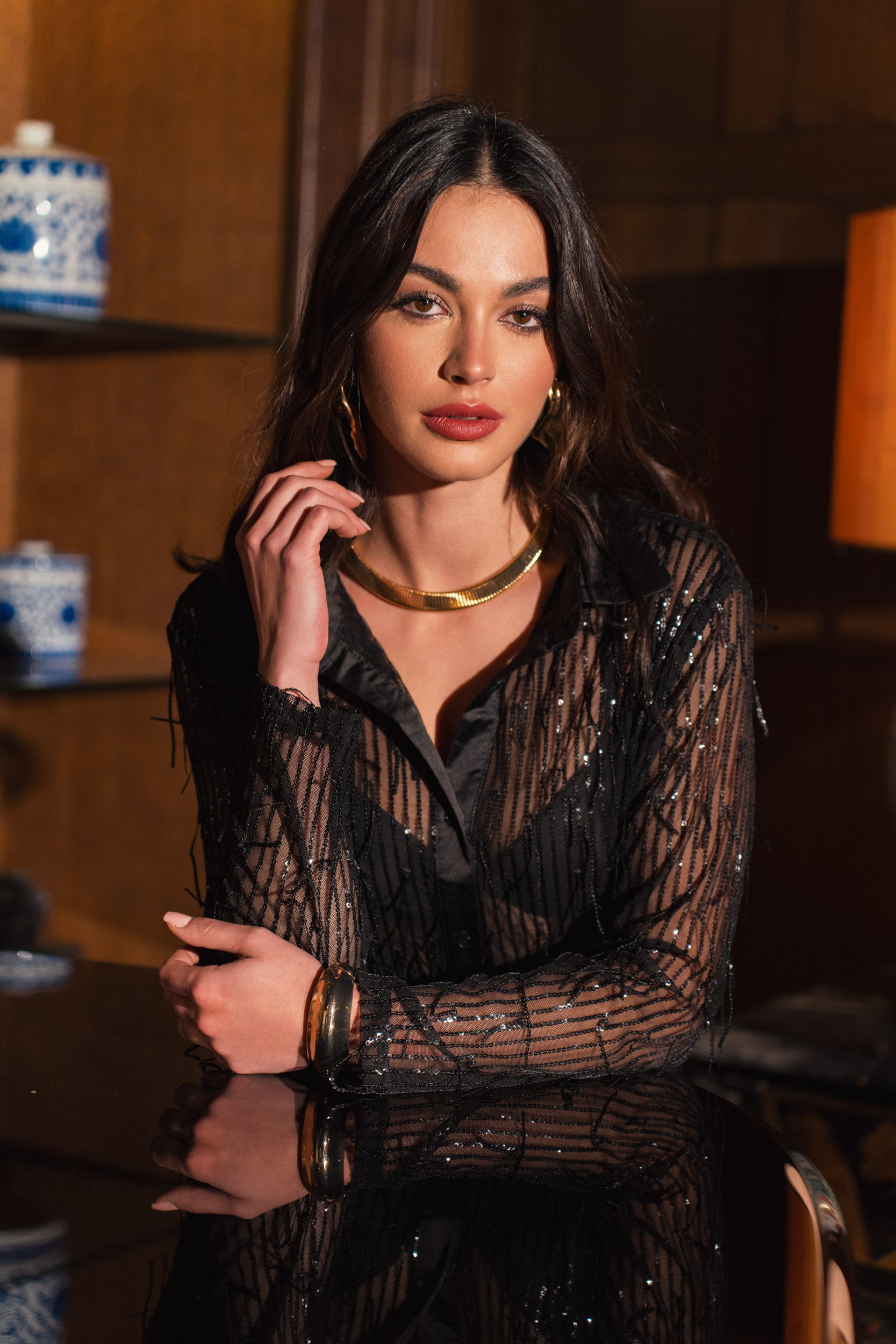 La chemise Miaré, en toute transparence, se distingue par son élégance subtile et sa féminité affirmée. Avec ses manches longues et son col classique, elle allie un style intemporel à des détails de reliefs qui ajoutent une texture unique à la pièce. Les zones transparentes créent un effet de légèreté et de sensualité tout en préservant une allure chic et sophistiquée.
