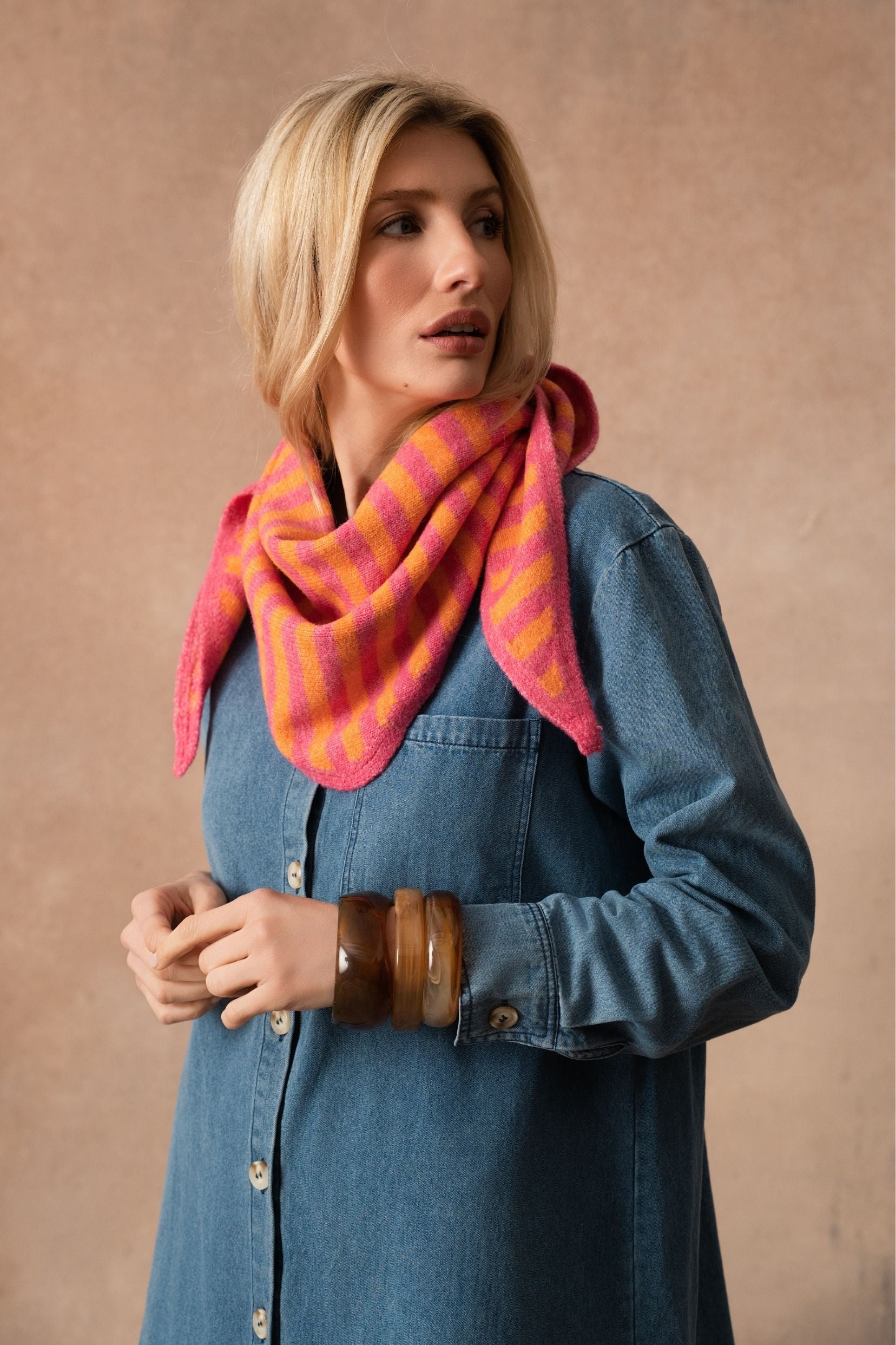 Foulard triangle en maille douce.