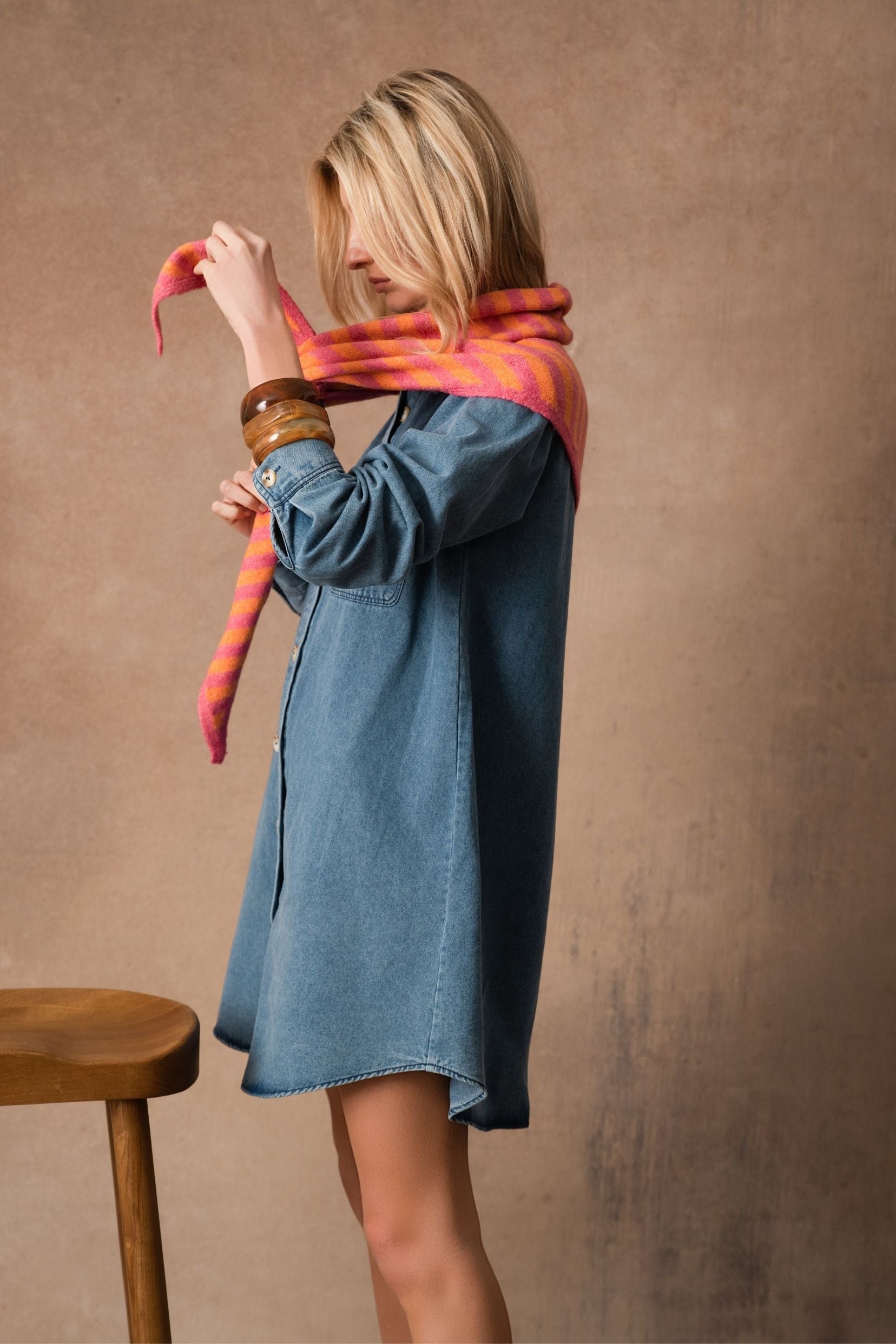 Élio revient dans une version plus pétillante et s’empare de la tendance des rayures. C’est un accessoire que l’on adopte sans hésiter pour illuminer un manteau sombre ou adoucir une tenue plus structurée.