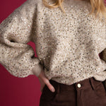 Une maille moelleuse, réchauffante, parsemée de sequins légers comme des éclats de givre, l’équilibre parfait entre confort cosy et éclat précieux.