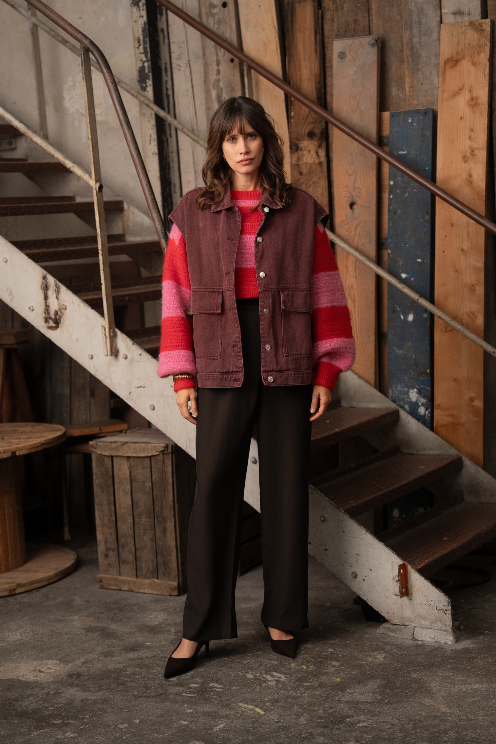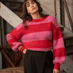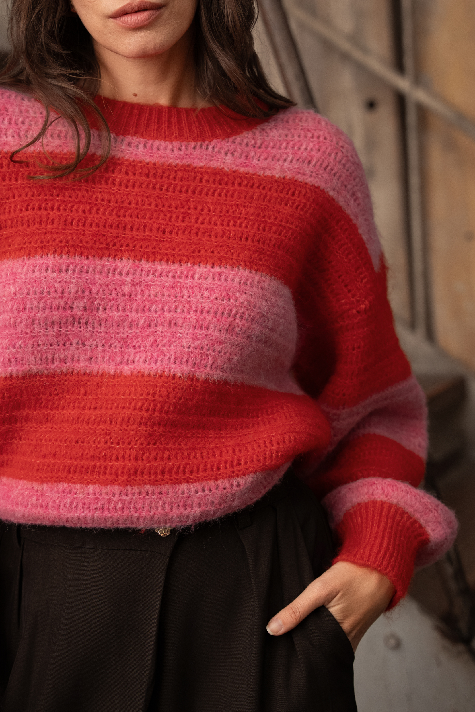 Un mélange audacieux de rouge et de rose qui réveille les journées grises, tout en douceur grâce à sa maille moelleuse et chaleureuse.