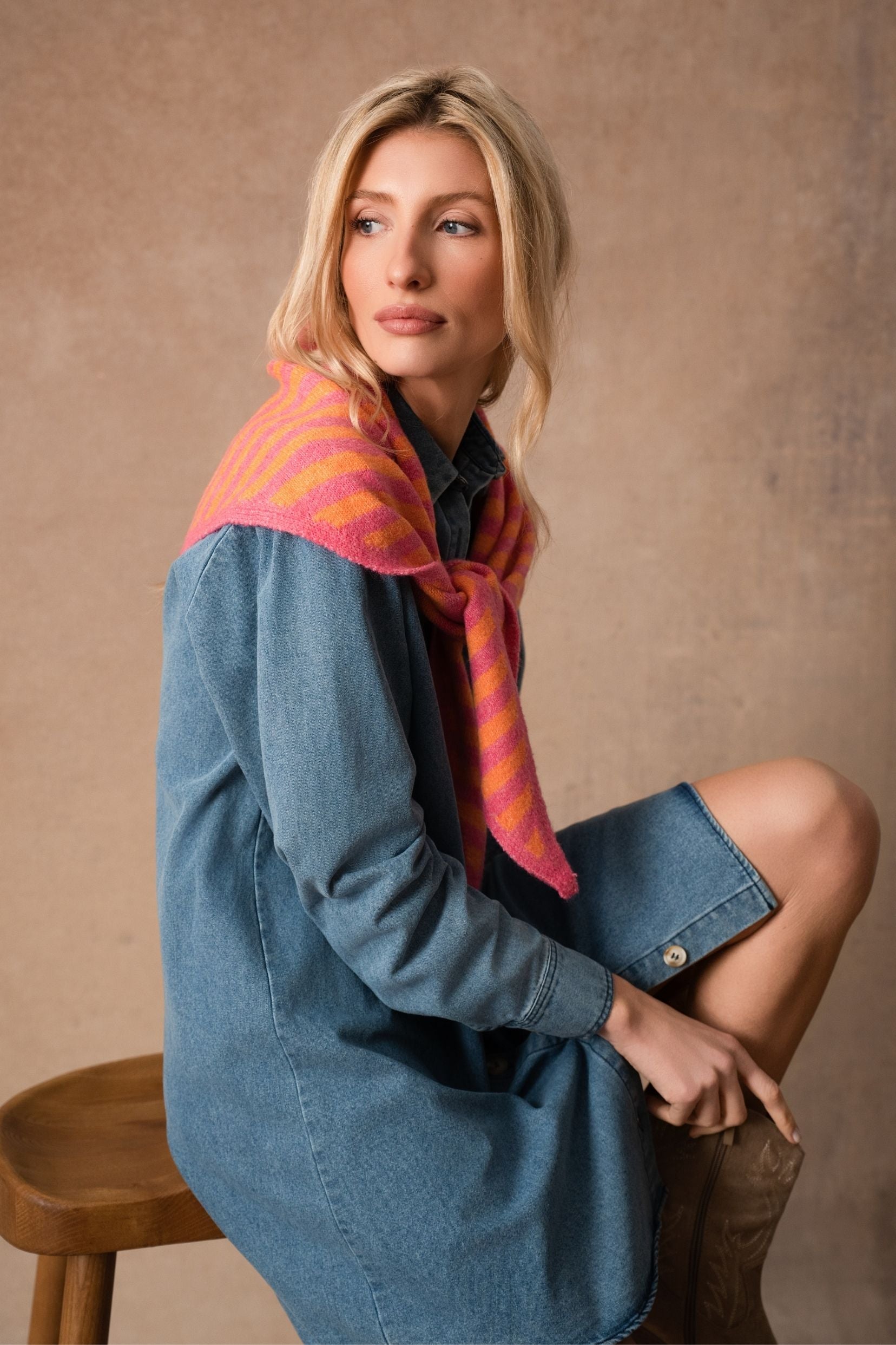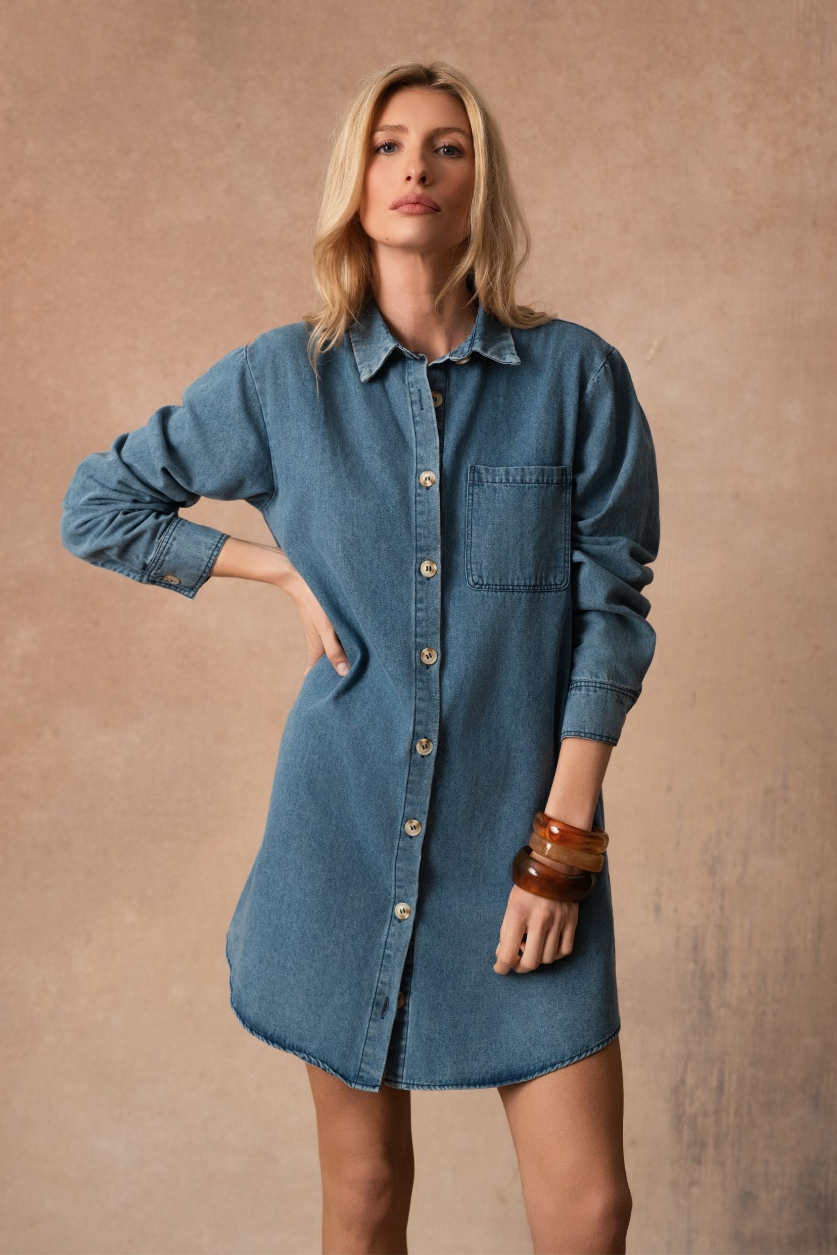 Adeline, notre incontournable robe en jean, s’impose comme un indispensable facile à vivre.