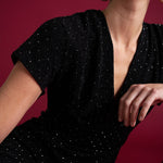 Un modèle pensé comme une ligne noire étoilée : sobre au premier coup d’œil, puis fascinante dès qu’on s’en approche. Ses petits éclats lumineux, posés avec délicatesse, transforment chaque mouvement en une constellation discrète, un charme qui se révèle sans jamais s’imposer.