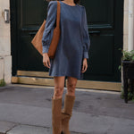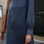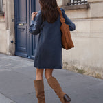 Notre robe Jalie se réinvente et prend le nom de Célestine. Cette robe courte en denim marie la simplicité intemporelle du jean à la fraîcheur d’un bleu délicat. Son col rond apporte une touche de raffinement, tandis que la patte de boutonnage dorée sur l’épaule offre à la fois praticité et détail élégant.
